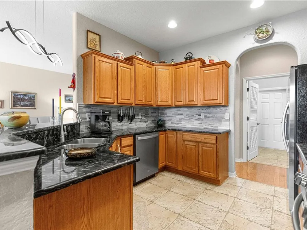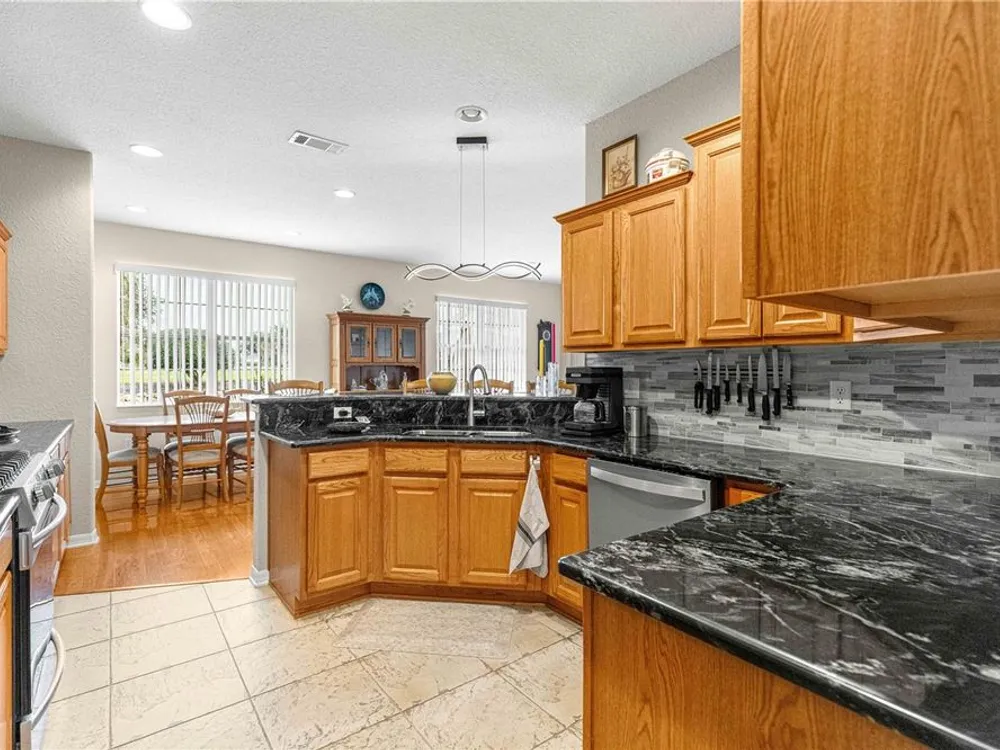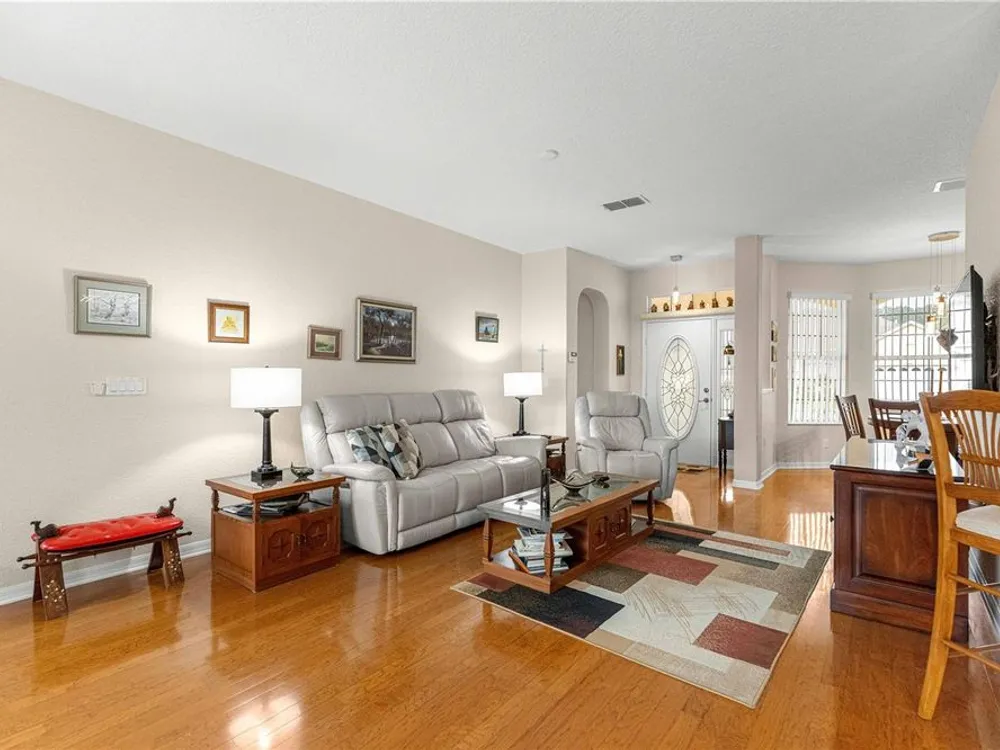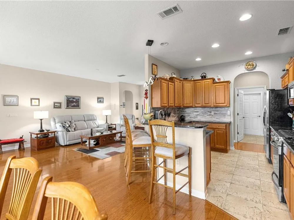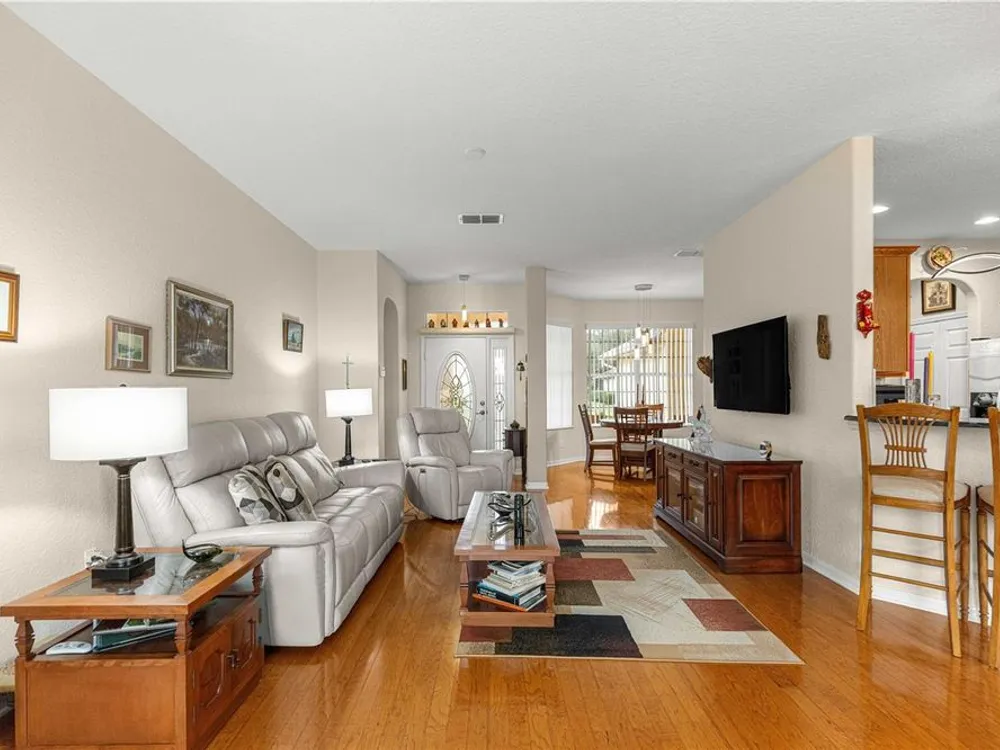 This oversized Ayreshire is located in the much sought-after 55+ community of Candler Hills in On Top of the World. It's situated on one of the very prettiest lots in Candler East on The Preserve with hard-scapes and an impressive rock wall in the rear of the home. Pull up to the paver drive and notice how much space between the homes! Once inside some of the features you will notice are: Hard wood flooring at the entrance, living room, dining room and nook. Tile flooring in kitchen, baths, Florida room and birdcage. Beautiful granite counters with wood cabinets in the kitchen and plenty of them, every chef's dream. Pretty backsplash. New lighting over the bar area. Newer stainless steel appliances including a gas range. Inside laundry with washer and dryer included. Enclosed 3 season Florida Room. HUGE birdcage on the back with wonderful, private views. Bedrooms with laminate flooring. Large primary bedroom. Primary bath with a double sink vanity and updated walk-in tile enclosed shower with a bench. There are two guest rooms perfect for family and friends. Guest bath has a tub/shower combo. The garage features an epoxy floor, helping keep it clean. Gas furnace and hot water heater. CDD PAID! Roof and A/C 2024. This home is truly move in ready! Call for your appointment to view today!