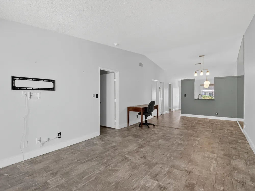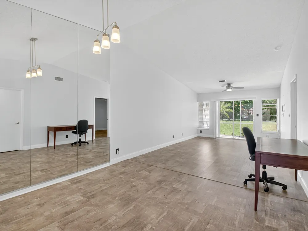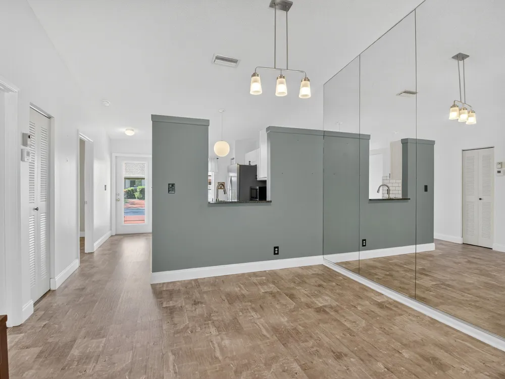 - Custom Mirrors, Entrance Foyer, Split Bedrooms, High Ceilings, Walk-In Closet(s), Breakfast Area, Living/Dining Room, Single Hung Metal Window(s), Primary Downstairs