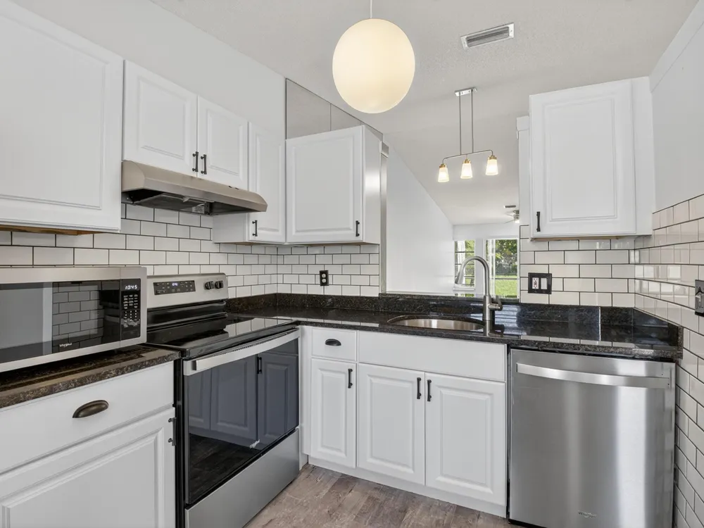 - Dishwasher, Disposal, Dryer, Microwave, Electric Range, Refrigerator, Washer, Electric Water Heater