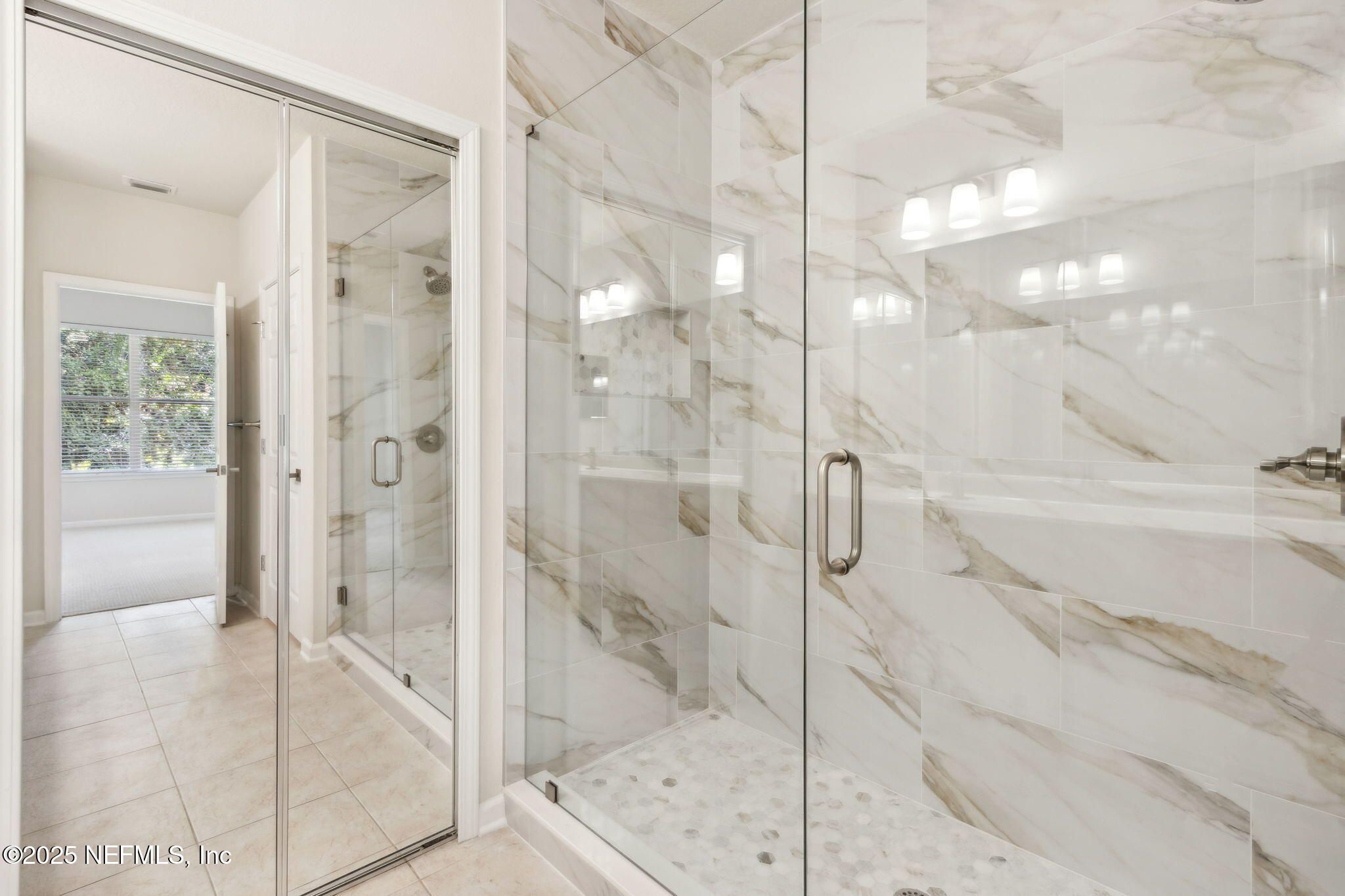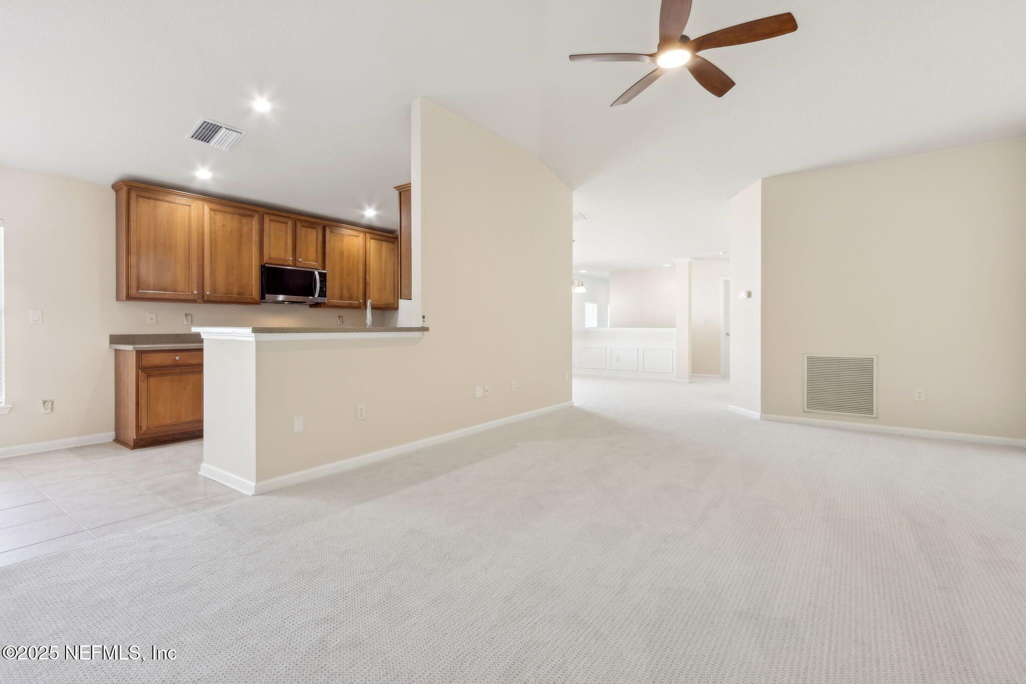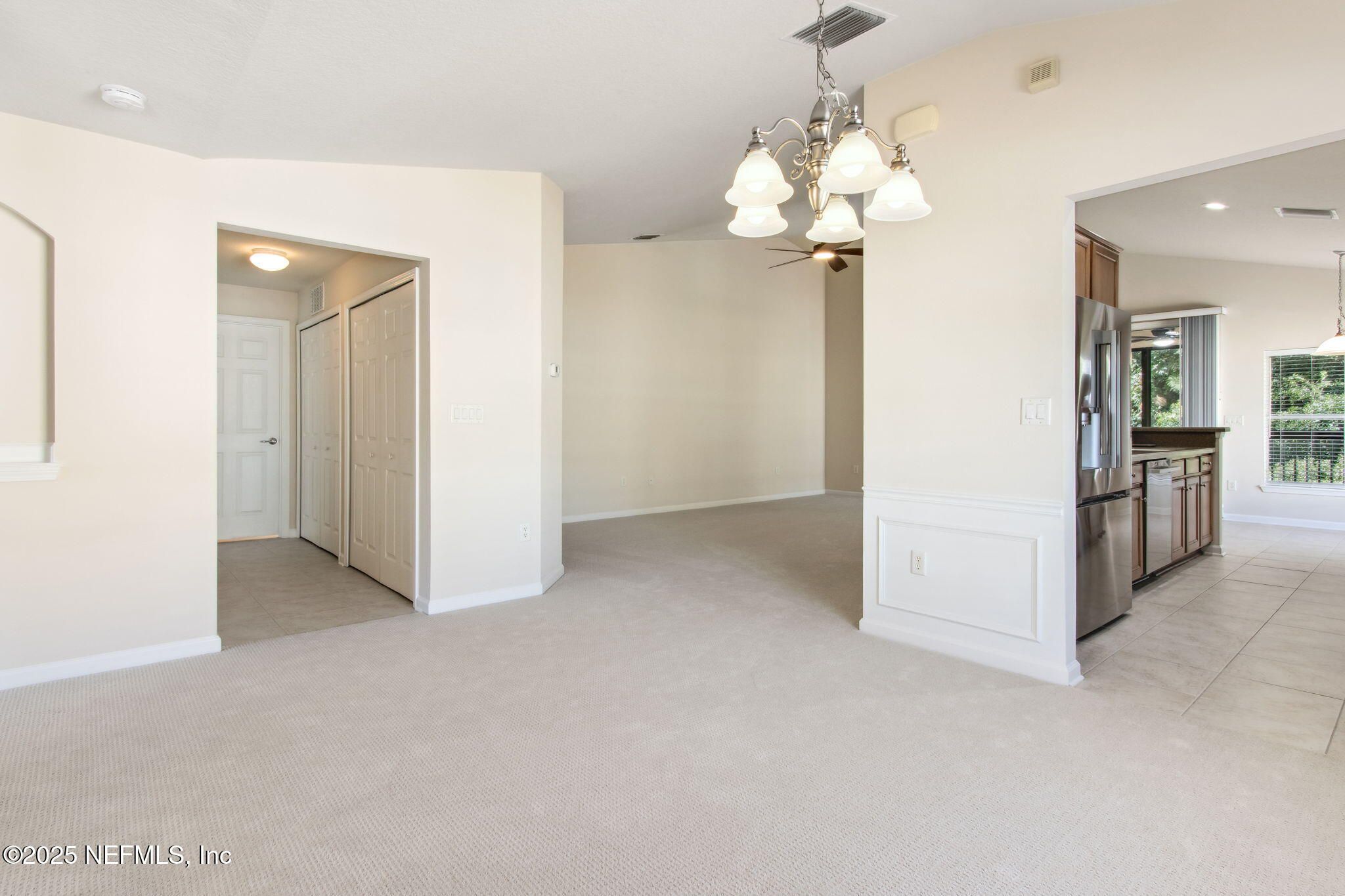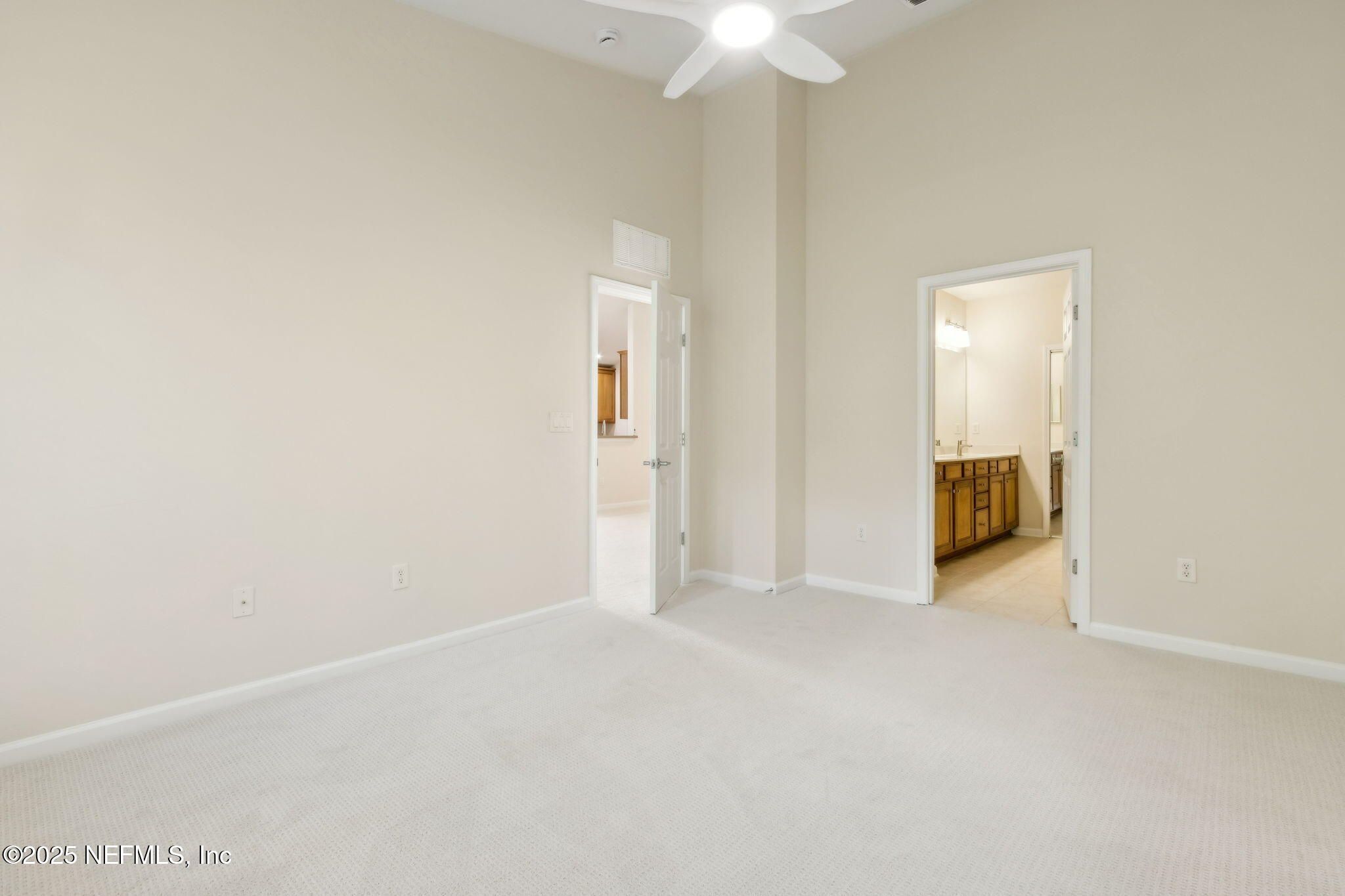 Move-in ready and designed for easy living, it delivers a maintenance-light, socially rich lifestyle in one of Jacksonville's premier active-adult enclaves. This end-unit carriage home offers lake views from the front and serene preserve views from the screened lanai. Inside, the home features fresh interior paint, brand-new neutral carpet, and a fully renovated master bath with new tile, glass enclosure, faucets, and lighting. The kitchen shines with new stainless-steel LG appliances. Additional upgrades include new ceiling lights and fans throughout the home and lanai, a new water heater, and a well-maintained HVAC (2019). This immaculate home in the vibrant, gated 55+ Sweetwater Del Webb community offers resort-style living at its finest. Enjoy the 22,000 sq ft Summerland Hall clubhouse with an indoor lap pool and spa, outdoor zero-entry pool, bocce, movement studio, game rooms, social clubs, tennis and pickleball, plus miles of nature trails.
