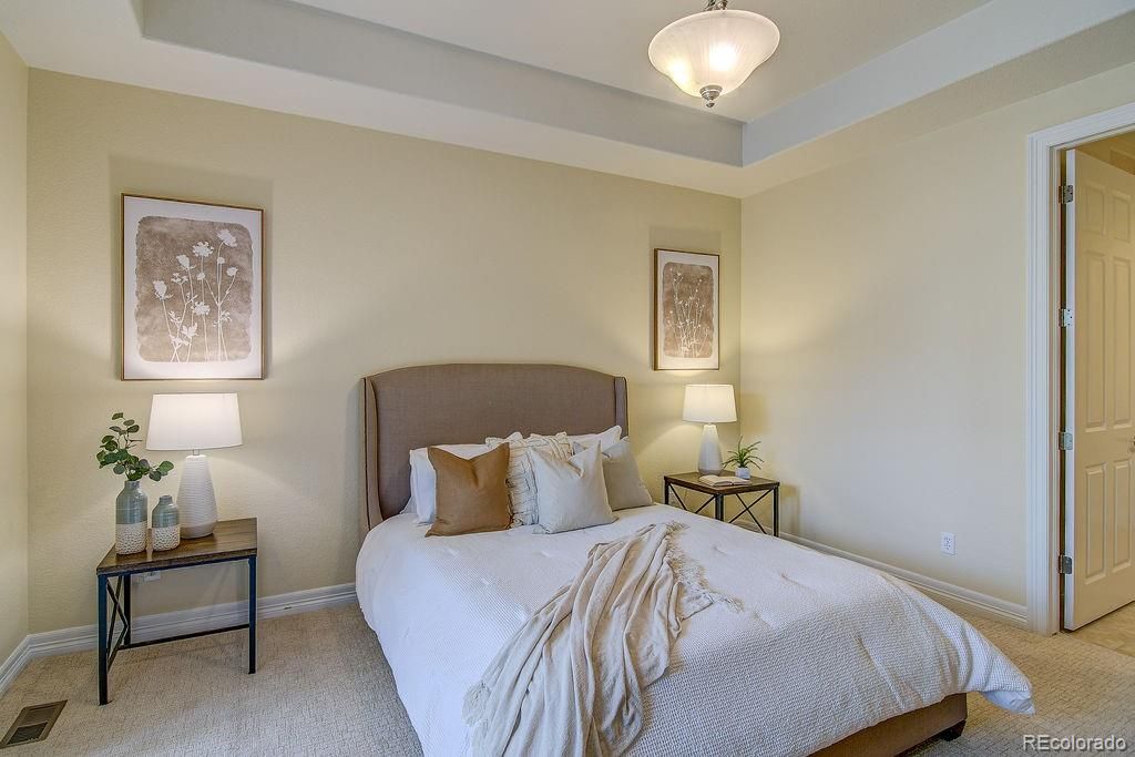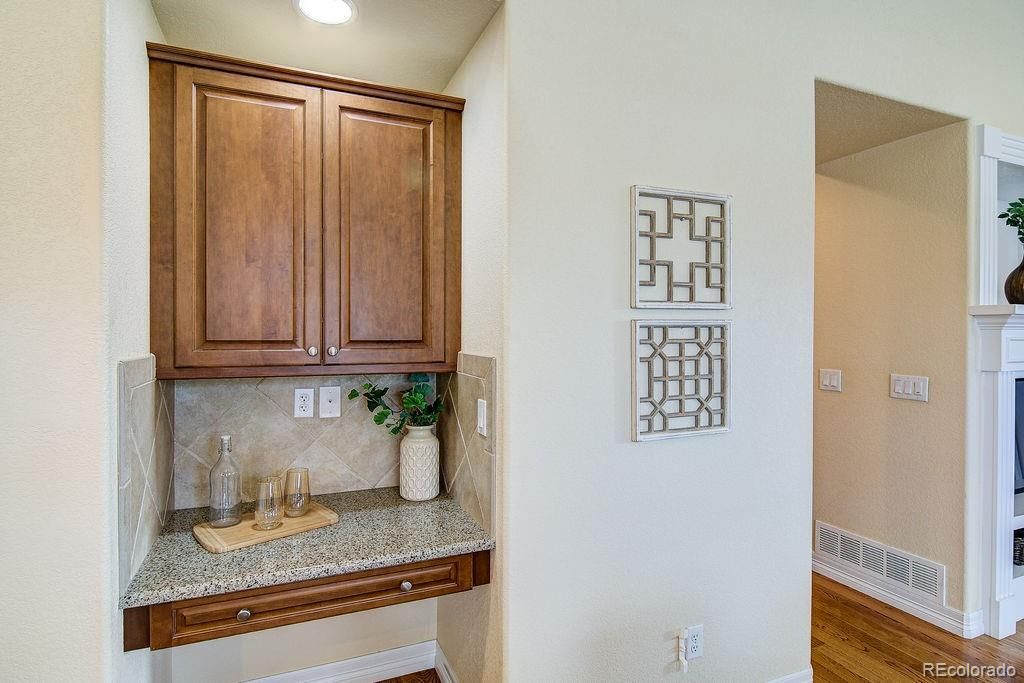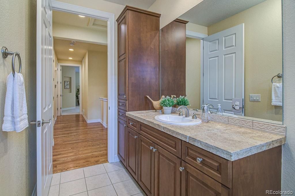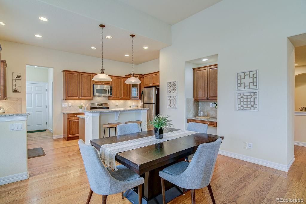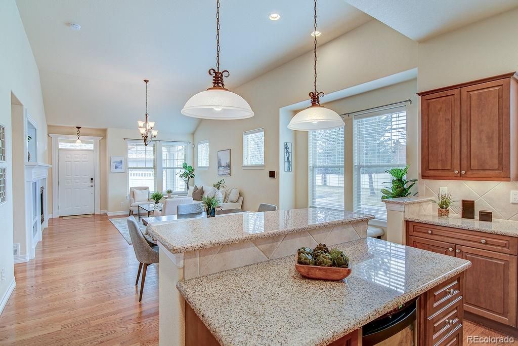 Spacious and inviting, this 3,000+ square foot end-unit residence offers comfortable, low-maintenance living in a desirable 55+ community. This bright and open residence provides Hardwood floors and granite countertops to enhance the home’s quality finishes. It features 3 bedrooms and 3 bathrooms with thoughtful updates throughout. Main-level bedrooms feature fresh new paint and new carpet. The primary and main bathrooms feature fresh new paint. The well-appointed kitchen includes a wine refrigerator, pantry, and an eat-at breakfast bar, ideal for both everyday living and entertaining. Main-level laundry adds convenience with cabinets and storage. Outdoor living spaces include a covered front porch and a fenced concrete patio. The partially finished basement provides private living quarters suitable for guests or a live-in caregiver, along with additional unfinished space offering room to grow and ample storage. A well-designed floor plan, quality updates, and low-maintenance living make this home an exceptional opportunity in an active adult community. Don't miss out on living in the quiet community near all of the South Littleton amenities. Call for your private showing today!!