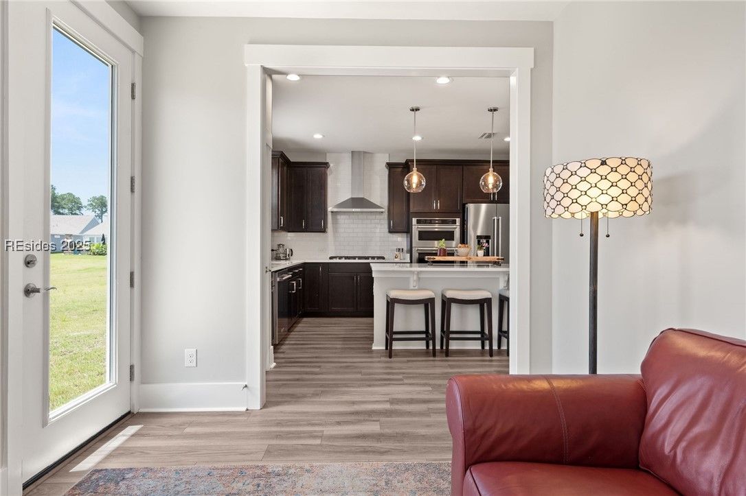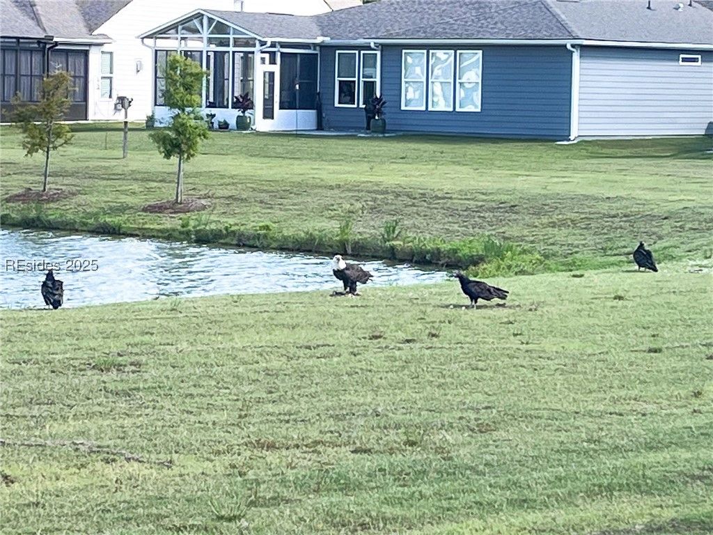 Nearly New Compass with Loft shows like a model located on the lagoon side of Destiny Drive, offering 3 beds and 3 baths, many upgrades include gourmet kitchen with gas cooktop, Kitchenaid appliances and quartz countertops, whole home water filtration system plus reverse osmosis at kitchen sink and refrigerator. Owners suite with custom closets, custom shower, lots of built ins. Loft has separate living area with bedroom and full bath which is ideal for an adult child living at home or extended stay guests, first floor offers complete comfortable living space. Lots of storage space too. Carolina Room with long open view of lagoon and even an eagle visits on occasion. Smart Home includes keyless entry, thermostats, garage door access by phone. Also there is an AC system for each level allowing for better power savings. Extended garage, and attic stairs. 2021 Golf cart is included in sale for a quick ride to new amenity center or to play a round of golf!! The owner is offering to include the recliners and TV in the loft, and the 2-year-old refrigerator in the garage if the buyer requests. This better than new home is spotless and ready for new owner.