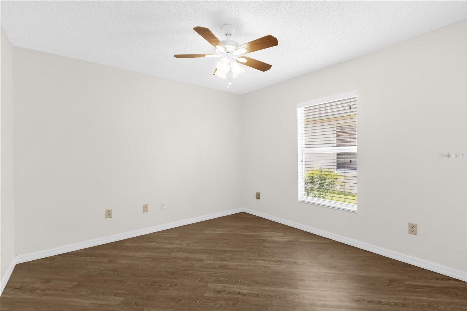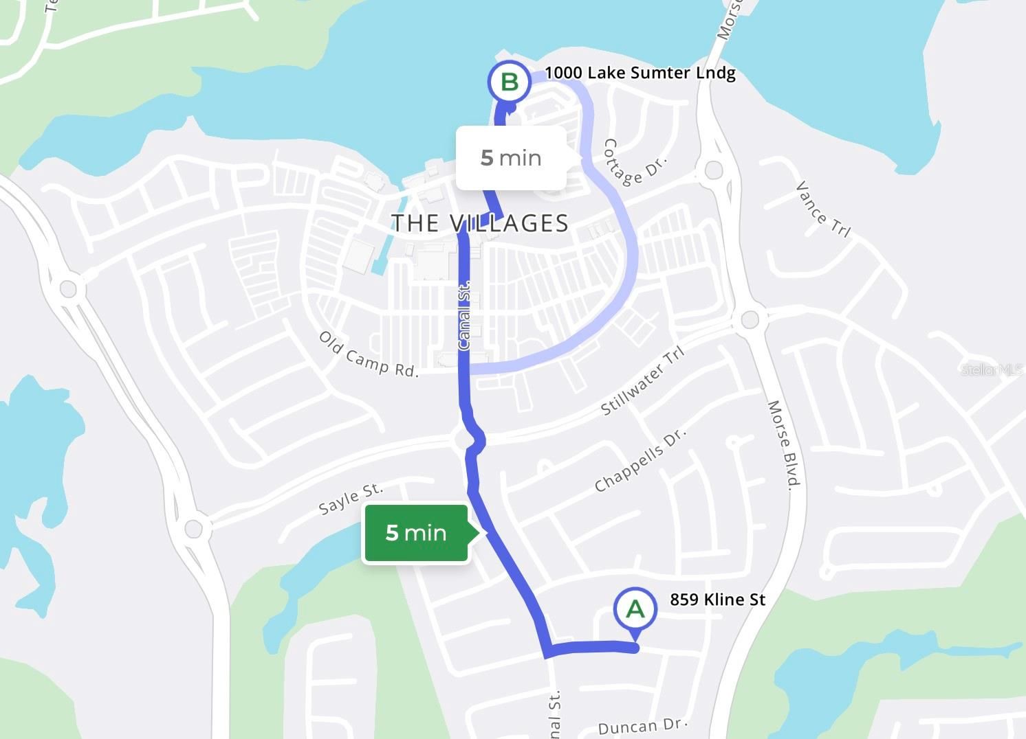 WALK TO LAKE SUMTER LANDING! Located in the highly sought-after Village of Virginia Trace, this beautifully maintained block and stucco home is truly steps away from all the shopping, dining, and nightly entertainment at Lake Sumter Landing Square—a rare find! Curb appeal shines with stacked stone landscaping beds, a charming front porch, and Florida-friendly landscaping. Inside, you'll find large ceramic tile laid on the diagonal throughout the entry, kitchen, living, and dining areas. The interior has been professionally painted, creating a clean and inviting feel throughout. The chef’s kitchen is sure to impress, boasting granite countertops, an abundance of workspace, and stainless steel appliances, including a side-by-side refrigerator, microwave, and dishwasher. Enjoy your morning coffee in the kitchen nook, where you can look out over the front of the home and catch up on the day’s activity. The spacious laundry room offers extra versatility with room for a small desk or additional pantry space. All three bedrooms feature wood composite flooring, and the primary suite includes dual closets and an en-suite bath with dual vanities and a walk-in shower. Unwind after a full day of Village fun in the enclosed, tiled lanai or step out onto the private brick patio, ideal for grilling and enjoying the privacy landscaping. A newer roof was installed in 2022 creating peace of mind for years to come. This is a rare opportunity to own a centrally located home just steps from The Villages’ most popular square—don’t miss out!