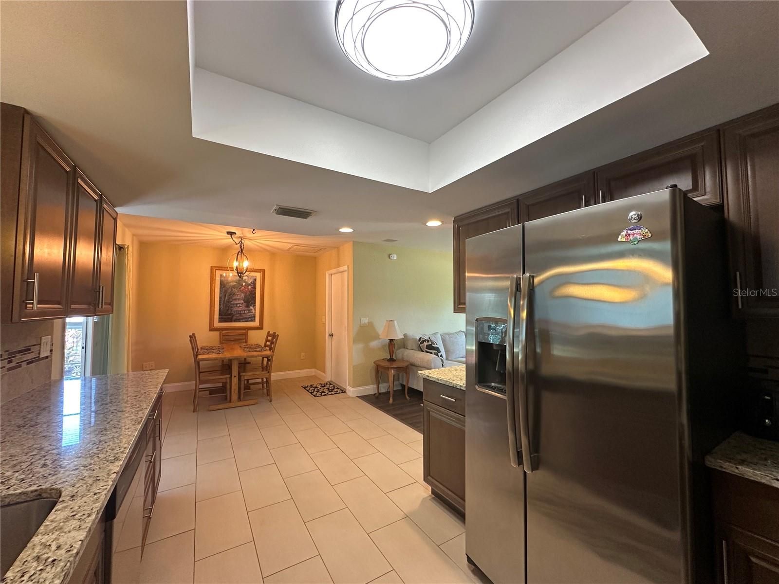 Adorable Savannah floor plan featuring 2 bedrooms, 2 bathrooms, plus a den/bonus room under air. Move-in ready and beautifully updated — this home is a must-see! Enjoy a large, fenced yard, perfect for your pet! This home includes numerous upgrades such as a new roof (2025), updated electric panel, and a modern kitchen with granite countertops, tiled backsplash, and stainless-steel appliances. Both bathrooms have been beautifully renovated with tiled walk-in showers, and the home features energy-efficient, thermal-paned hurricane windows. The lanai has been upgraded with glass windows and brought under the HVAC system, creating a comfortable den or Florida room. The oversized 2-car garage offers a sliding screen door, pull-down attic stairs, and plenty of storage space. Additional touches like recessed lighting, ceiling fans, and poured concrete curbing around the home add to its charm and functionality. A vibrant community for those aged 55+ offers a range of amenities, including an 18-hole golf course, a well-equipped driving range, and a charming restaurant named the Oak Room Bar & Grill. Residents can enjoy leisurely walks with their furry friends at the on-site dog park. The community boasts six inviting pools, five relaxing whirlpools, and dedicated spaces for library enthusiasts, as well as billiards, cards, and ceramics enthusiasts. For outdoor enthusiasts, there's a variety of recreational options such as pickleball, shuffleboard, bocce ball, and tennis. Residents can partake in the lively atmosphere through monthly farmers markets and various clubs, ensuring a constant source of enjoyment. The community is equipped with the latest technology, employing the state-of-the-art Virtual Guard System (Envera) at all three entry gates, ensuring the safety and security of its residents.