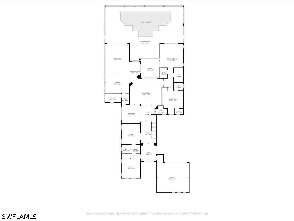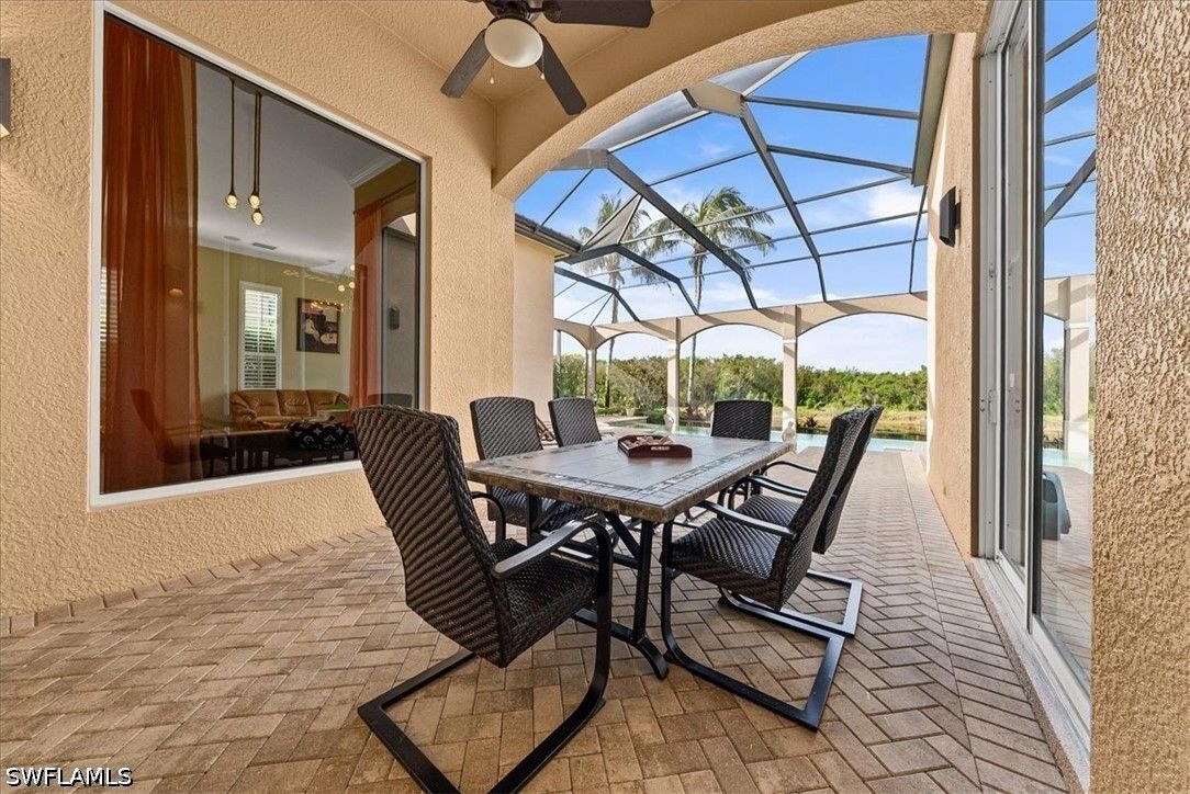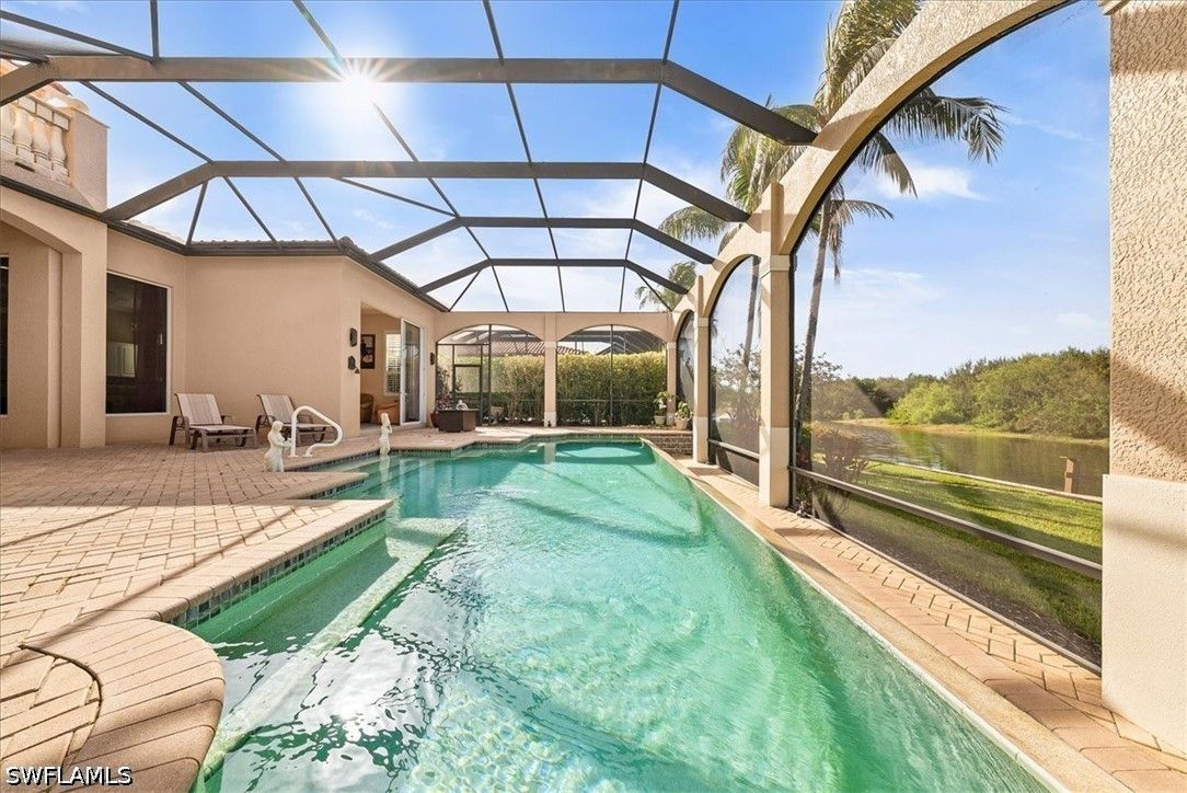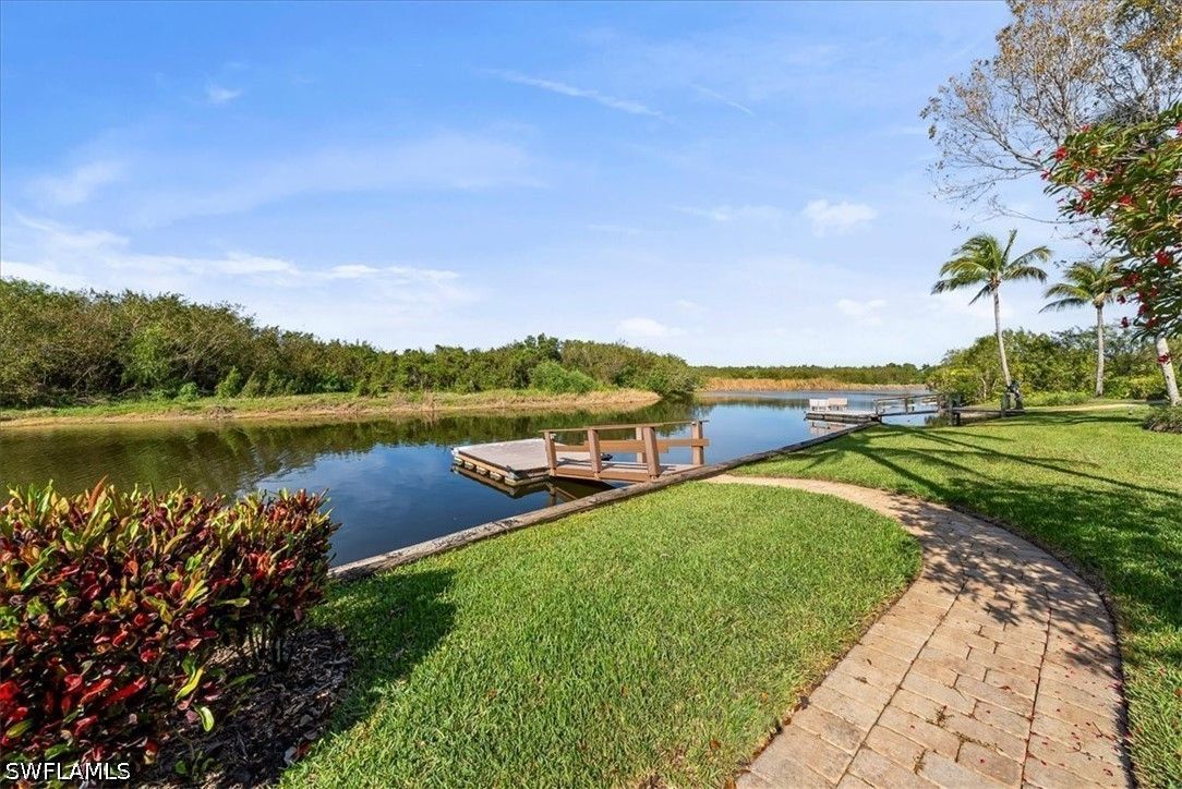 One of the most exceptional offerings in Fiddler’s Creek, this 3,700 sq ft waterfront residence in the intimate Bellagio Village features a private dock and infinity-edge saltwater pool overlooking The Creek. Nestled into a quiet cul-de-sac, the home offers rare privacy with no residences visible across the waterway. A grand double-door entry opens to soaring ceilings and a light-filled great room with seamless sightlines to the expansive lanai and negative-edge pool. The recently refreshed kitchen showcases a gas cooktop, paneled appliances, natural stone countertops and abundant storage, flowing effortlessly into the family room and ideal for entertaining. The first-floor primary suite is a private retreat with tranquil water views, dual vanities, soaking tub, walk-in shower, and dual water closets for the utmost in privacy. Also on the main level: a dedicated office, en-suite guest suite, and powder bath. Upstairs, two additional en-suite bedrooms and a picturesque balcony patio offer comfortable accommodations for family and guests. Outdoor living is the highlight, with a spacious covered lanai, expansive patio and private dock, perfect for enjoying the serene, natural setting. Residents are just moments from Fiddler’s Creek’s World-Class 54,000 sq ft Club & Spa, featuring resort-style pools with waterfalls, lagoon-style swimming areas plus whirlpool, a full-service spa with sauna, a truly state-of-the-art fitness center with tennis on Har-Tru courts, a pickleball program, Bocce courts, and the opportunity to join numerous leagues and classes. All this alongside multiple dining options, from elite fine-dining to a casual waterfront bar & grill with a vibrant social calendar to match. Fiddler's Creek residents have the OPTION to join Championship Golf, as well as a Private Beach Club for the utmost in Florida living.