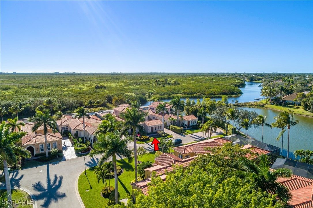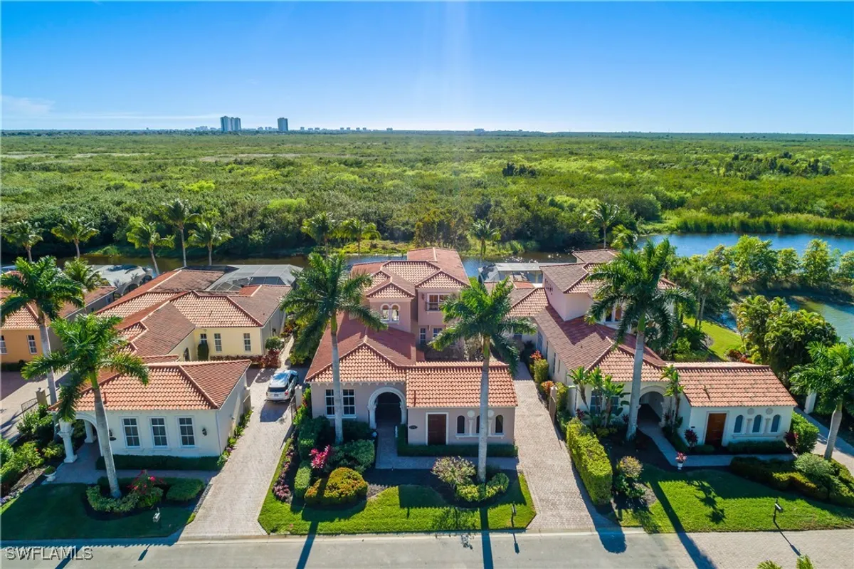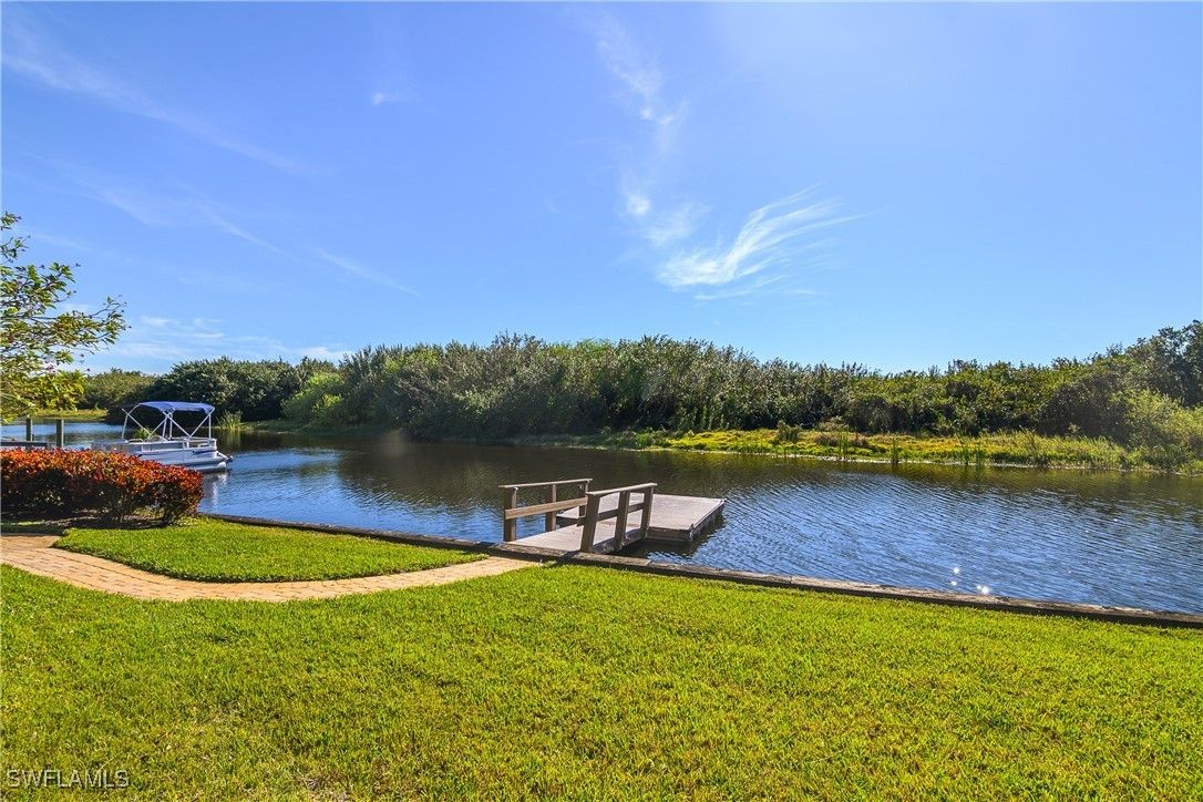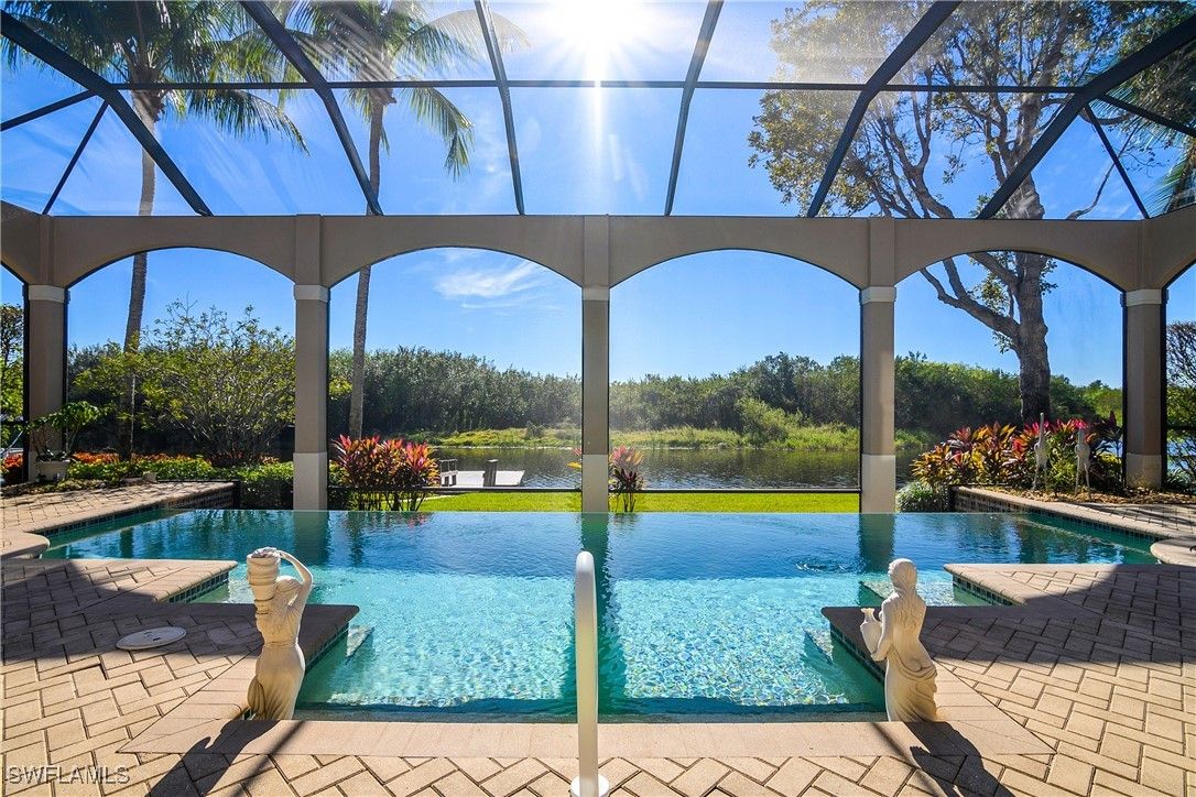 Location, location, location. Rare opportunity to own a home on the southwest end of Bellagio Drive. The southwest exposure affords maximum sunlight on your pool and lanai area. Many large windows bring sunlight into the home for that bright and airy feel. As you relax on your lanai your view is of a beautiful infinity pool, followed by a peaceful waterway with private dock and conservation area. You’ll find this home to have a very spacious feel with 4 bedrooms plus den and 4.5 bathrooms. The master bedroom, one guest bedroom, and den is downstairs, while two additional bedrooms are upstairs. There is a second-floor private balcony facing south which is perfect for enjoying your morning coffee, watching the nighttime stars, or enjoying the Florida sunshine. The Fiddler’s Creek community boasts a 54,000 square-foot clubhouse and spa, two restaurants, a poolside bar/grill, state-of-the-art fitness center, full – service spa, tennis, Pickleball, bocce ball with optional golf and beach memberships available. This is resort living at its best
