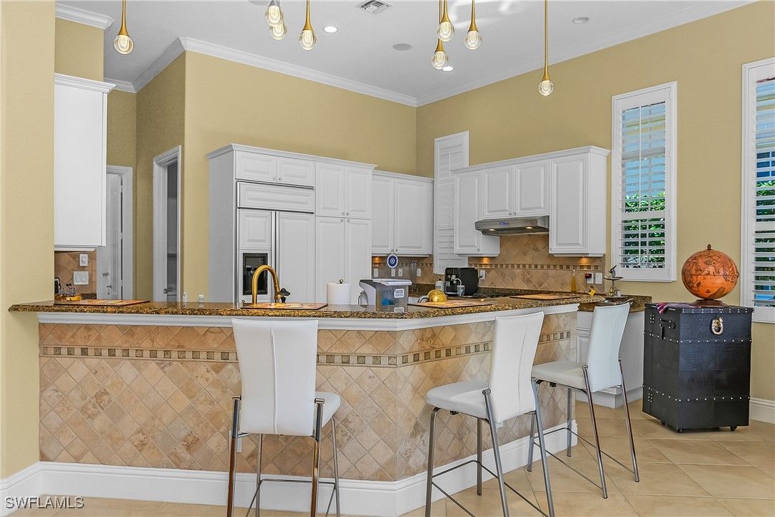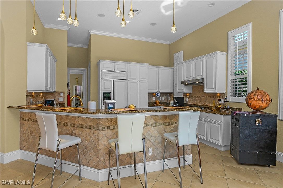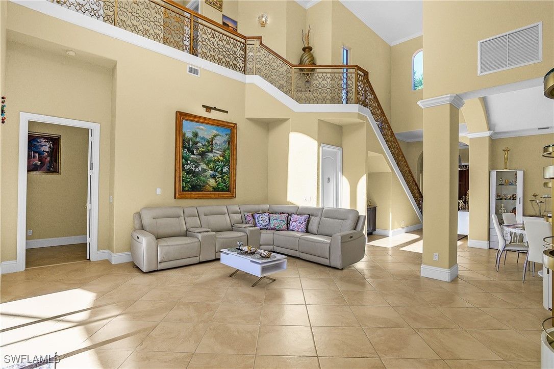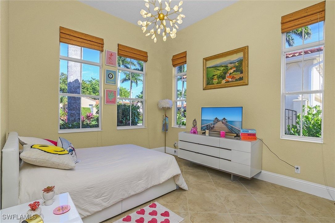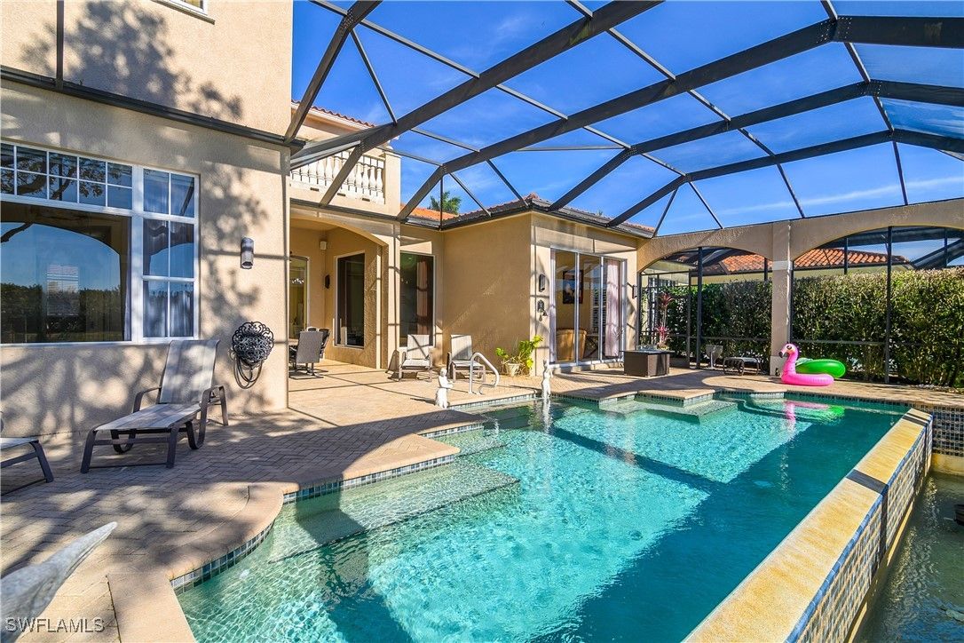Location, location, location. Rare opportunity to own a home on the southwest end of Bellagio Drive. The southwest exposure affords maximum sunlight on your pool and lanai area. Many large windows bring sunlight into the home for that bright and airy feel. As you relax on your lanai your view is of a beautiful infinity pool, followed by a peaceful waterway with private dock and conservation area. You’ll find this home to have a very spacious feel with 4 bedrooms plus den and 4.5 bathrooms. The master bedroom, one guest bedroom, and den is downstairs, while two additional bedrooms are upstairs. There is a second-floor private balcony facing south which is perfect for enjoying your morning coffee, watching the nighttime stars, or enjoying the Florida sunshine. The Fiddler’s Creek community boasts a 54,000 square-foot clubhouse and spa, two restaurants, a poolside bar/grill, state-of-the-art fitness center, full – service spa, tennis, Pickleball, bocce ball with optional golf and beach memberships available. This is resort living at its best