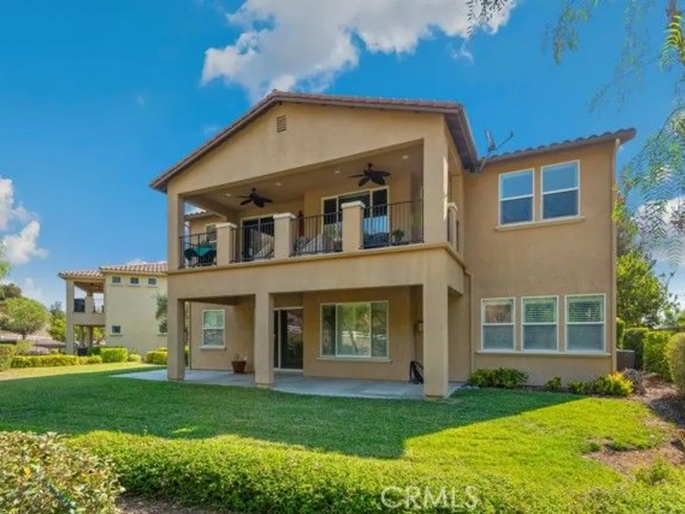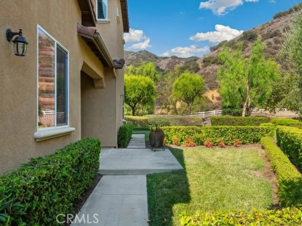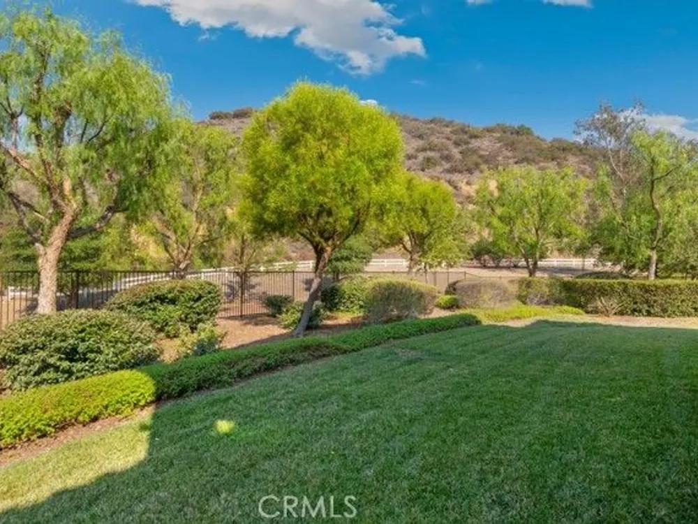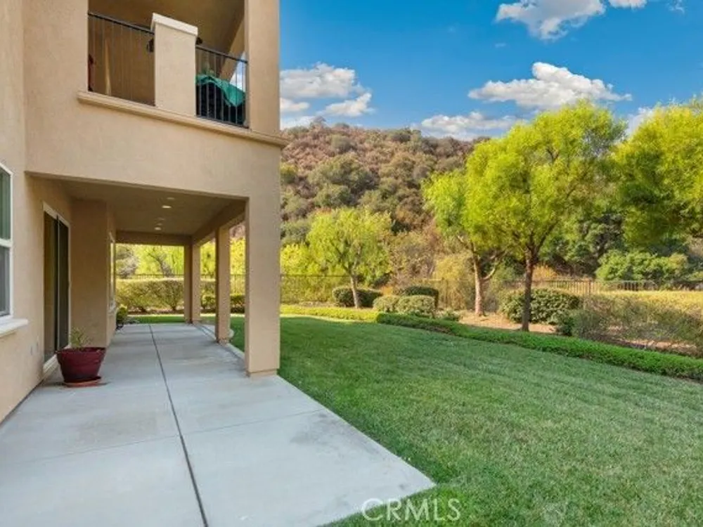 Gorgeous 2 bed, 2 bath condo located in the highly desirable 55+ gated community Trilogy at Glen Ivy! This stunning home is nestled up against the foothills, with no rear neighbors, offering fantastic panoramic views, with lots of seclusion and privacy - it is the most coveted lot in Cobblestone Canyon and this is one of the largest lot in the community! The interior is open and spacious with plantations shutters, recessed lights, tile and carpet floors. The formal rotunda entry opens to the spacious great room with fireplace, there is a slider to the backyard, a dining area, and the stunning kitchen features a large center island with granite counters, matching backsplash, and stainless steel appliances with brand new dishwasher and microwave. The bedrooms offer lots of privacy and sit on either side of the home. The large primary suite has a private bathroom with dual sink vanity, and full-size walk-in shower. There is also a bonus room that could be used as an office or work out area that sits between the entry and the secondary bedroom. A hall bathroom and an in-unit laundry room complete the floor plan. Enjoy the park-like backyard with covered patio, lush landscaping, with well kept grass and phenomenal foothill views - this is the perfect space for entertaining guests! This home also offers an attached 2-Car Tandem Garage, and resident's get to enjoy an array of Resort-like amenities including banquet facilities, club house, rec room, fitness center, golf course, pool, spa, pickleball and tennis courts, plus many community events. Schedule your private tour today and do not miss out on this gem!