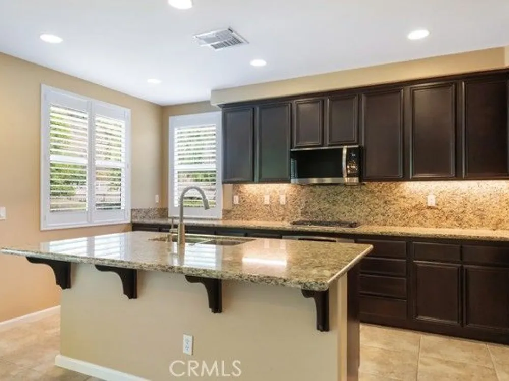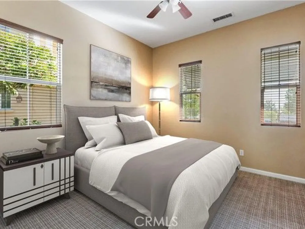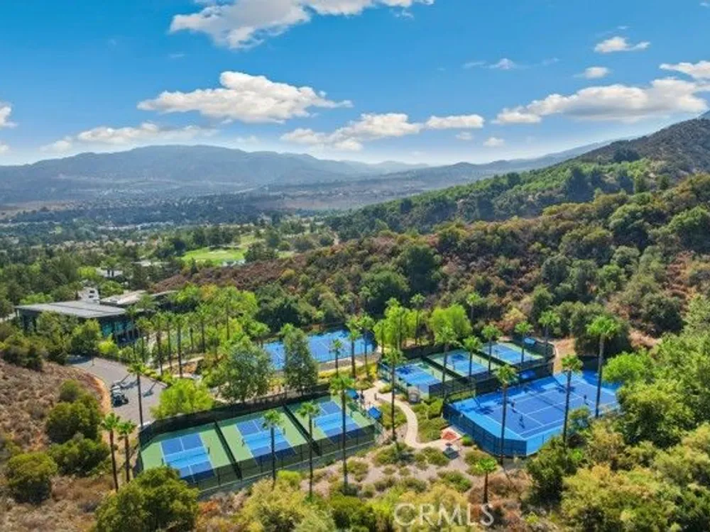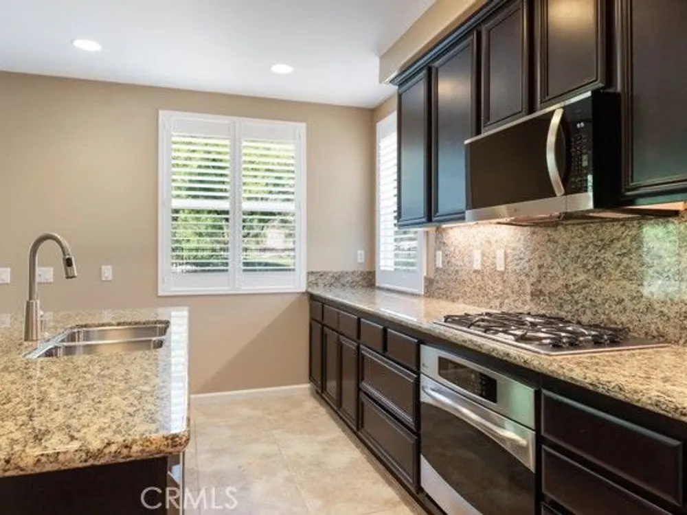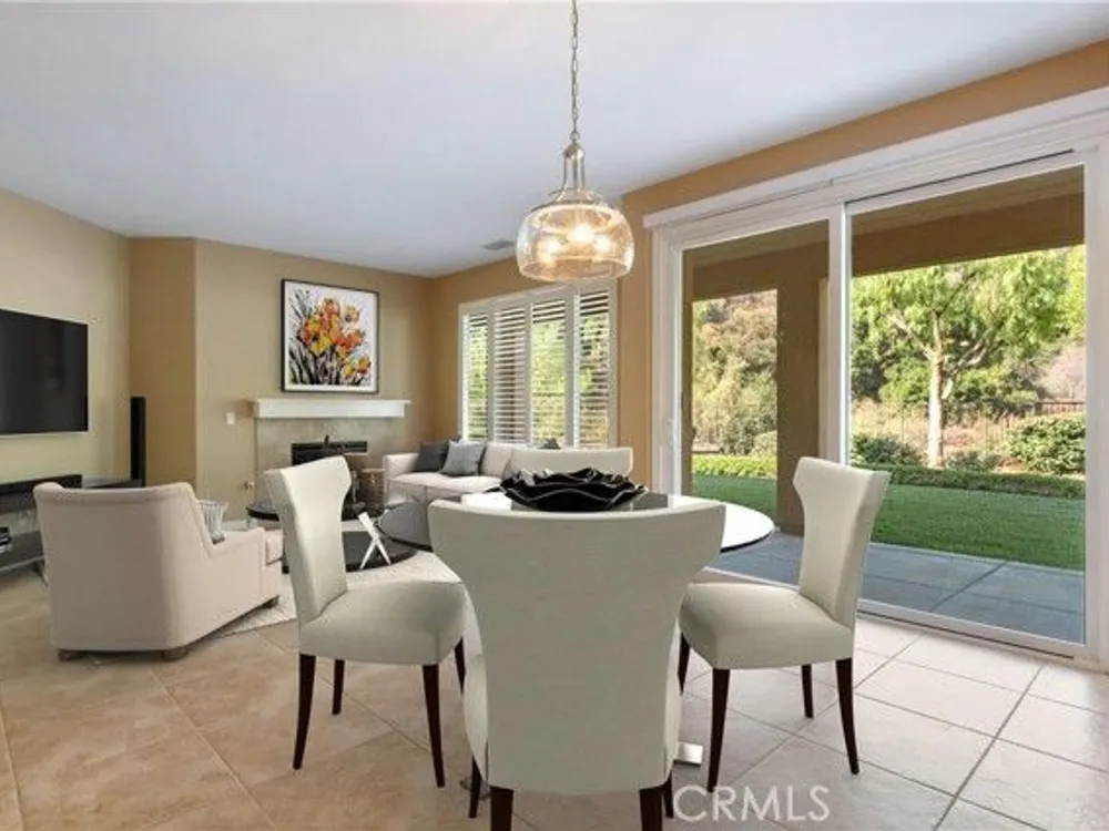 Gorgeous 2 bed, 2 bath condo located in the highly desirable 55+ gated community Trilogy at Glen Ivy! This stunning home is nestled up against the foothills, with no rear neighbors, offering fantastic panoramic views, with lots of seclusion and privacy - it is the most coveted lot in Cobblestone Canyon and this is one of the largest lot in the community! The interior is open and spacious with plantations shutters, recessed lights, tile and carpet floors. The formal rotunda entry opens to the spacious great room with fireplace, there is a slider to the backyard, a dining area, and the stunning kitchen features a large center island with granite counters, matching backsplash, and stainless steel appliances with brand new dishwasher and microwave. The bedrooms offer lots of privacy and sit on either side of the home. The large primary suite has a private bathroom with dual sink vanity, and full-size walk-in shower. There is also a bonus room that could be used as an office or work out area that sits between the entry and the secondary bedroom. A hall bathroom and an in-unit laundry room complete the floor plan. Enjoy the park-like backyard with covered patio, lush landscaping, with well kept grass and phenomenal foothill views - this is the perfect space for entertaining guests! This home also offers an attached 2-Car Tandem Garage, and resident's get to enjoy an array of Resort-like amenities including banquet facilities, club house, rec room, fitness center, golf course, pool, spa, pickleball and tennis courts, plus many community events. Schedule your private tour today and do not miss out on this gem!