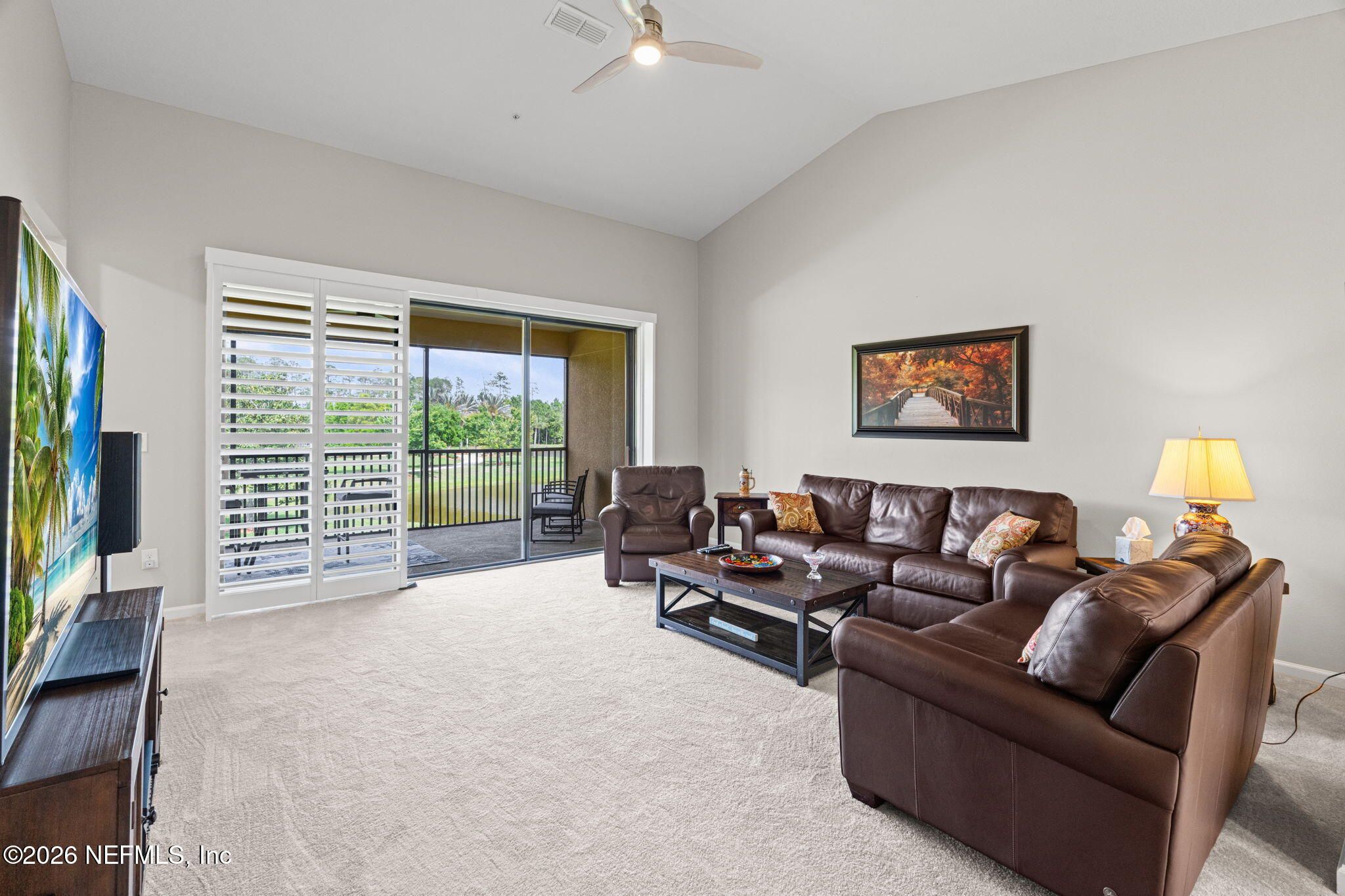 Are you looking for a home that has the Wow Factor? This is it. The soaring vaulted ceilings & open floor plan provide a spacious, open living feel that continues out through the retractable sliders to the huge, screened patio with fabulous views of green spaces and the lake. The renovation is spectacular. The large, gorgeous kitchen features premium cabinets, white quartz countertops, exciting backsplash tile, stainless appliances, under cabinet lighting and more. The bathrooms are elegantly modern, done with quality finishes. Three bedrooms provide options for an office, media room or space for plenty of guests. There are premium plantation shutters throughout, including large panels on the triple sliding doors. Enter directly into the home from your private, attached garage. The building features concrete block construction, barrel tile roofs and classic architecture that makes these Carriage Home condominiums unique. The bond portion of the CDD has been paid off, saving approximately $100 per month. The amenities and activities offered through Del Webb Ponte Vedra provide endless options for exercise, entertainment and socializing. Card groups, pottery classes, concerts, tennis, pickleball, golf groups, restaurant dining groups, billiards, a library and much more are offered through the community amenities. The term Active Adult Community truly applies here.
