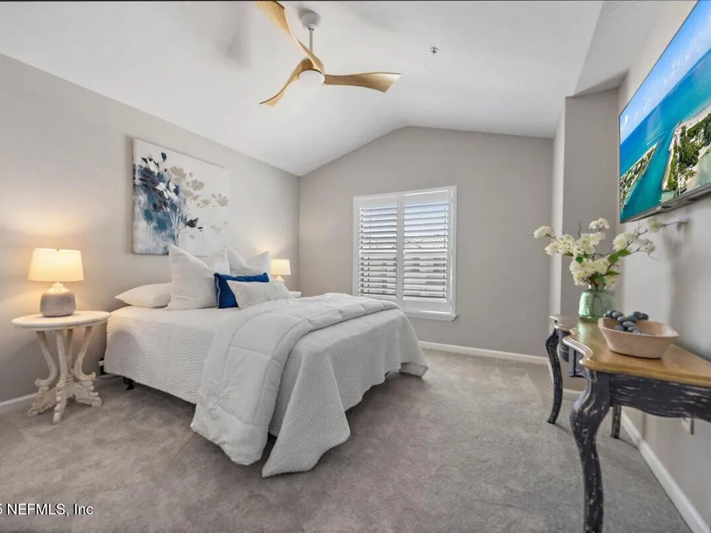 Welcome to Del Webb Ponte Vedra, an exceptional 55+ gated community offering resort-style amenities & a lifestyle second to none! This beautifully maintained Cormorant floor plan—the largest of the Carriage Homes—boasts breathtaking views of the lagoon & community gardens, & is just a short walk, bike ride, or drive to the Anastasia Club, the vibrant heart of this active adult neighborhood. Inside, you'll find a bright & inviting home featuring new carpet, an updated kitchen & bathrooms, & plantation shutters throughout. The well-appointed kitchen showcases Bosch & LG appliances, a Samsung refrigerator, & a KitchenAid trash compactor, along w/ a water softener for added comfort. This spacious residence includes two large bedrooms w/ vaulted ceilings, plus a versatile third room ideal for an office or guest bedroom (complete w/ a closet). The primary suite offers a large walk-in shower, double vanity, & generous walk-in closet. Enjoy the one-car garage, peaceful views, & all the incredible amenities Del Webb Ponte Vedra has to offer, including an expansive clubhouse w/ a ballroom, fitness center, indoor & outdoor pools, tennis courts, pickleball, & more! Conveniently located near shopping, dining, grocery stores, pharmacies, & top-rated healthcare (including Mayo Clinic & Baptist South), & less than 10 miles from the beach! This home truly offers the best of Florida living. Come experience the Del Webb lifestyle & live your best life today! There is a one-time Contribution fee of $3000, due at closing.