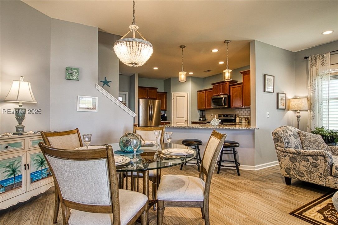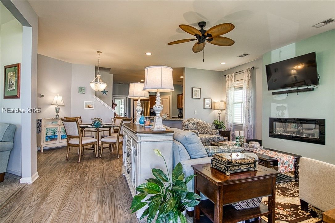 Experience easy living in this beautifully upgraded, turnkey home featuring a first-floor primary suite. High-end finishes set this home apart. Open-concept layout designed for both relaxing and entertaining, complete with striking 48" electric linear fireplace, recessed lighting, and stunning kitchen backsplash that adds the perfect touch of style. Valle Nevado granite countertops, & stainless steel appliances. Luxury vinyl plank flooring paired with upgraded carpet and plush pad, Crown molding throughout. Attached 2-car garage for easy access and storage, Covered porch perfect for morning coffee or evening unwind. Unbuildable lot next door.