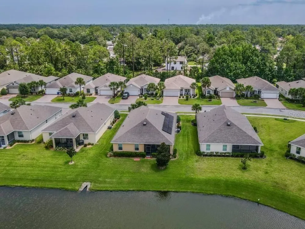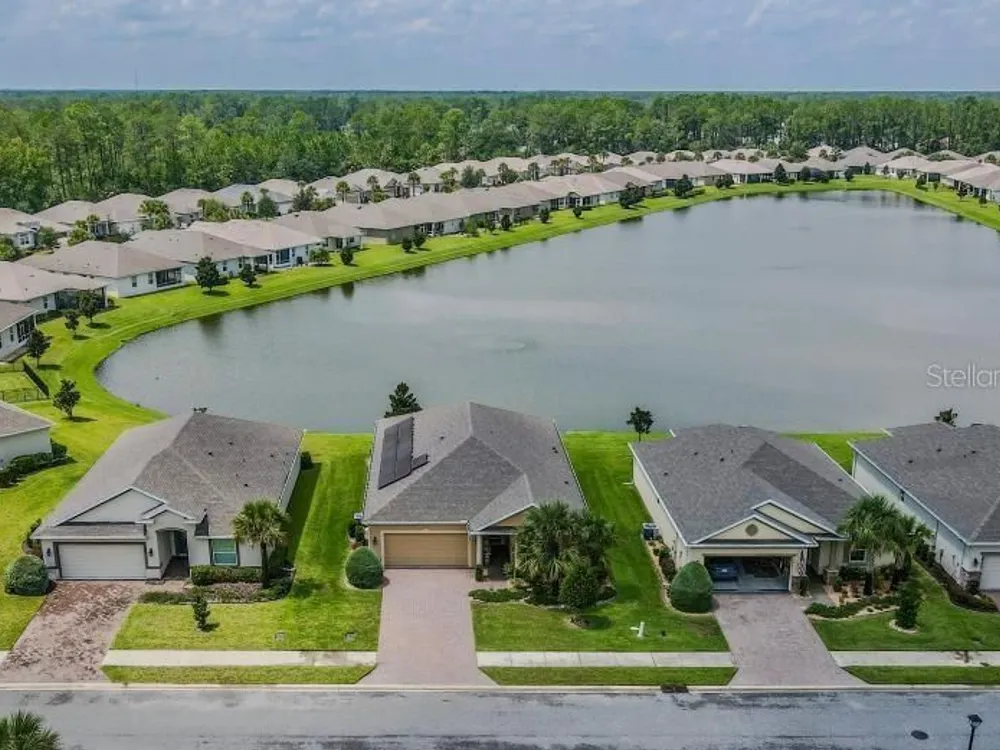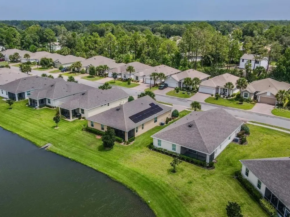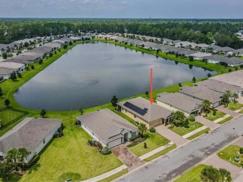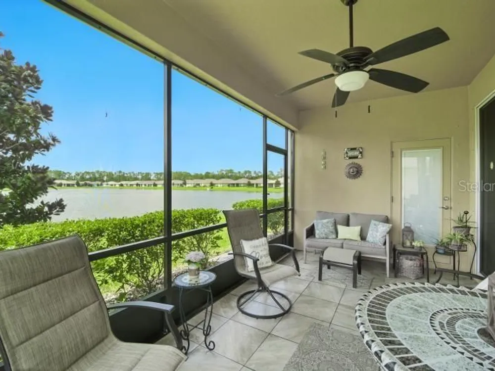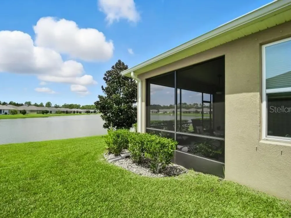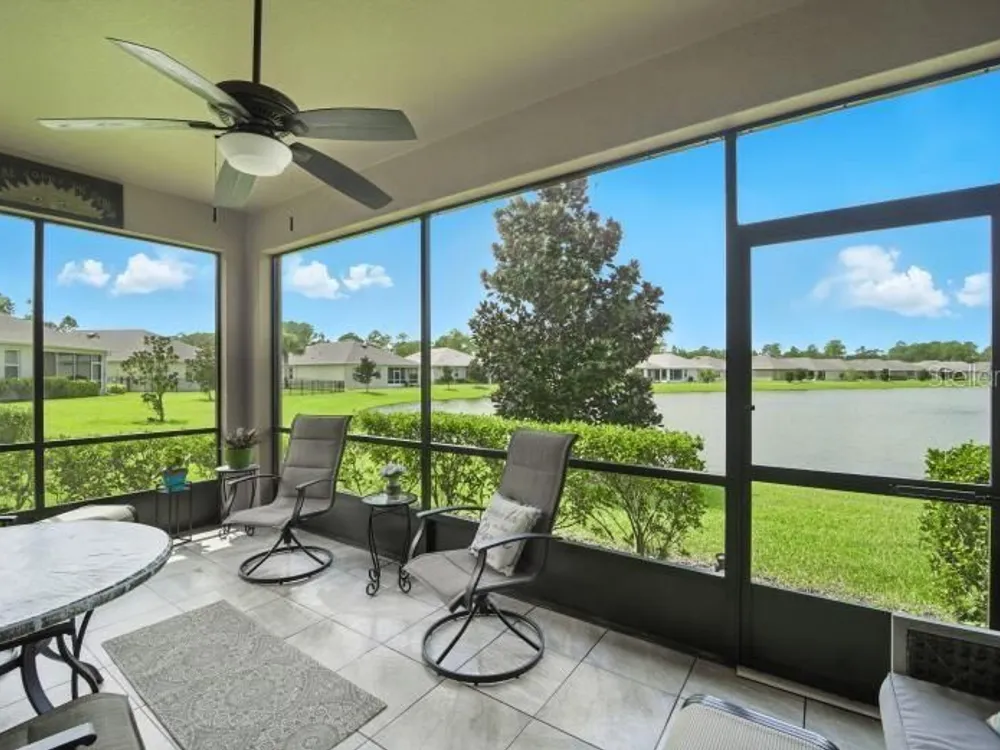 Welcome to Park Place, a quiet 55+ gated community where comfort, privacy, and convenience come together. This well-kept 2-bedroom, 2-bath home offers 1,885 sq. ft. of living space with an open layout and an attached 2-car garage. Located on Long Pond View, this property is one of the few in the neighborhood with a stunning sunset water view. Homes here are also set farther apart, giving you extra privacy. Relax in the covered, screened lanai with ceramic tile flooring, a ceiling fan, and peaceful views of the water. Inside, the home is exceptionally clean, smoke- and pet-free, and equipped with solar panels to help lower electric costs. Hurricane shutters protect all windows and doors, while window shades throughout add comfort and efficiency. The HOA is $230 a month and includes full yard maintenance plus a Spectrum Platinum TV and internet package. Residents enjoy resort-style amenities including a heated pool, cabana, shuffleboard, bocce, corn hole, and a putting green—perfect for staying active or connecting with neighbors. Blending comfort, low-maintenance living, and rare water views, this home is ready to welcome you to your next chapter.
