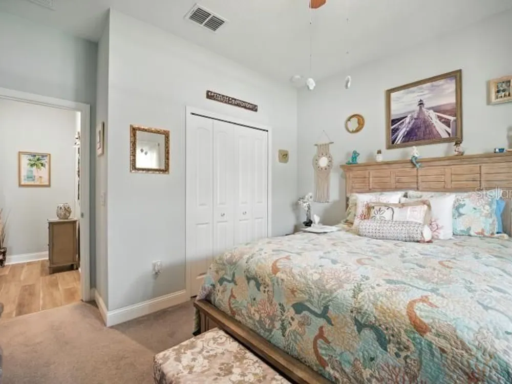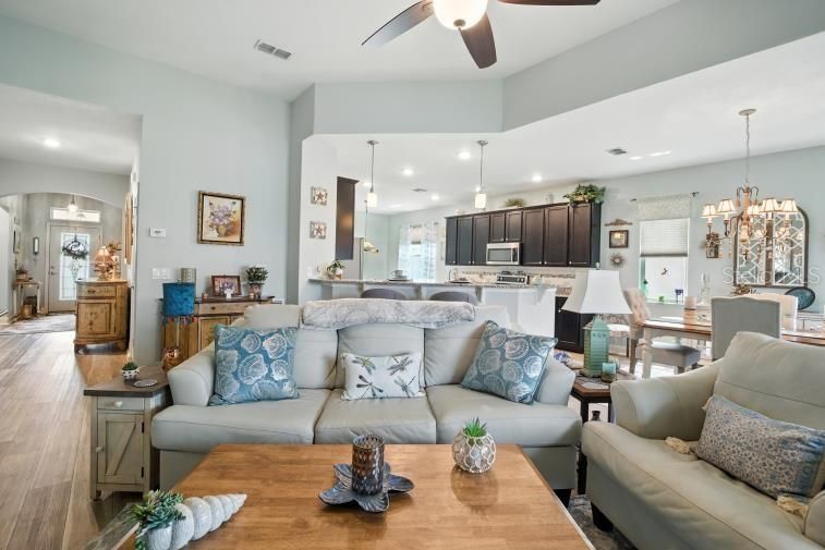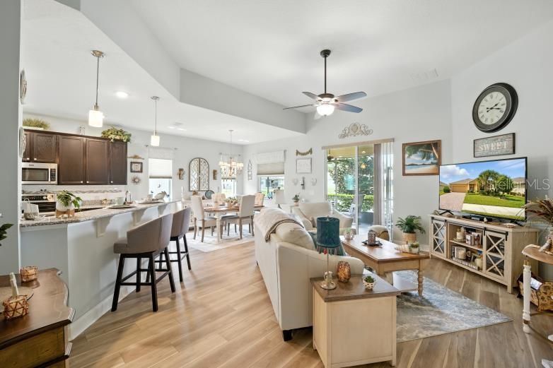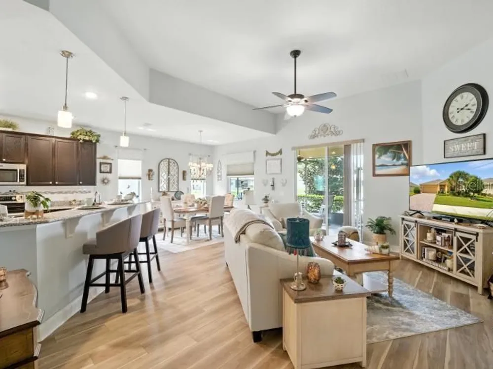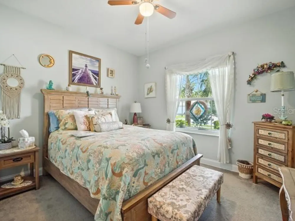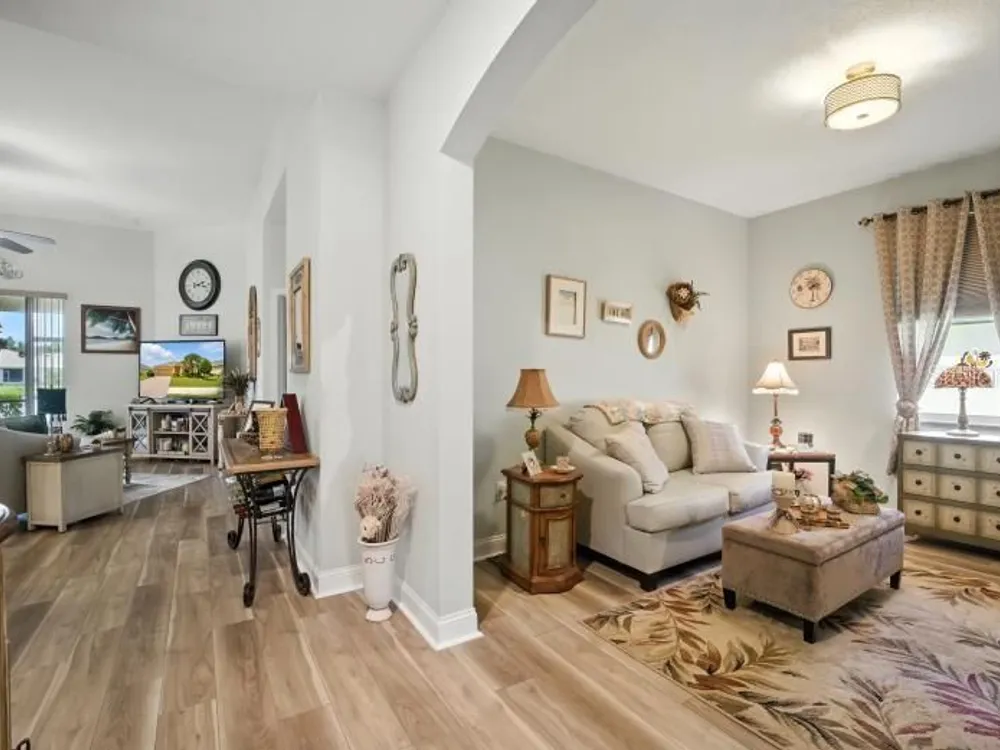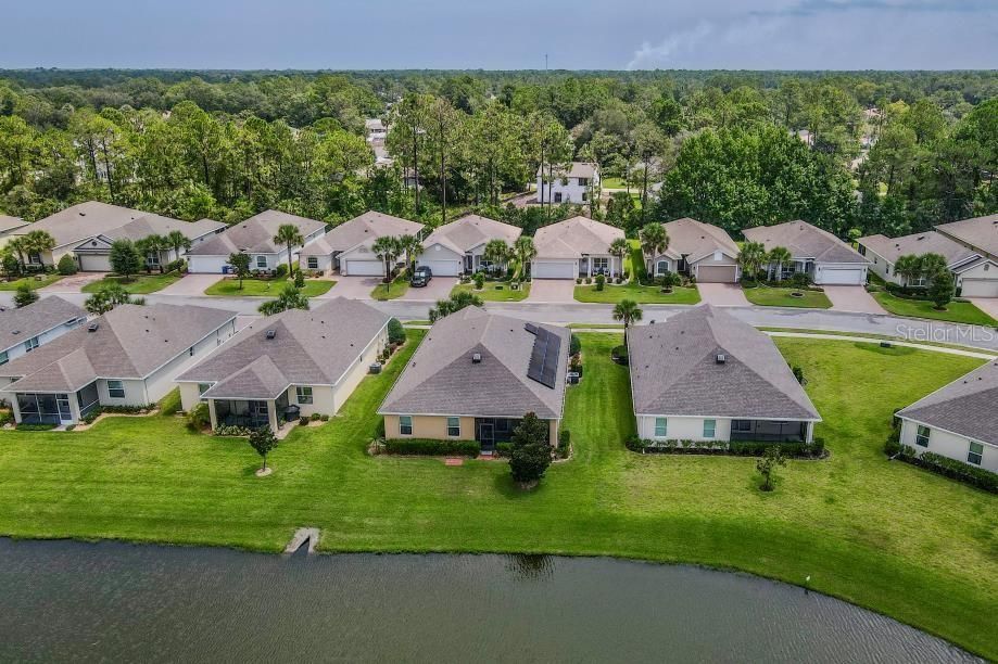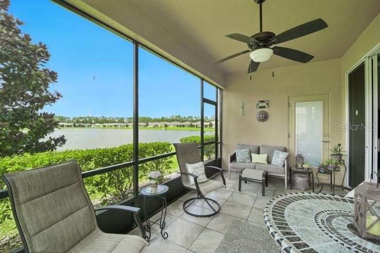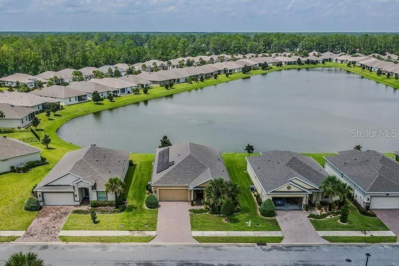 Welcome to Park Place, a quiet 55+ gated community where comfort, privacy, and convenience come together. This well-kept 2-bedroom, 2-bath home offers 1,885 sq. ft. of living space with an open layout and an attached 2-car garage. Located on Long Pond View, this property is one of the few in the neighborhood with a stunning sunset water view. Homes here are also set farther apart, giving you extra privacy. Relax in the covered, screened lanai with ceramic tile flooring, a ceiling fan, and peaceful views of the water. Inside, the home is exceptionally clean, smoke- and pet-free, and equipped with solar panels to help lower electric costs. Hurricane shutters protect all windows and doors, while window shades throughout add comfort and efficiency. The HOA is $230 a month and includes full yard maintenance plus a Spectrum Platinum TV and internet package. Residents enjoy resort-style amenities including a heated pool, cabana, shuffleboard, bocce, corn hole, and a putting green—perfect for staying active or connecting with neighbors. Blending comfort, low-maintenance living, and rare water views, this home is ready to welcome you to your next chapter.