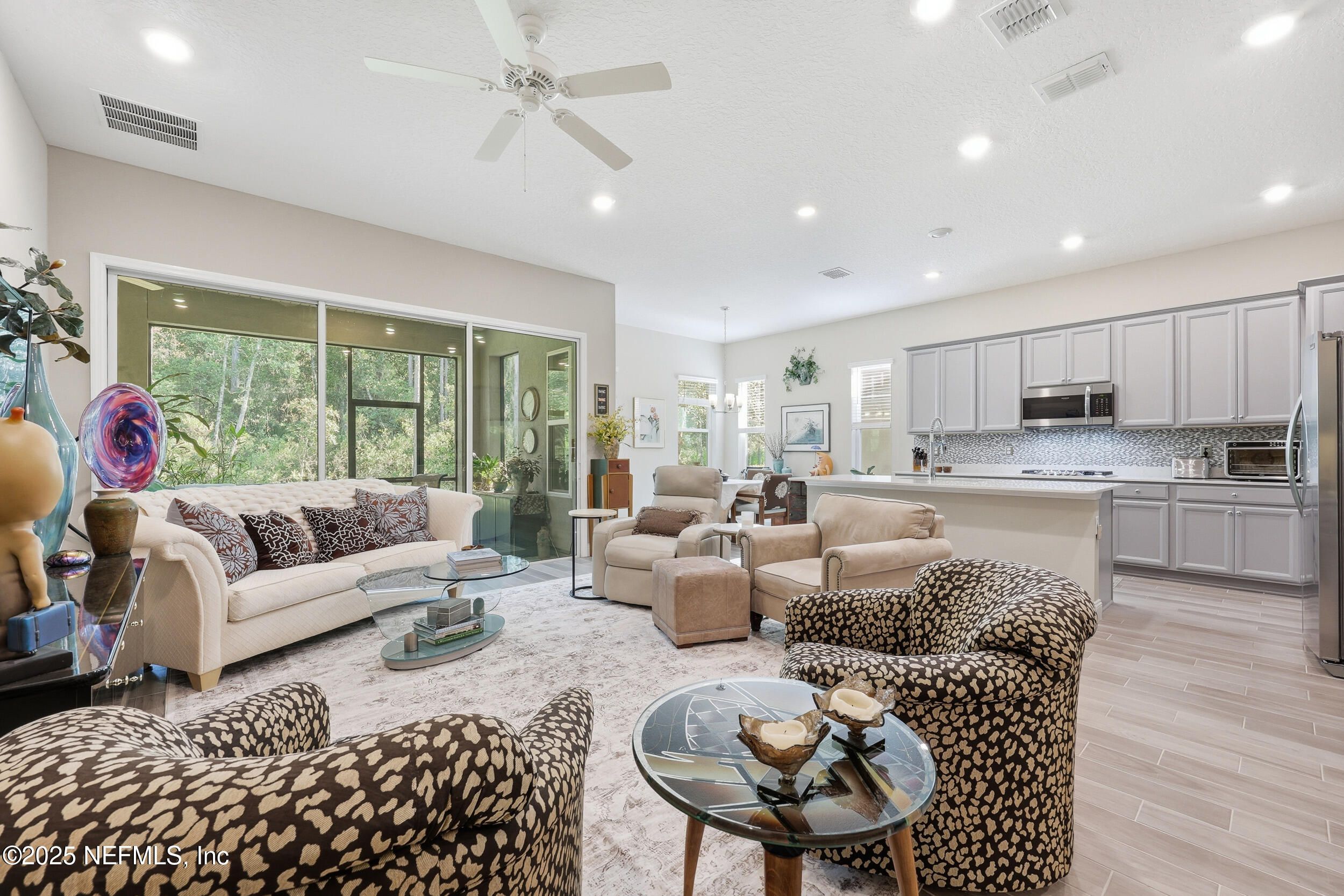 What We Love About This Home: The peaceful, private view from the lanai, smart kitchen storage, and a layout that feels both open and intimate—perfect for entertaining or quiet mornings. Experience the best of 55+ living in Artisan Lakes at Nocatee! This upgraded home offers a serene wooded backdrop, a 300 sq. ft. screened paver lanai, separate grilling patio, and a yard with lime and tangelo trees and new landscaping—plus room for a pool. Fewer than one-third of lots offer this space and privacy! The kitchen features upgraded cabinetry, custom pull-outs, tile backsplash, and a butler's pantry. The primary suite includes custom closet cabinetry, and the split floor plan ensures guest privacy. Additional highlights: pavered driveway, decorative glass front door, epoxy garage floor, newly insulated garage door with keypad, and a laundry room with custom cabinetry, utility sink, and versatile design. A recent 4-point inspection provides peace of mind. Enjoy the gated community's resort-style amenities: clubhouse, fitness center, pool, and vibrant social calendar. Discover the Nocatee lifestyle and make your move to Artisan Lakes today!