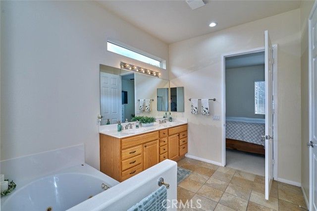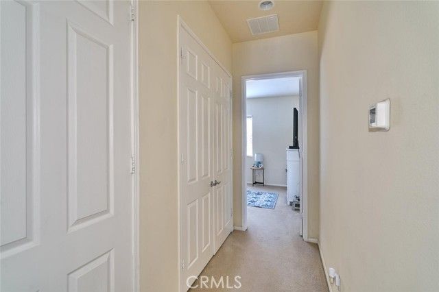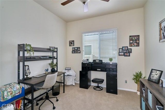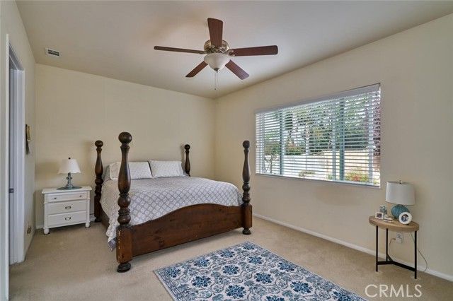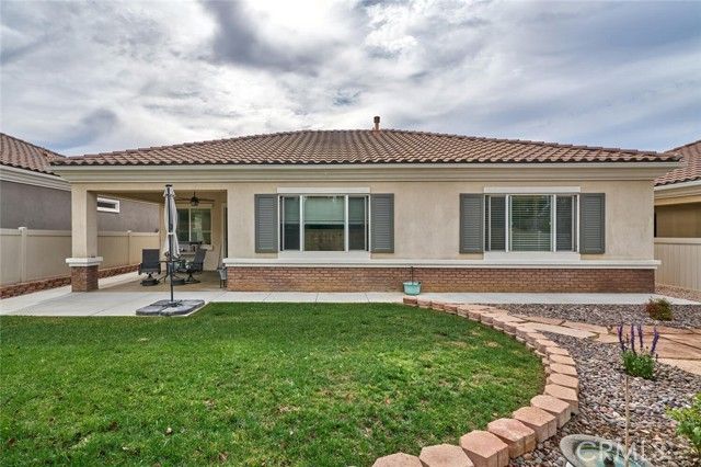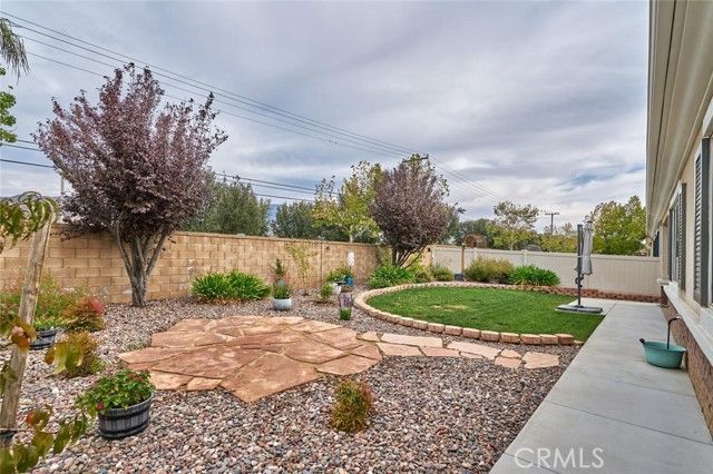 Beautiful "Emerald" model in Solera, a 55+community with mountain views and no rear neighbors to obstruct your serene vista. The master suite promises a spa-like retreat, featuring a luxurious jetted bathtub in the master bath. Comfort is paramount with ceiling fans installed in every room, while the kitchen shines with elegant pendant lighting. Practicality and peace of mind are also integrated into this charming property. A sturdy front security door and a convenient screened back door allow for refreshing cross-breezes. Furthermore, this home is equipped with a newer water softener system and is powered by solar, significantly reducing your energy bills. The solar loan payment is only $91 per month.All appliances and black metal garage shelves stay wth the home. This meticulously maintained home within the active Solera community truly offers an ideal blend of luxury, comfort, and value. The Solera 55+ community has a pool, spa, clubhouse, indoor gym, indoor walking track, tennis courts, billiards, meeting and banquet rooms, bocce ball, mailroom, library, classes, clubs, group trips and excellent 24-hour security. Basic Spectrum cable and internet are included with your HOA. Solera is close to Palm Springs, Redlands, the scenic mountain town of Oak Glen, Cabazon Outlet Malls, Morongo Casino and the best golf courses around. Solera is also preferred to the other Beaumont 55+ communities because of close, easier freeway access. Beaumont has a small town feel but with access to all there is to see and do in beautiful Southern California.