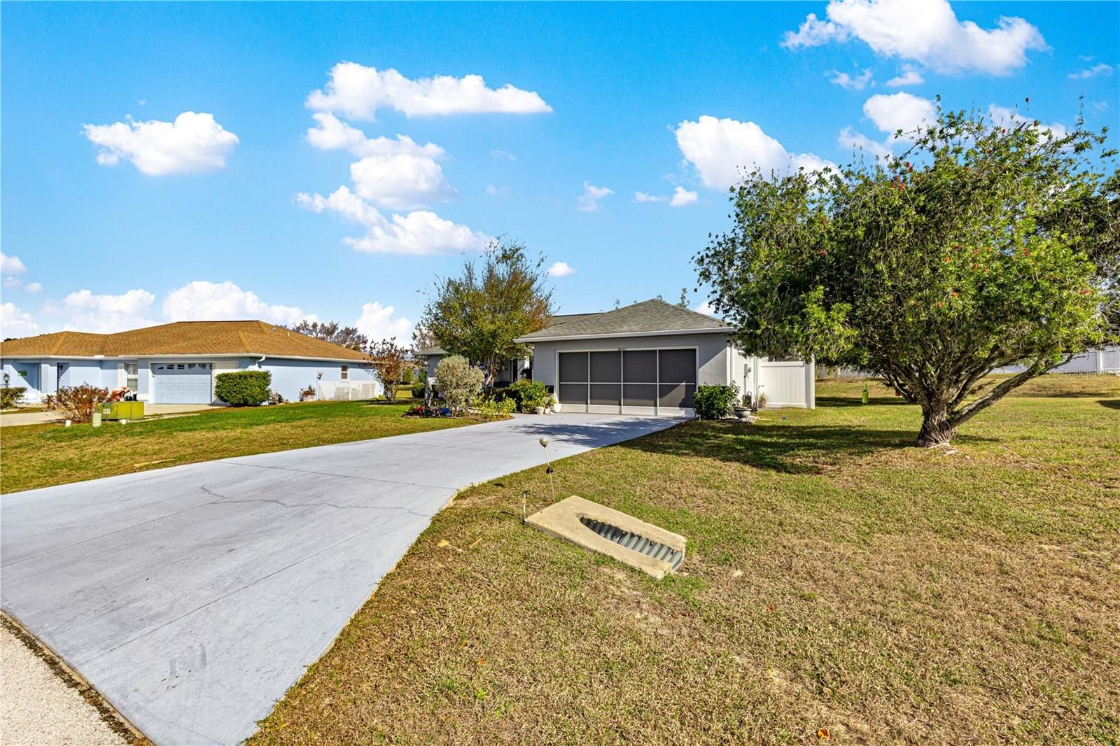 Sunshine living made easy! Affordable Florida living in this well-maintained 3BR/2BA/2-car split-plan home located in a desirable 55+ community with excellent amenities and super low HOA dues. Conveniently situated just off SR-200, close to abundant shopping, dining, and entertainment. This move-in-ready like new home features a new roof, new A/C, new luxury vinyl plank flooring and tile throughout, cathedral ceilings, plant shelves, and granite countertops. The spacious living room offers soaring cathedral ceilings and flows into the formal dining area. The kitchen includes stainless steel appliances, a pantry, and a breakfast nook. The primary suite features a walk-in closet, walk-in shower, jetted tub, toilet closet, and linen closet. Two comfortable guest bedrooms provide space for visitors or hobbies. Enjoy the vinyl-enclosed lanai under A/C with new windows, overlooking the private backyard patio and mature landscaping creating your personal sanctuary, including many ornamentals and three Moringa trees. Additional highlights include inside laundry and a screened garage with epoxy floor. The clubhouse features a large ballroom, kitchen and library. There is an Large heated outdoor pool, 4 bocce ball & 6 shuffleboard courts, pickleball, tennis and basketball, fitness center, billiards and an 8-lane bowling alley, and on site RV parking. Many clubs and activities such as bingo, dancing, karaoke, cards, games & crafts or fish from the catch and release pond. Marion Landing is golf-cart friendly ideally located in SW Ocala near hospitals, medical offices, restaurants, and shopping. Call today to tour this lovely home.