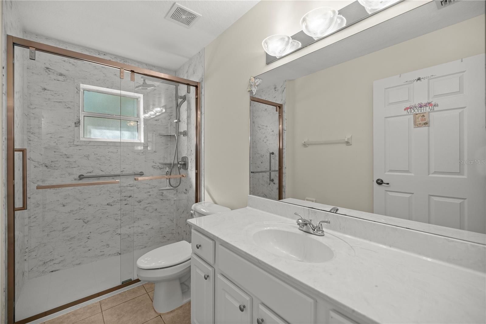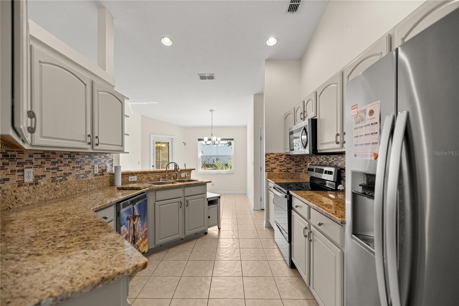 Sunshine/ Florida lifestyle living made easy! Affordable Florida living immediate ocupancy available in this well-maintained 3BR/2BA/2-car split-plan home located in a desirable 55+ community with excellent amenities and super low HOA dues. Conveniently situated just off SR-200, close to abundant shopping, dining, and entertainment. This move-in-ready like new home features a new roof, new A/C, new luxury vinyl plank flooring and tile throughout, cathedral ceilings, plant shelves, and granite countertops. The spacious living room offers soaring cathedral ceilings and flows into the formal dining area. The kitchen includes stainless steel appliances, a pantry, and a breakfast nook. The primary suite features a walk-in closet, walk-in shower, jetted tub, toilet closet, and linen closet. Two comfortable guest bedrooms provide space for visitors or hobbies. Enjoy the vinyl-enclosed lanai under A/C with new windows, overlooking the private backyard patio and mature landscaping creating your personal sanctuary, including many ornamentals and three Moringa trees. Additional highlights include inside laundry and a screened garage with epoxy floor. The clubhouse features a large ballroom, kitchen and library. There is a Large heated outdoor pool, 4 bocce ball & 6 shuffleboard courts, pickleball, tennis and basketball, fitness center, billiards and an 8-lane bowling alley, and on-site RV parking. Many clubs and activities such as bingo, dancing, karaoke, cards, games & crafts or fish from the catch and release pond. Marion Landing is golf-cart friendly ideally located in SW Ocala near hospitals, medical offices, restaurants, and shopping.