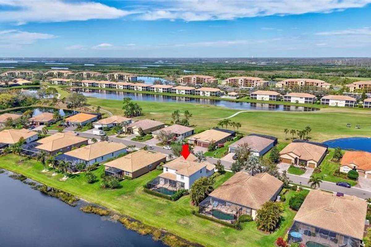 HUGE PRICE REDUCTION!!! Great 2-story family home in River Strand Golf & Country Club, a rare opportunity to find this Navona floor plan home with amazing lake views. This 4 bedroom 3 and half bath plus EXTRA BONUS room comes with GOLF MEMBERSHIP. FULLY FURNISHED and EQUIPPED. NEW AC 2025, NEW pool heater, new pool pump, newer interior and exterior painting, flooring and furniture downstairs. MASTER Bedroom on the MAIN floor has 2 walk-in closets, his & her sinks. This solid house (any damages from hurricanes) has a large kitchen and upgraded hardwood cabinets with stainless steel appliances and granite countertops. Sliding glass doors leading to screened & spacious lanai area with HEATED POOL/SPA. With pool you will find a half bath. Three additional bedrooms plus bonus room are on the 2nd floor. River Strand is a private gated community with 24/7 security. The 27-hole championship golf course was designed by Arthur Hills, featuring spectacular views of the Manatee River and panoramic greens and fairways. The club also offers two clubhouses, nine lit, Har-Tru tennis courts with on-site Tennis pro shop; Pickle Ball, 2 main and 6 community pools, two modern fitness centers. A beautiful 39,000 sq. ft. Tuscan-inspired main clubhouse offering casual and fine dining, a bar and grill room, billiard room, card room, conference room, golf pro shop, resort style pool with "sand" beach and tiki bar. River Strand has magnificently landscaped grounds with running and biking trails. The home is perfectly located 3 minutes from Market Place at Heritage Harbour with COSTCO and in early future with Target and a lot restaurants and stores, 5 minutes of I-75, just 15-20 minute drive to Florida's most renowned, awesome sand beaches like Anna Maria Island, Siesta Key Beach, Lido Beach or Longboat Key with an awesome little beach restaurants and tiki bars. 15 minutes from large Ellenton Outlets Mall with all famous international brands, 15 minutes UTC Mall, 20 minutes from beautiful downtown of Sarasota. Sarasota airport 20 minutes, Tampa airport 45 minutes. Enjoy the warm and sunny beaches of the Florida Gulf Coast, and Sarasota too! Welcome Home, you will LOVE it here!