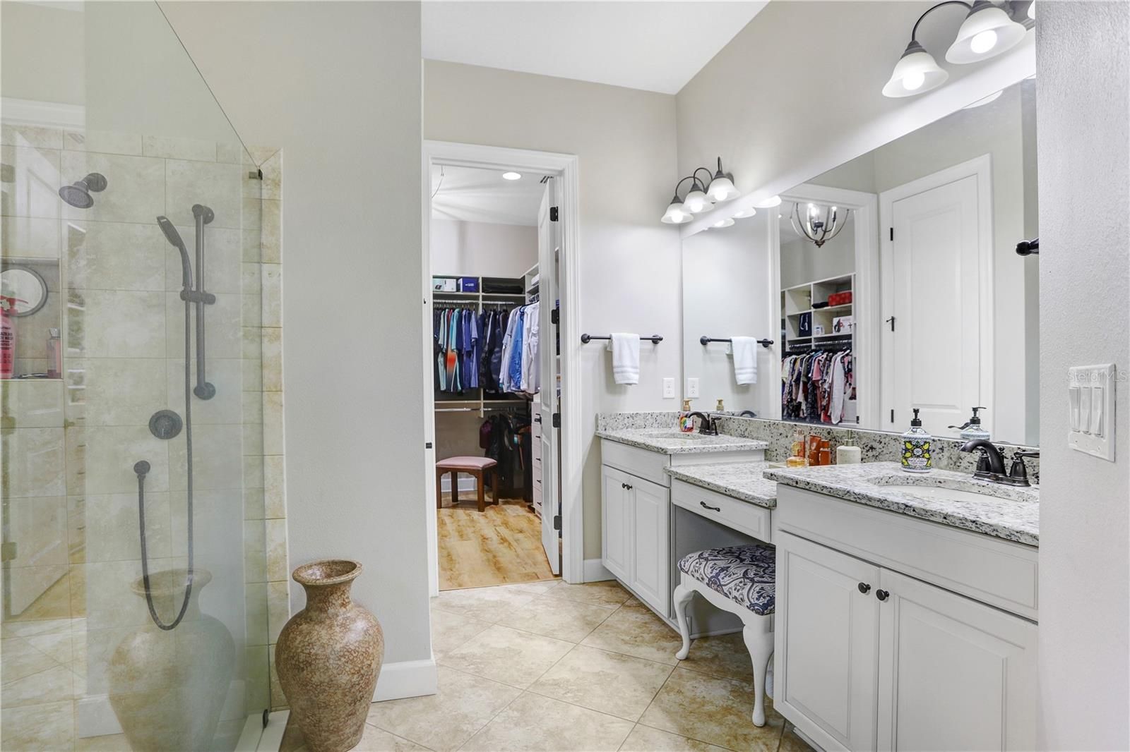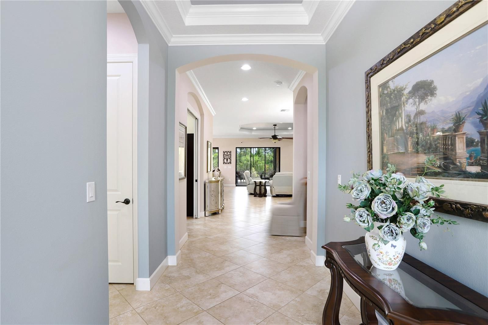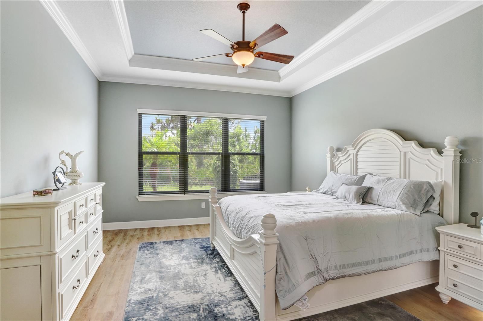 - Crown Molding, High Ceilings, In-Wall Pest Control, Open Floorplan, Main Level Primary, Split Bedrooms, Thermostat, Tray Ceiling(s), Walk-In Closet(s)