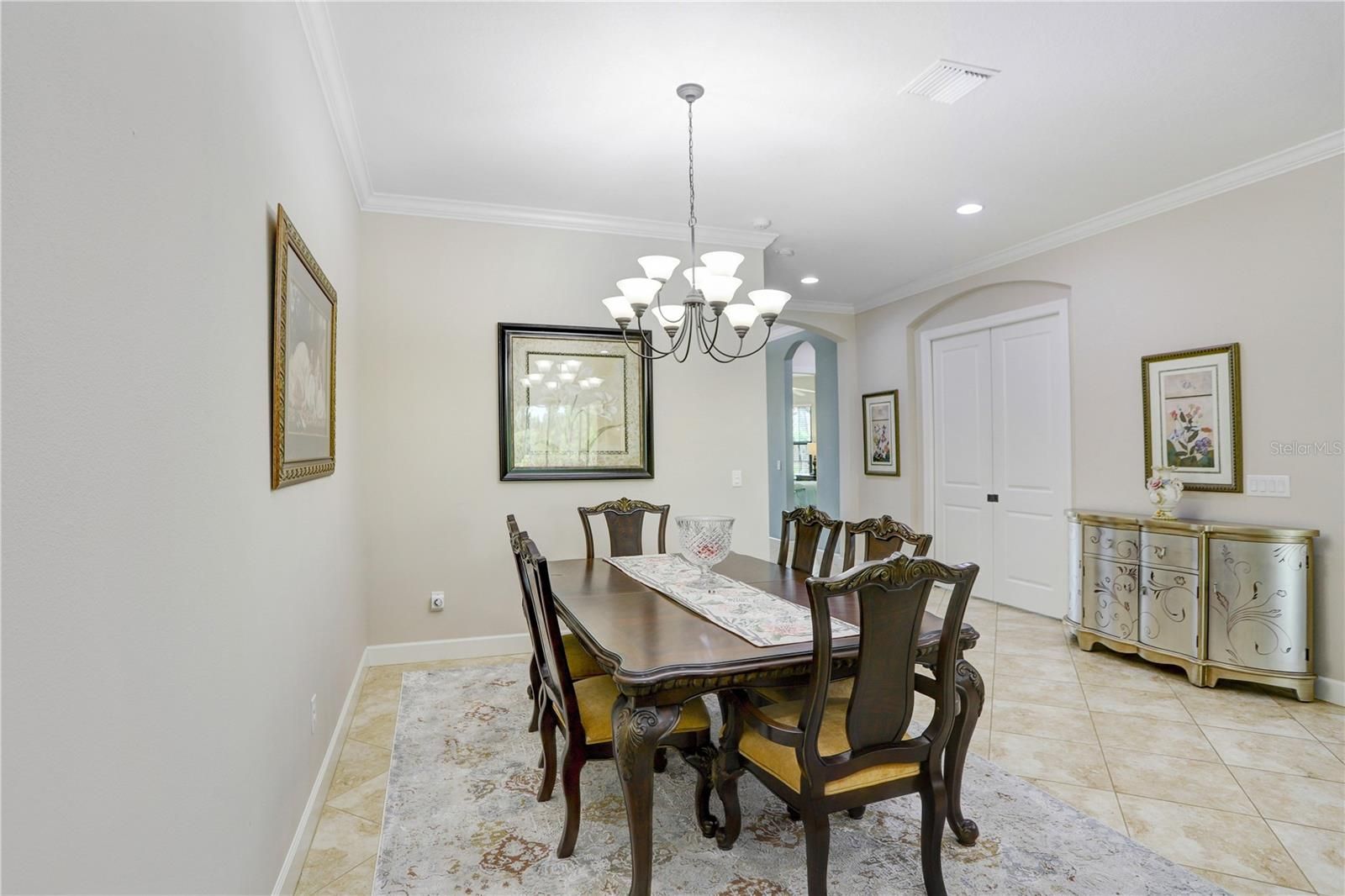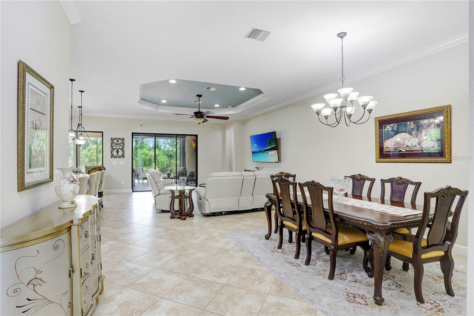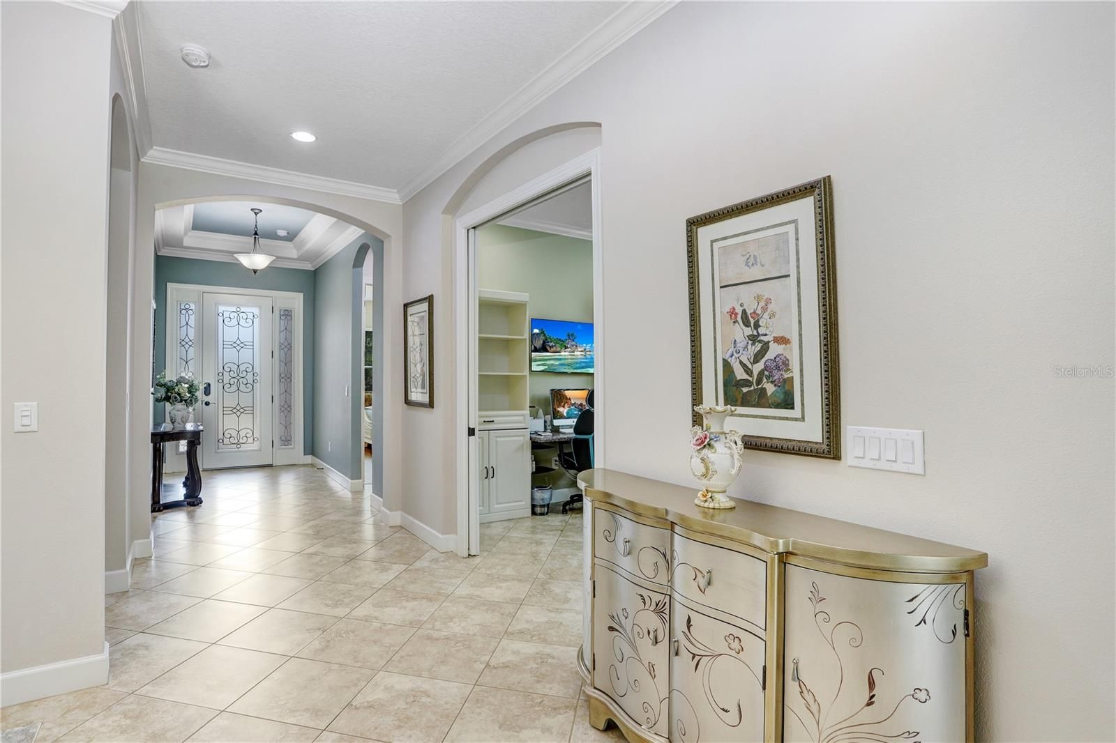 - Crown Molding, High Ceilings, In-Wall Pest Control, Open Floorplan, Main Level Primary, Split Bedrooms, Thermostat, Tray Ceiling(s), Walk-In Closet(s)