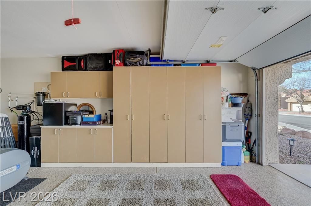 Beautifully upgraded townhome offering a blend of comfort, functionality, and style. The kitchen features quartz countertops, a stainless steel sink, and stainless steel appliances, perfect for both everyday living and entertaining. Ceiling fans add comfort throughout the home.The garage is thoughtfully equipped with built-in storage cabinets, maximizing organization and space. Enjoy outdoor living with a private front courtyard and a covered rear patio, ideal for relaxing or hosting guests.The second bedroom includes a custom Murphy bed, providing flexibility for guests, a home office, or multipurpose living. A water softener adds an extra touch of convenience and care for the home.This well-appointed townhome is move-in ready and designed for easy, low-maintenance living. Enjoy Sun City Summerlin amenities: golf, pools (indoor&outdoor) community centers w/ fitness centers, tennis, pickle ball, racquetball, social activities and much more!