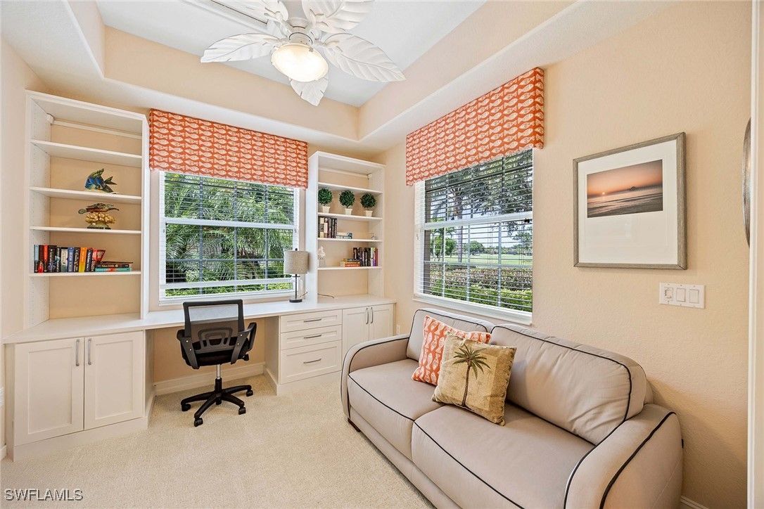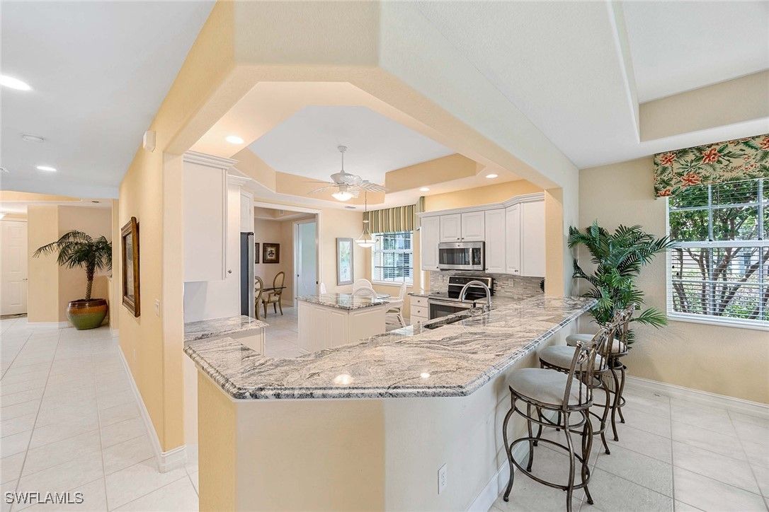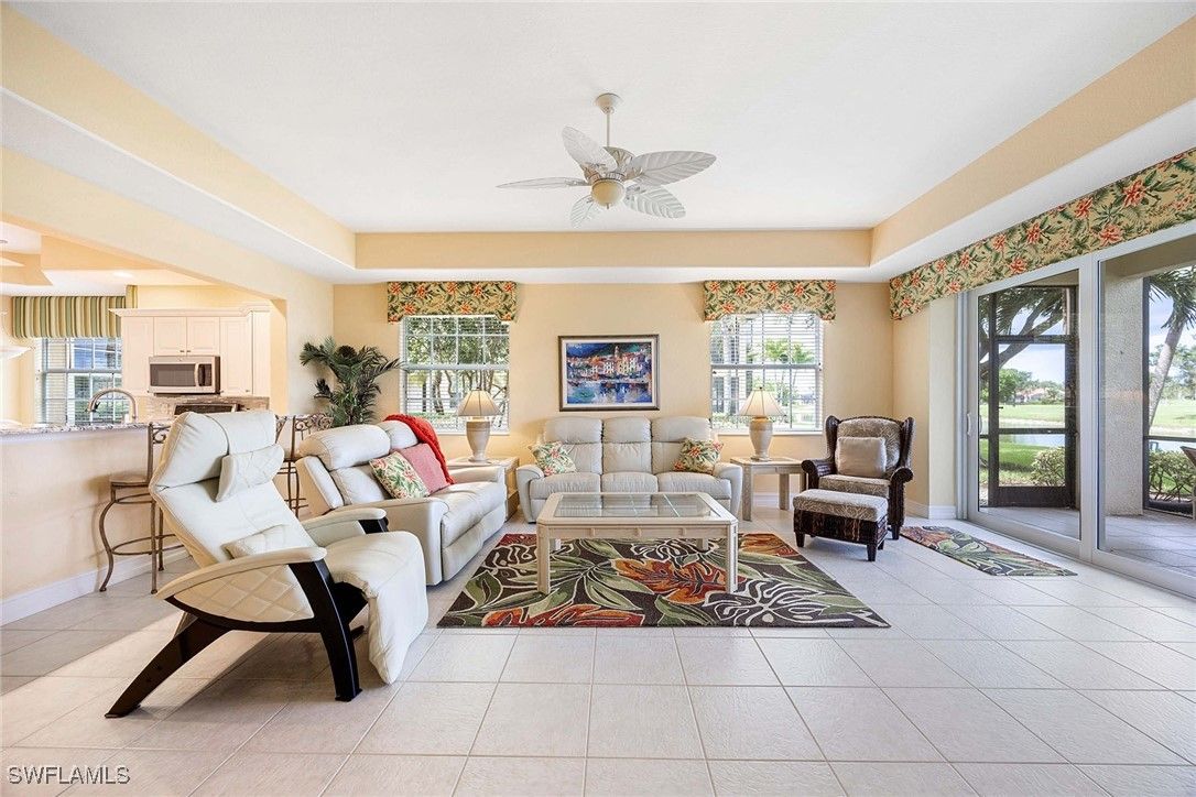 Experience luxury living in this meticulously maintained, fully turnkey-furnished condominium nestled in the exclusive, double-gated, pet-friendly Champions community within Lely Resort. This ground-floor end unit offers unparalleled convenience with amenities just steps away, including the Champions pool and clubhouse, the prestigious Player's Club & Spa, Classics Country Club and the Mustang Island and Flamingo golf courses. This spacious and open two-bedroom plus den with dining room, two-bath condominium boasts breathtaking private views of the lake and golf course and comfortably sleeps 6. The gourmet kitchen is a chef’s dream, equipped with modern stainless steel appliances, granite countertops, a walk-in pantry, a center island, breakfast table, breakfast bar and abundant cabinet space. The expansive primary suite offers two closets, a separate shower, a large soaking tub and dual sinks. Impact-resistant windows and doors, as well as new roofs in 2019, ensure peace of mind for years to come. Relax and unwind in the spacious screened-in lanai, perfect for enjoying tranquil sunset views. Optional membership to the renowned Player's Club & Spa is immediately available, providing access to an array of social and sporting activities such as tennis, pickleball, a fitness center and resort-style pools. Lely Resort is also home to three championship 18-hole golf courses, offering an unmatched golfing experience. Embrace the lifestyle you’ve always dreamed of in this exceptional condominium. Don’t miss the opportunity to make it yours!