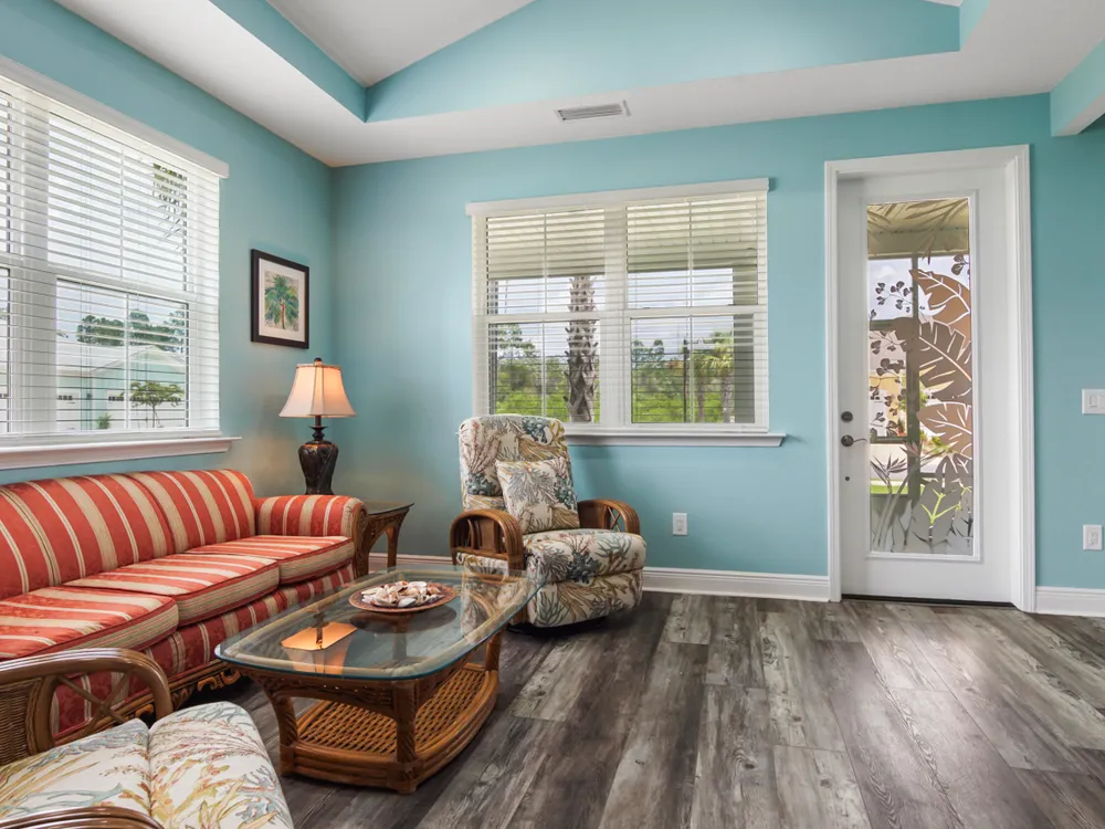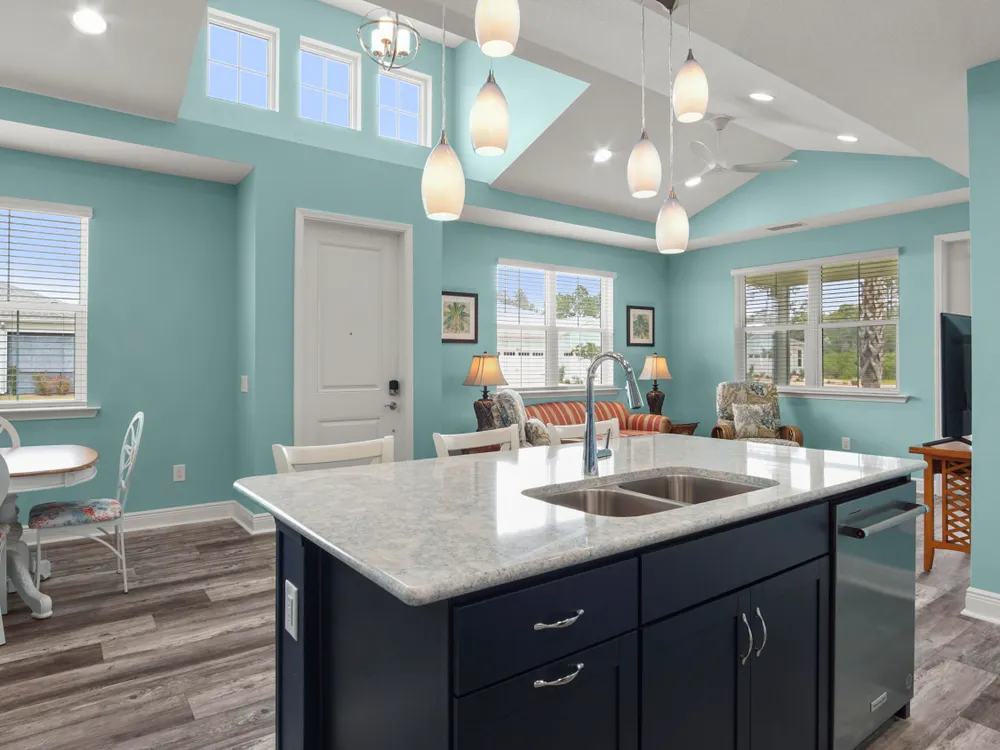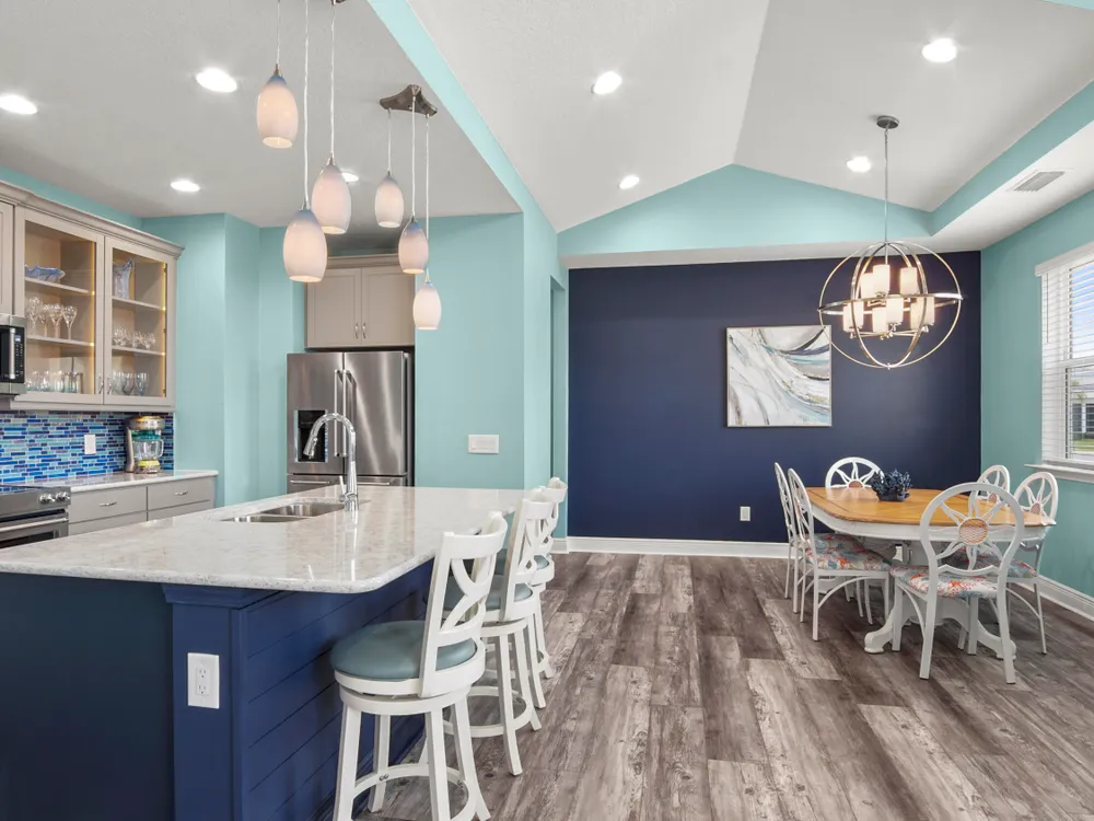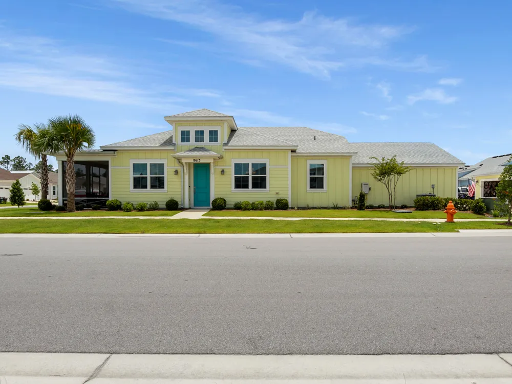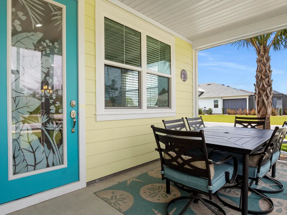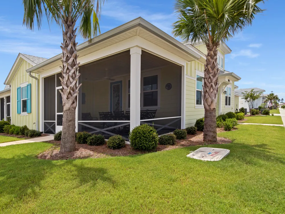 Welcome to this like-new Aloha floorplan located in Latitude Margaritaville, a gated 55+ community offering exceptional amenities and an active coastal lifestyle. This immaculate residence sits on a premium corner lot and features 2 bedrooms and 2 bathrooms, plus an additional flex-space perfect for an office, hobby room, or den. With over $75,000 in upgrades, this home showcases luxury vinyl plank flooring and recessed lighting throughout for a modern and cohesive feel. The kitchen is a chef's delight, featuring a spacious island, stainless steel appliances, a tiled backsplash, pantry, and beautiful lighted glass-front cabinetry with soft close doors. The bathrooms are equally impressive, with quartz countertops and showers that are tiled all the way up to the ceiling for a seamless, upscale look. Enjoy outdoor living year-round on the enclosed patio. The two-car garage is finished with epoxy flooring and includes a 20 amp outlet, keeping your car protected from the elements and your golf cart fully charged. Located within a vibrant community offering pools, fitness centers, restaurants, entertainment, and tennis or pickleball, this move-in ready home is perfect for enjoying everything Latitude Margaritaville has to offer.