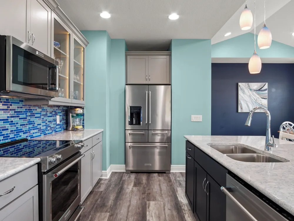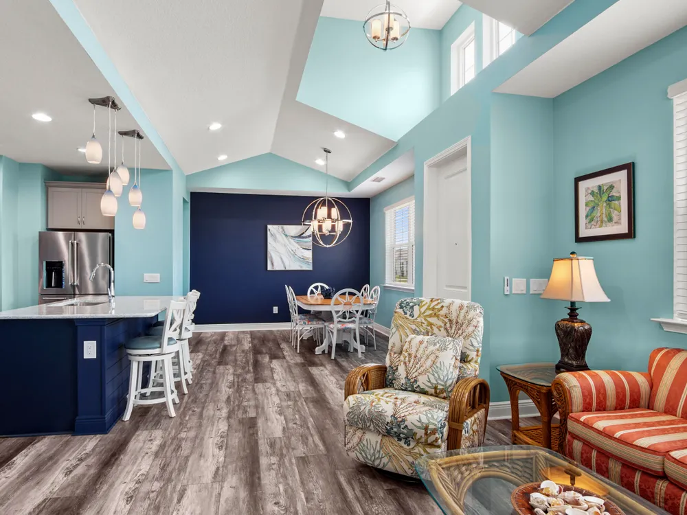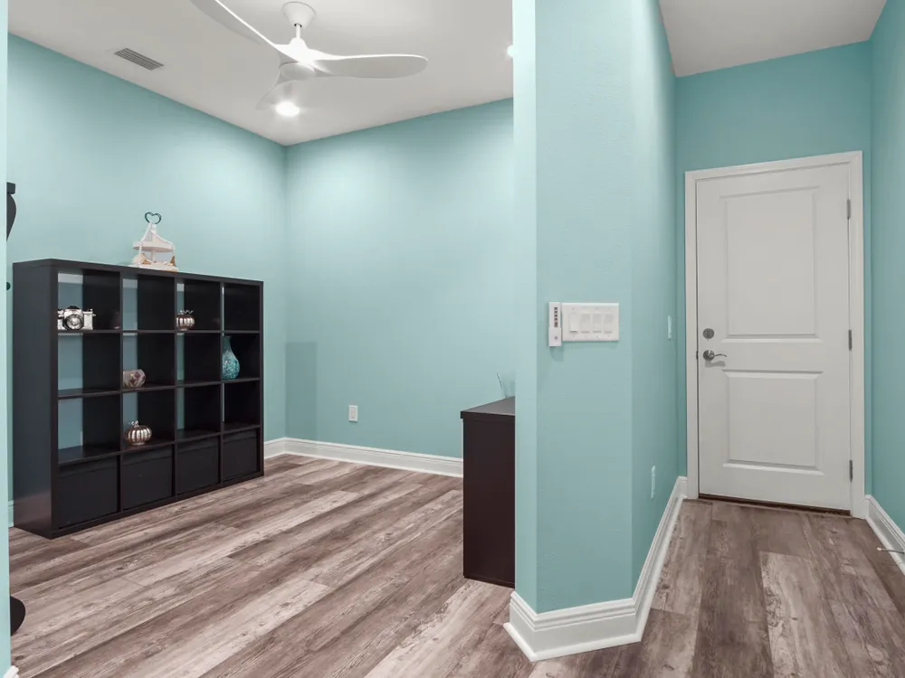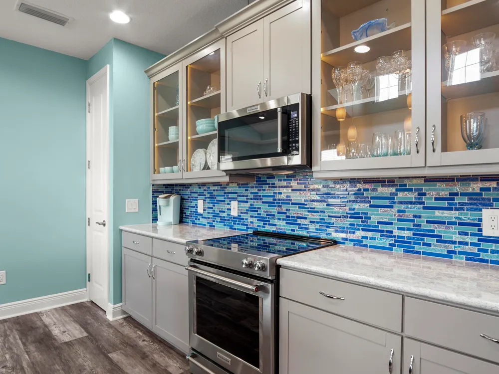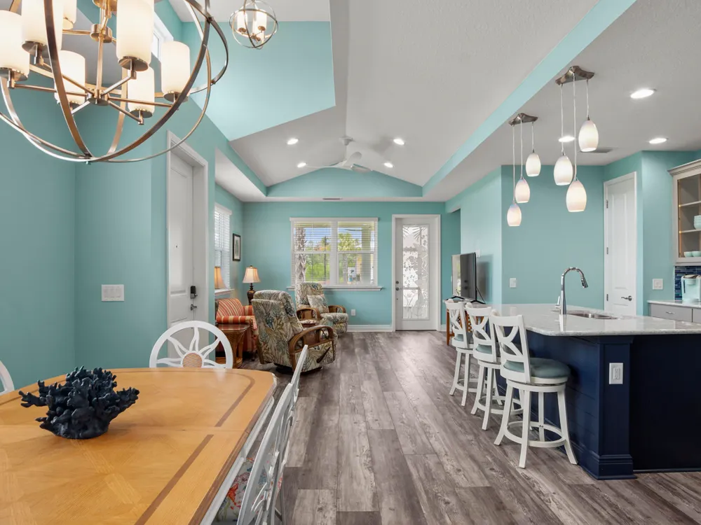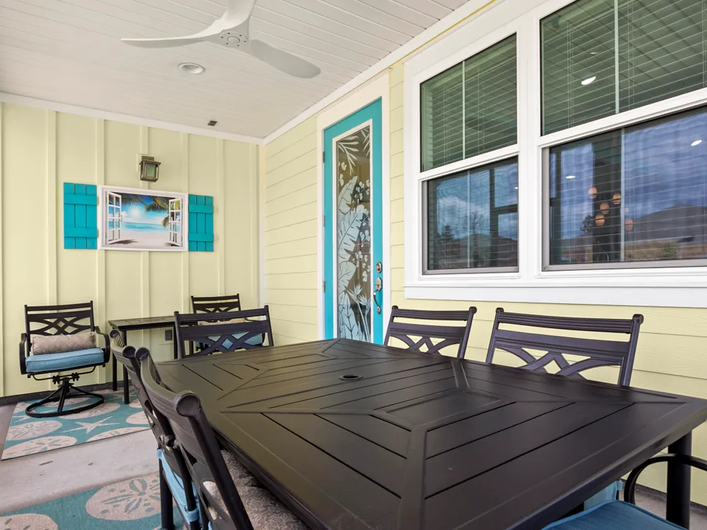 Welcome to this like-new Aloha floorplan located in Latitude Margaritaville, a gated 55+ community offering exceptional amenities and an active coastal lifestyle. This immaculate residence sits on a premium corner lot and features 2 bedrooms and 2 bathrooms, plus an additional flex-space perfect for an office, hobby room, or den. With over $75,000 in upgrades, this home showcases luxury vinyl plank flooring and recessed lighting throughout for a modern and cohesive feel. The kitchen is a chef's delight, featuring a spacious island, stainless steel appliances, a tiled backsplash, pantry, and beautiful lighted glass-front cabinetry with soft close doors. The bathrooms are equally impressive, with quartz countertops and showers that are tiled all the way up to the ceiling for a seamless, upscale look. Enjoy outdoor living year-round on the enclosed patio. The two-car garage is finished with epoxy flooring and includes a 20 amp outlet, keeping your car protected from the elements and your golf cart fully charged. Located within a vibrant community offering pools, fitness centers, restaurants, entertainment, and tennis or pickleball, this move-in ready home is perfect for enjoying everything Latitude Margaritaville has to offer.