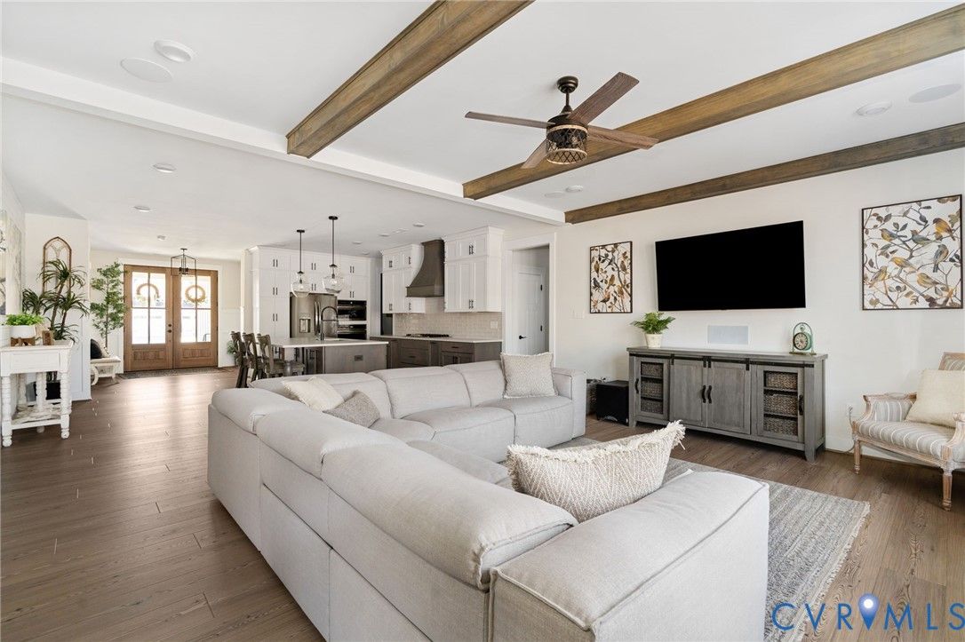 Welcome to this practically new 4 bedroom/3 bath Viniterra home, combining modern design, luxury finishes, and golf course views—without the wait of new construction! Built in 2022, this home offers an open-concept floor plan with a gourmet kitchen featuring a large island, quartz countertops, ample cabinetry, and stainless steel appliances. The first-floor primary suite boasts a spa-like ensuite with a soaking tub and walk-in shower, plus a custom walk-in closet with ample shelving. Outside, enjoy relaxing on the screened-in porch featuring solar shades and a view of the 10th tee past the pond. Additional upgrades in the home include a built-in dry bar, custom wall features, surround sound speakers, custom blinds and shutters, and central vacuum. Rare features include walk-in storage on the second floor, under-house storage, along with an extended garage with an additional 4 feet of depth, ideal for storage or a golf cart. Residents enjoy resort-style amenities, including a pool, fitness center, pickleball and tennis courts. Conveniently located with easy access to Richmond and Williamsburg. This home is truly move-in ready!