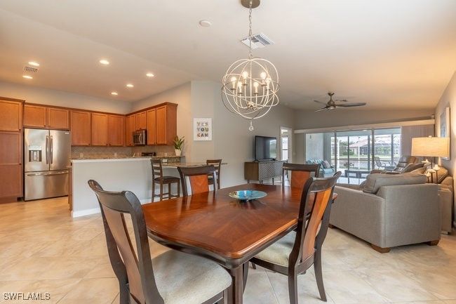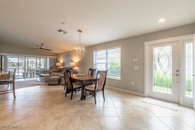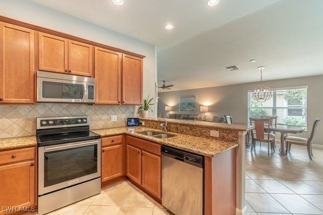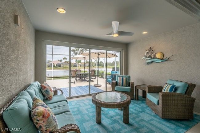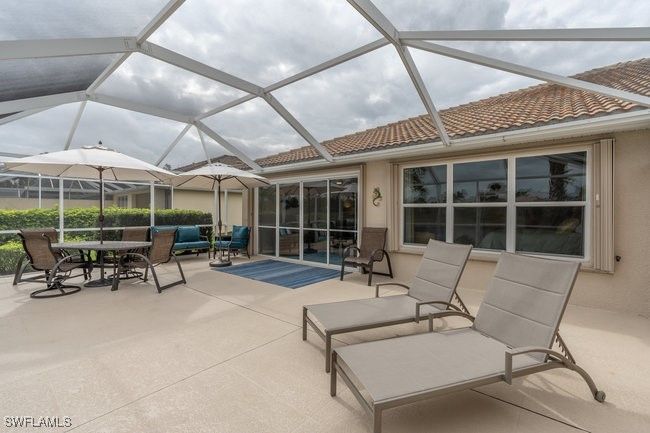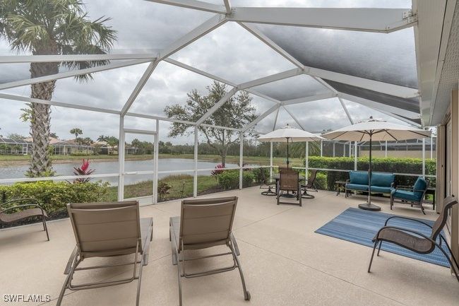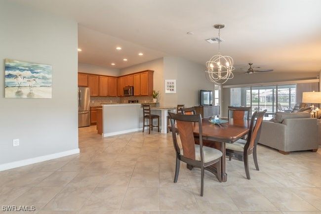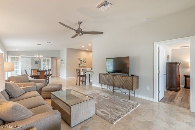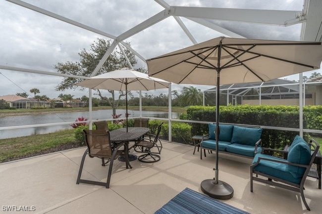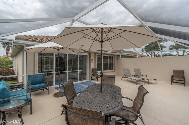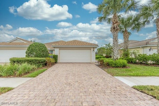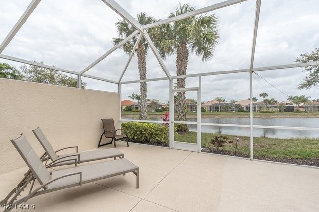 WOW!!!!!! JUST REDUCED THIS Move In Ready in the Gated Community of VeronaWalk! Make this delightful three bedrooms/two bath attached Carrington model villa your new home. Enter through the new, contemporary design, glass door into a vaulted ceiling, open concept living space. No carpet in this home. Bedrooms have plank flooring. Tile floors laid on the diagonal in the main living area and light neutral paint shades give an expansive feel to the unit. Stylish lighting fixtures and fans have been installed. A centrally located kitchen has granite counters, stone backsplash and a host of newer stainless appliances. Your cabinetry comes with convenient pull-outs. The breakfast bar has been extended to offer additional, casual dining space. Mechanical upgrades include a newer A/C unit (10 year extended warranty) with duct work just cleaned in 2025 and a year old water heater. An additional electrical circuit in garage allows for golf cart charging. The home’s exterior was recently painted. A unique bonus is the enclosed lanai for extra living space opening into a newly (2024) screened enclosed patio looking onto a water view. Windows are storm ready with convenient accordion shutters.