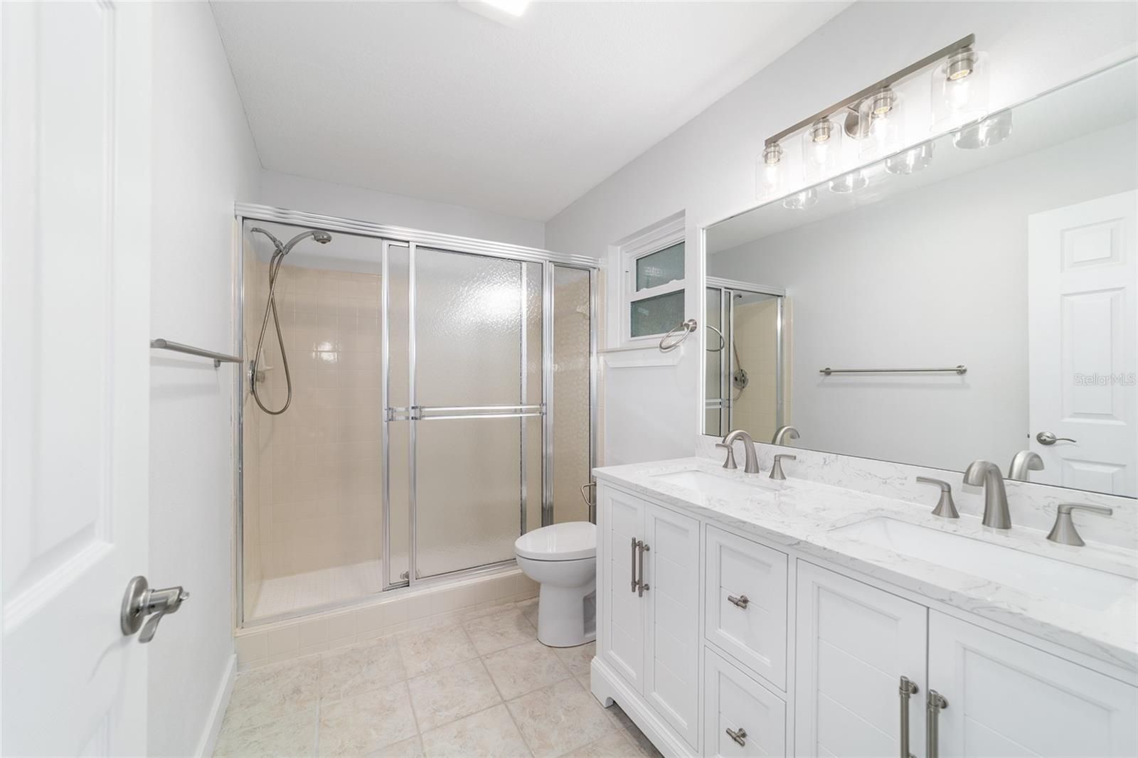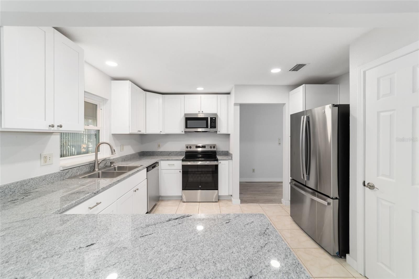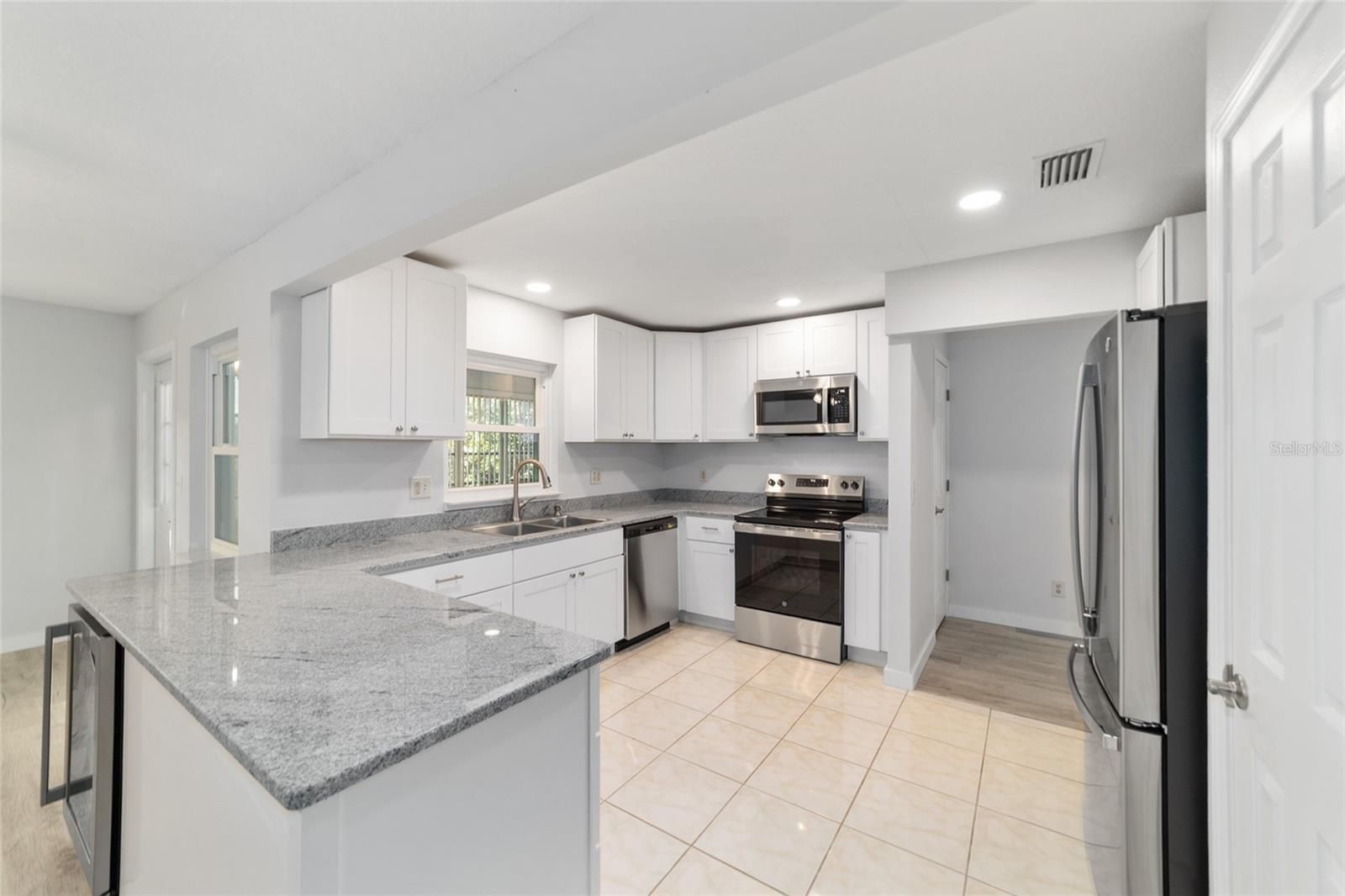 One or more photo(s) has been virtually staged. END UNIT: This remodeled and upgraded 2-bedroom, 2-bathroom, 2 car garage Montgomery is located on a tree lined street in On Top of the World. The kitchen is ABSOLUTELY stunning and has been updated with all new cabinets, counters, quartz counters, and new stainless-steel appliances-including a beverage fridge. Don’t settle for refaced cabinets when these white cabinets are all new with dovetail, soft close features. Plus, the kitchen has been bumped out for additional space. The spacious main bedroom easily accommodates a king size bed and features a large walk-in closet as well as an ensuite bathroom that has been fully updated with quartz counters, DOUBLE sinks, new cabinets, and new toilet. The large secondary bedroom can also accommodate a king size bed and the secondary bathroom is impressively updated as well. For peace of mind, the home has a newer roof (2017), new windows (2025), and offers a 2 YEAR HOME WARRANTY! Luxury vinyl plank floors throughout, new baseboards, new doors, new, hardware, new recessed lighting, new paint, and NO POPCORN CEILINGS are just some of the additional upgrades. This home has impeccable curb appeal with healthy sod and a painted driveway and front porch. On Top of the World is Ocala’s premier 55+ golf resort community offering an array of amenities and golf cart access to nearby shopping, dining, banking, health, and beauty.
