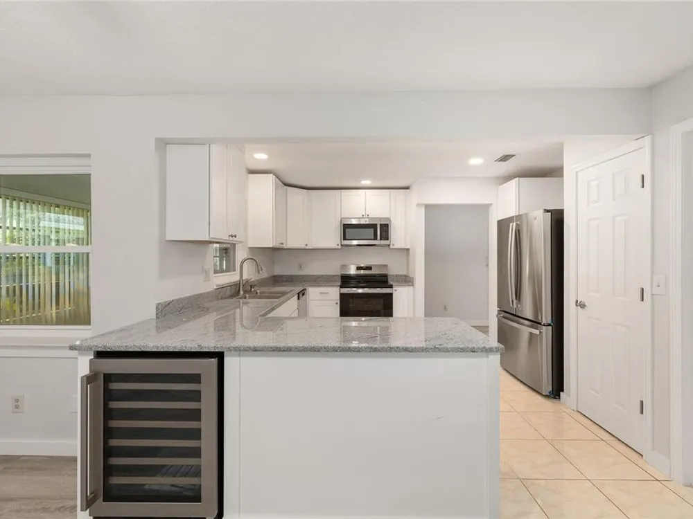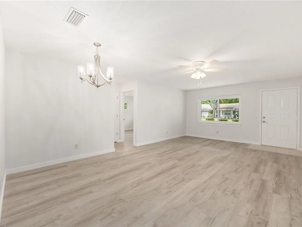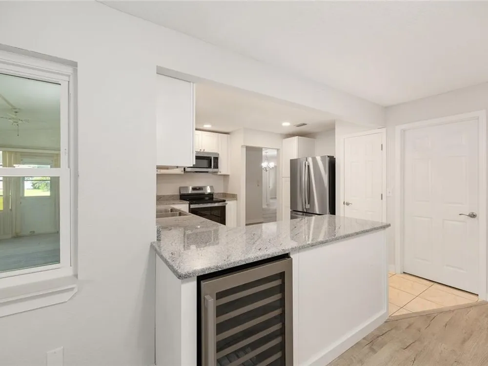 Welcome to this completely upgraded and remodeled end unit Montgomery Model home located on a quiet tree-lined street in the Friendship Village area of On Top of the World. This gorgeous 2-bedroom, 2-bathroom, 2-car garage home has been renovated with Luxury Vinyl Plank throughout, new recessed lighting and fans. This kitchen features brand new white cabinetry, granite countertops, wine refrigerator and new stainless-steel appliances. The large family room is located next to the kitchen which is perfect for entertaining. Popcorn ceilings have been removed and the whole house has been freshly painted. Bathrooms have been updated with new vanities with quartz countertops to include a double vanity in the Master Bathroom, lighting and mirrors. Step-in shower enclosure in primary. This home also features brand new windows! Roof was done in 2017. This beautiful home also features an enclosed lanai so you can enjoy the beautiful Florida weather year-round. Call and schedule your private showing today! On Top of the World is Ocala's premier, gated, active 55+ community, loaded with amenities and includes golf cart access to three shopping centers.