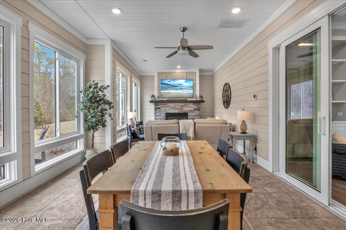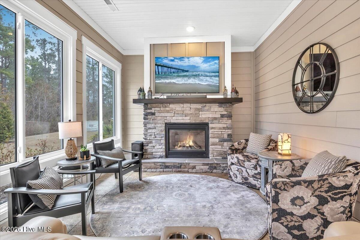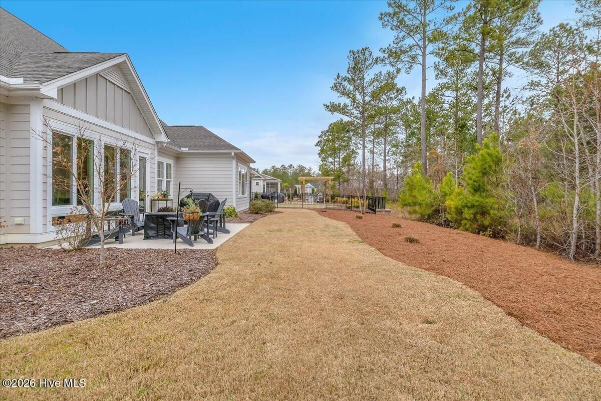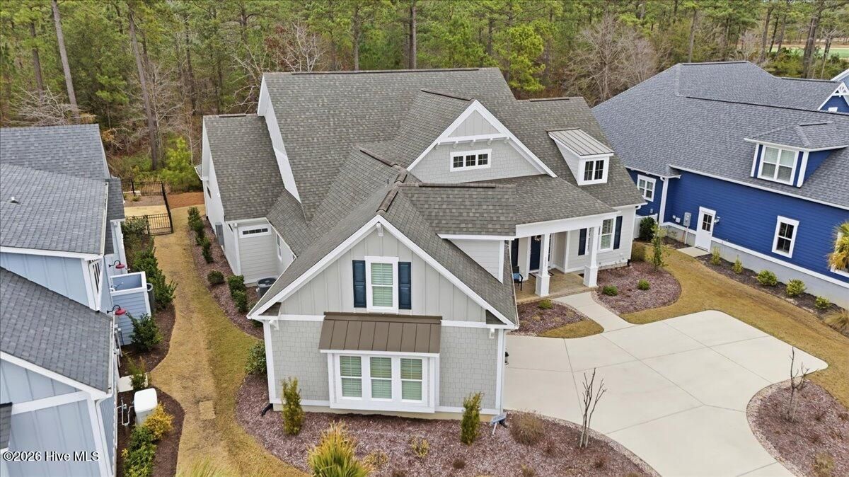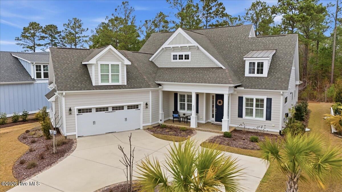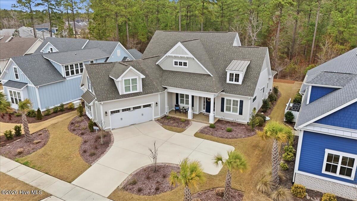 Welcome to resort-style living in the highly desirable Timber Ridge community of Compass Pointe. Nestled on a quiet street with a peaceful nature preserve homesite, this beautifully upgraded Kent Homes Jonesport model offers approximately 3,276 square feet of thoughtfully designed living space. This 4-bedroom, 3.5-bath residence includes a private office and a finished room over the garage, offering flexibility for guests, hobbies, or additional living space. The inviting covered front porch and attractive elevation create immediate curb appeal. Inside, the open-concept design is ideal for both everyday living and entertaining. A welcoming foyer leads to a private office with French doors and opens into the spacious living area, kitchen, and dining space. The beautifully expanded all-season sunroom quickly becomes the favorite gathering spot, featuring a stunning stone fireplace and tranquil views of the surrounding nature preserve. The split-bedroom floor plan offers privacy for both owners and guests. The spacious primary suite includes custom walk-in closet built-ins and a spa-like bath with dual vanities, a tiled walk-in shower, and a private water closet. Two additional bedrooms, a stylish guest bath, powder room, and a finished bonus room with full bath above the garage provide ample space for family and visitors. The home showcases numerous upgrades including luxury vinyl plank flooring throughout, quartz countertops, an oversized island, soft-close cabinetry, stainless steel appliances with a 5-burner gas range, coffered ceilings, crown molding, pocket doors, and plantation shutters throughout. A glass-enclosed lanai with its own HVAC zone provides comfortable year-round living, while additional features include a Rinnai tankless water heater with recirculating pump, sound-insulated guest areas, and a spacious laundry room with cabinetry and sink. Residents enjoy world-class amenities including the Grand Lanai clubhouse, indoor and outdoor pools, lazy river, fitness center, tennis and pickleball courts, walking and biking trails, on-site dining, and access to the Rick Robbins championship golf course. Experience privacy, luxury, and the unmatched coastal lifestyle that makes Compass Pointe one of the Wilmington area's most sought-after communities.