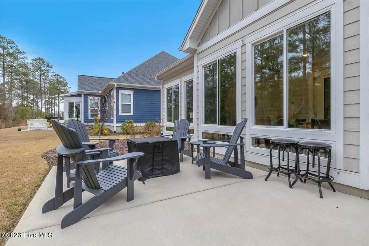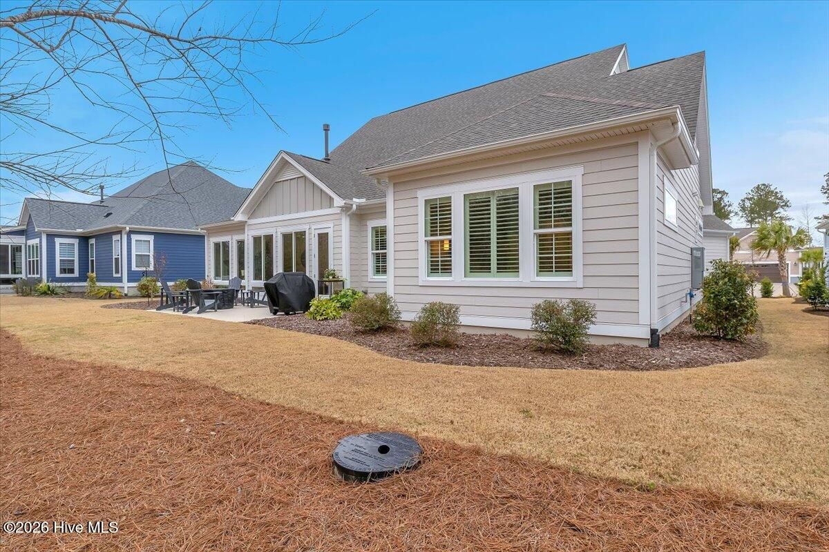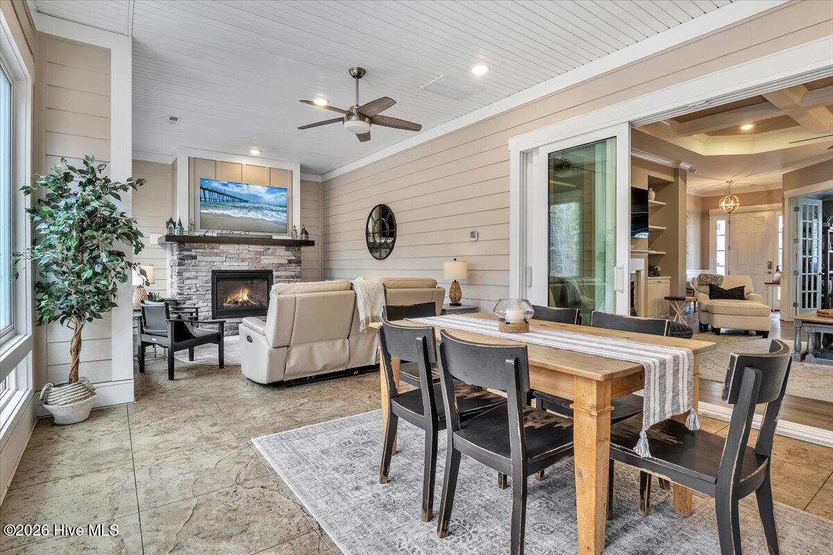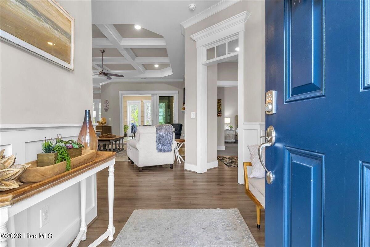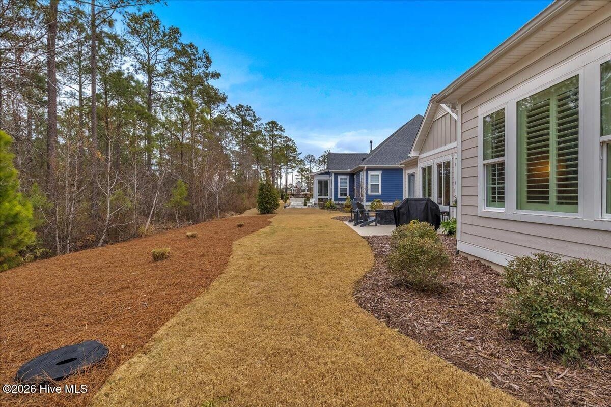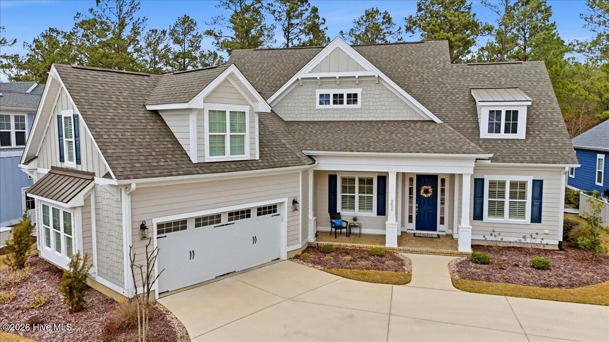 Welcome to resort-style living in the highly desirable Timber Ridge community of Compass Pointe. Nestled on a quiet street with a peaceful nature preserve homesite, this beautifully upgraded Kent Homes Jonesport model offers approximately 3,276 square feet of thoughtfully designed living space. This 4-bedroom, 3.5-bath residence includes a private office and a finished room over the garage, offering flexibility for guests, hobbies, or additional living space. The inviting covered front porch and attractive elevation create immediate curb appeal. Inside, the open-concept design is ideal for both everyday living and entertaining. A welcoming foyer leads to a private office with French doors and opens into the spacious living area, kitchen, and dining space. The beautifully expanded all-season sunroom quickly becomes the favorite gathering spot, featuring a stunning stone fireplace and tranquil views of the surrounding nature preserve. The split-bedroom floor plan offers privacy for both owners and guests. The spacious primary suite includes custom walk-in closet built-ins and a spa-like bath with dual vanities, a tiled walk-in shower, and a private water closet. Two additional bedrooms, a stylish guest bath, powder room, and a finished bonus room with full bath above the garage provide ample space for family and visitors. The home showcases numerous upgrades including luxury vinyl plank flooring throughout, quartz countertops, an oversized island, soft-close cabinetry, stainless steel appliances with a 5-burner gas range, coffered ceilings, crown molding, pocket doors, and plantation shutters throughout. A glass-enclosed lanai with its own HVAC zone provides comfortable year-round living, while additional features include a Rinnai tankless water heater with recirculating pump, sound-insulated guest areas, and a spacious laundry room with cabinetry and sink. Residents enjoy world-class amenities including the Grand Lanai clubhouse, indoor and outdoor pools, lazy river, fitness center, tennis and pickleball courts, walking and biking trails, on-site dining, and access to the Rick Robbins championship golf course. Experience privacy, luxury, and the unmatched coastal lifestyle that makes Compass Pointe one of the Wilmington area's most sought-after communities.