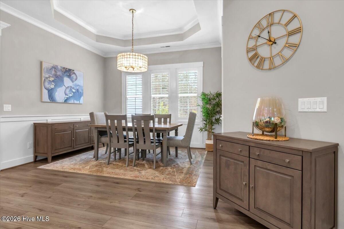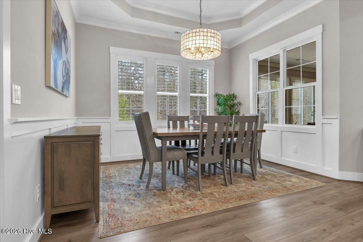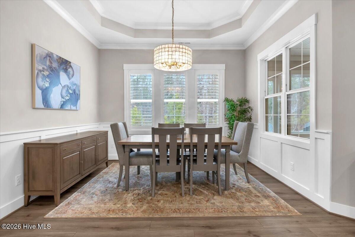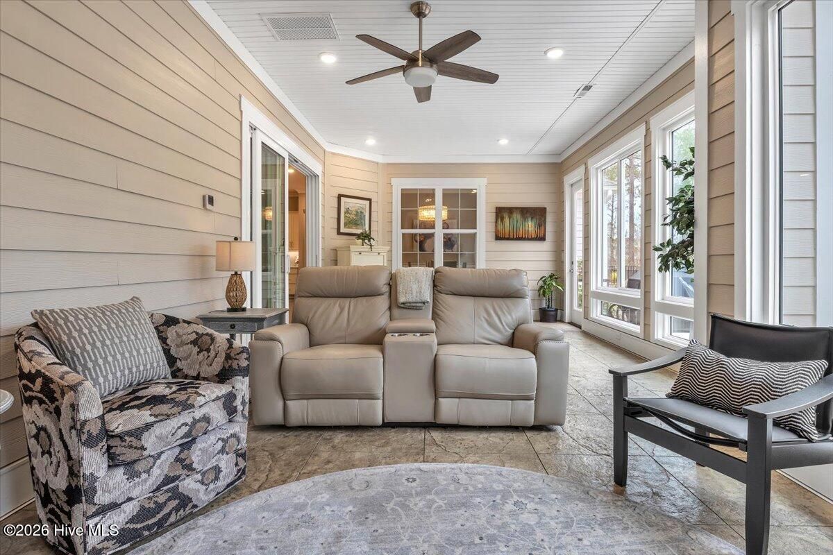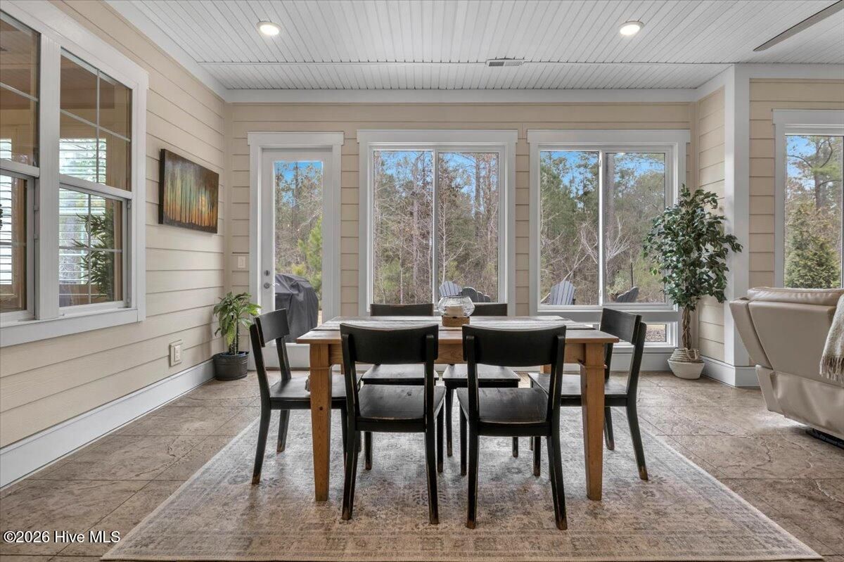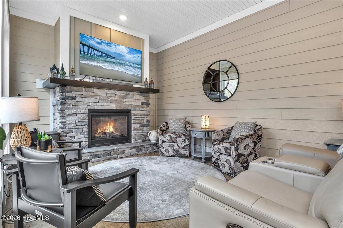 Welcome to resort-style living in the highly desirable Timber Ridge community of Compass Pointe. Nestled on a quiet street with a peaceful nature preserve homesite, this beautifully upgraded Kent Homes Jonesport model offers approximately 3,276 square feet of thoughtfully designed living space. This 4-bedroom, 3.5-bath residence includes a private office and a finished room over the garage, offering flexibility for guests, hobbies, or additional living space. The inviting covered front porch and attractive elevation create immediate curb appeal. Inside, the open-concept design is ideal for both everyday living and entertaining. A welcoming foyer leads to a private office with French doors and opens into the spacious living area, kitchen, and dining space. The beautifully expanded all-season sunroom quickly becomes the favorite gathering spot, featuring a stunning stone fireplace and tranquil views of the surrounding nature preserve. The split-bedroom floor plan offers privacy for both owners and guests. The spacious primary suite includes custom walk-in closet built-ins and a spa-like bath with dual vanities, a tiled walk-in shower, and a private water closet. Two additional bedrooms, a stylish guest bath, powder room, and a finished bonus room with full bath above the garage provide ample space for family and visitors. The home showcases numerous upgrades including luxury vinyl plank flooring throughout, quartz countertops, an oversized island, soft-close cabinetry, stainless steel appliances with a 5-burner gas range, coffered ceilings, crown molding, pocket doors, and plantation shutters throughout. A glass-enclosed lanai with its own HVAC zone provides comfortable year-round living, while additional features include a Rinnai tankless water heater with recirculating pump, sound-insulated guest areas, and a spacious laundry room with cabinetry and sink. Residents enjoy world-class amenities including the Grand Lanai clubhouse, indoor and outdoor pools, lazy river, fitness center, tennis and pickleball courts, walking and biking trails, on-site dining, and access to the Rick Robbins championship golf course. Experience privacy, luxury, and the unmatched coastal lifestyle that makes Compass Pointe one of the Wilmington area's most sought-after communities.