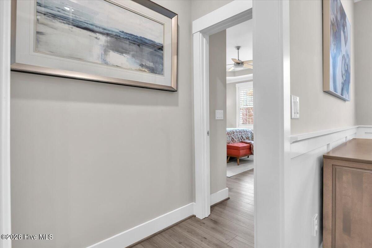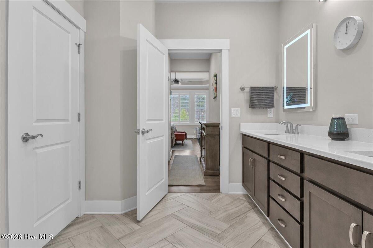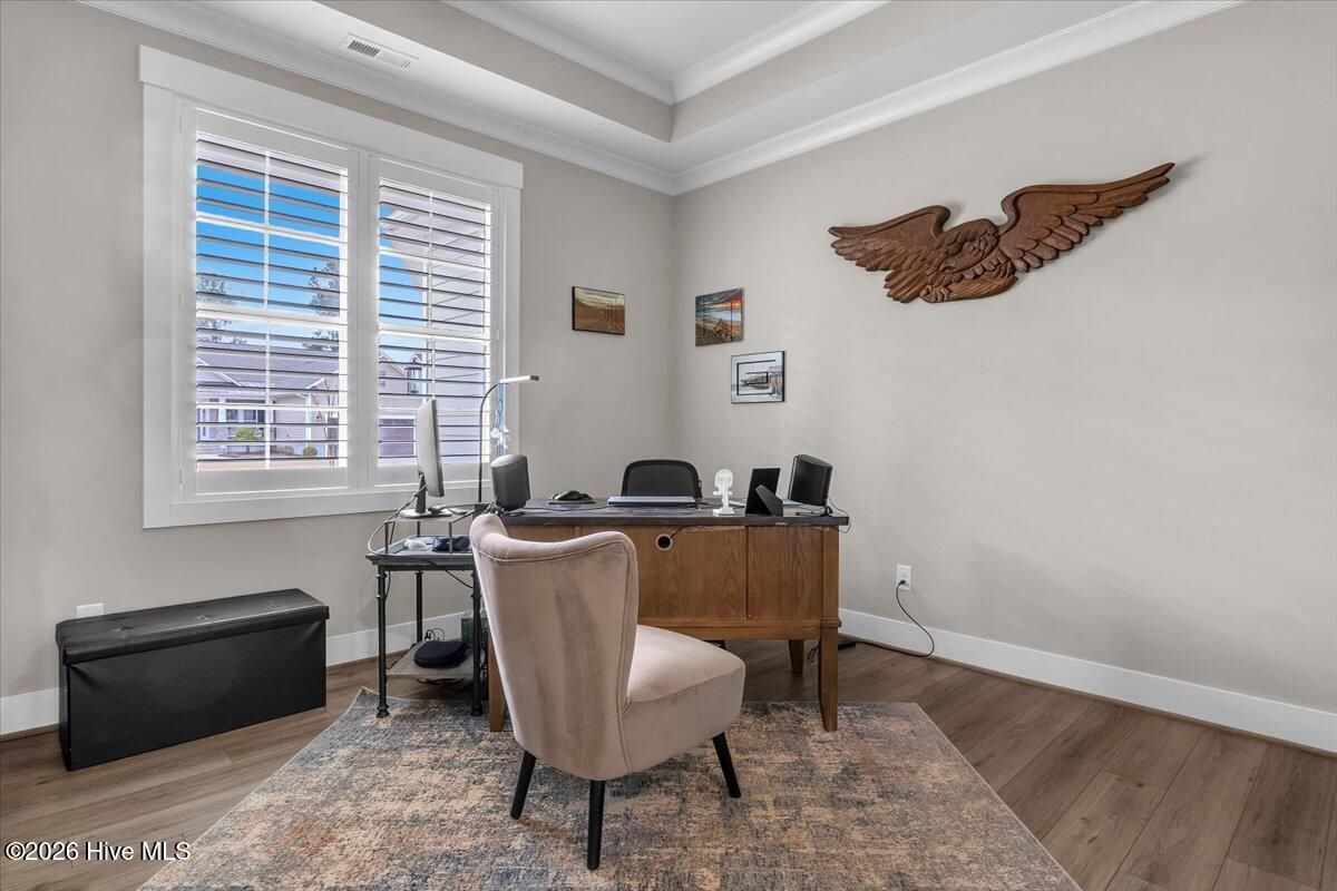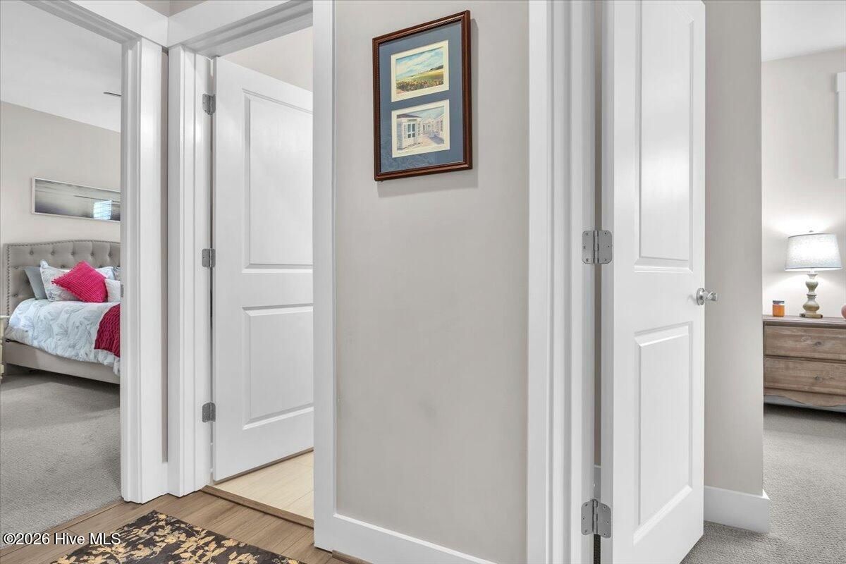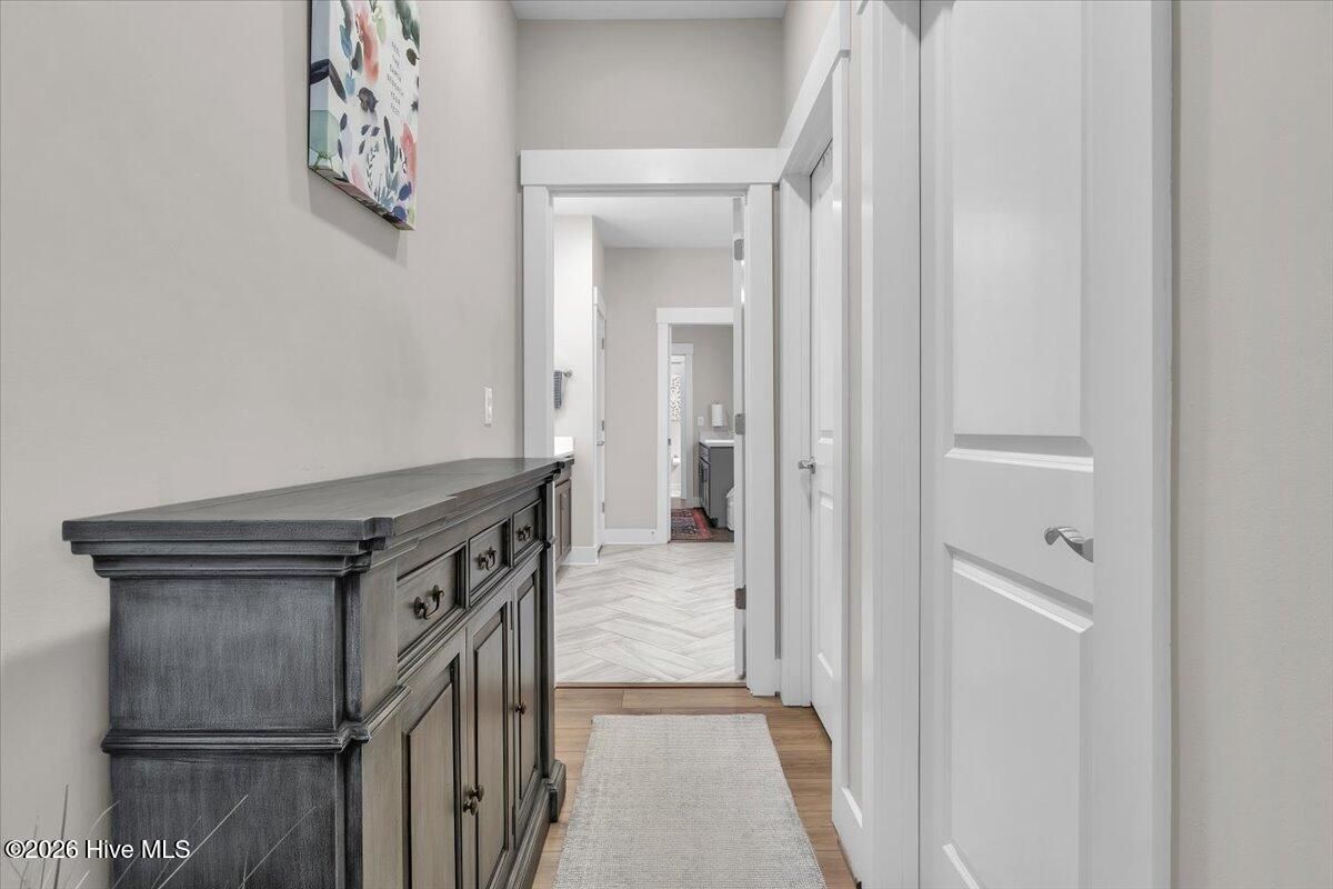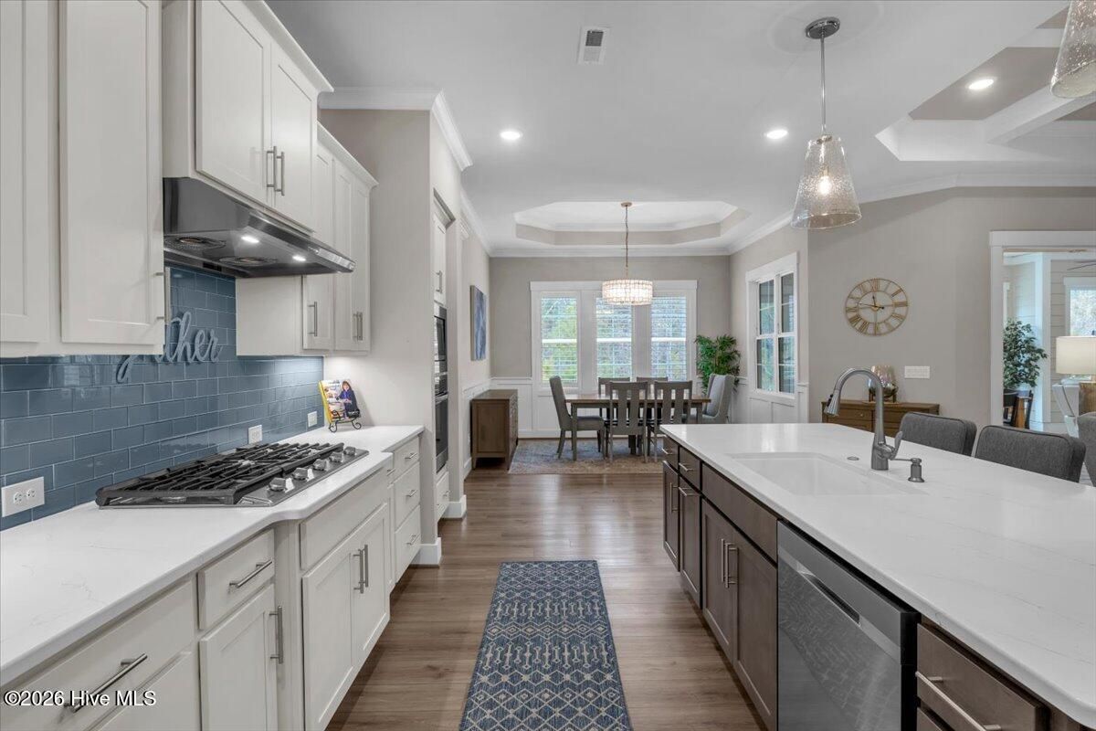 Welcome to resort-style living in the highly desirable Timber Ridge community of Compass Pointe. Nestled on a quiet street with a peaceful nature preserve homesite, this beautifully upgraded Kent Homes Jonesport model offers approximately 3,276 square feet of thoughtfully designed living space. This 4-bedroom, 3.5-bath residence includes a private office and a finished room over the garage, offering flexibility for guests, hobbies, or additional living space. The inviting covered front porch and attractive elevation create immediate curb appeal. Inside, the open-concept design is ideal for both everyday living and entertaining. A welcoming foyer leads to a private office with French doors and opens into the spacious living area, kitchen, and dining space. The beautifully expanded all-season sunroom quickly becomes the favorite gathering spot, featuring a stunning stone fireplace and tranquil views of the surrounding nature preserve. The split-bedroom floor plan offers privacy for both owners and guests. The spacious primary suite includes custom walk-in closet built-ins and a spa-like bath with dual vanities, a tiled walk-in shower, and a private water closet. Two additional bedrooms, a stylish guest bath, powder room, and a finished bonus room with full bath above the garage provide ample space for family and visitors. The home showcases numerous upgrades including luxury vinyl plank flooring throughout, quartz countertops, an oversized island, soft-close cabinetry, stainless steel appliances with a 5-burner gas range, coffered ceilings, crown molding, pocket doors, and plantation shutters throughout. A glass-enclosed lanai with its own HVAC zone provides comfortable year-round living, while additional features include a Rinnai tankless water heater with recirculating pump, sound-insulated guest areas, and a spacious laundry room with cabinetry and sink. Residents enjoy world-class amenities including the Grand Lanai clubhouse, indoor and outdoor pools, lazy river, fitness center, tennis and pickleball courts, walking and biking trails, on-site dining, and access to the Rick Robbins championship golf course. Experience privacy, luxury, and the unmatched coastal lifestyle that makes Compass Pointe one of the Wilmington area's most sought-after communities.