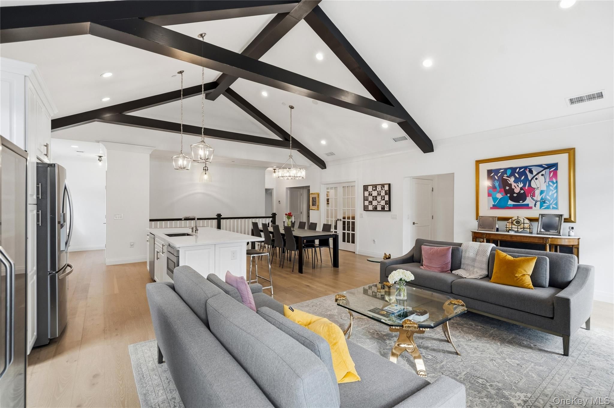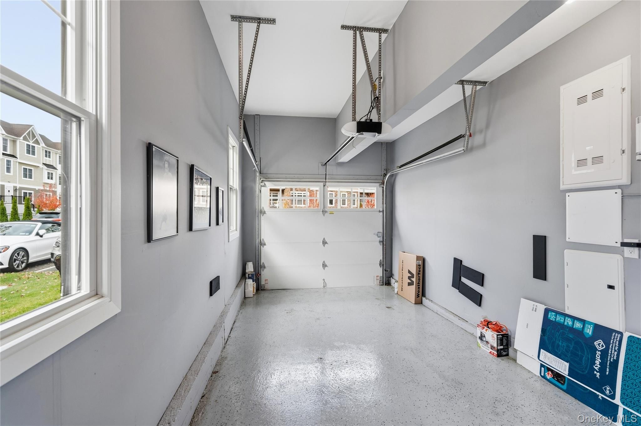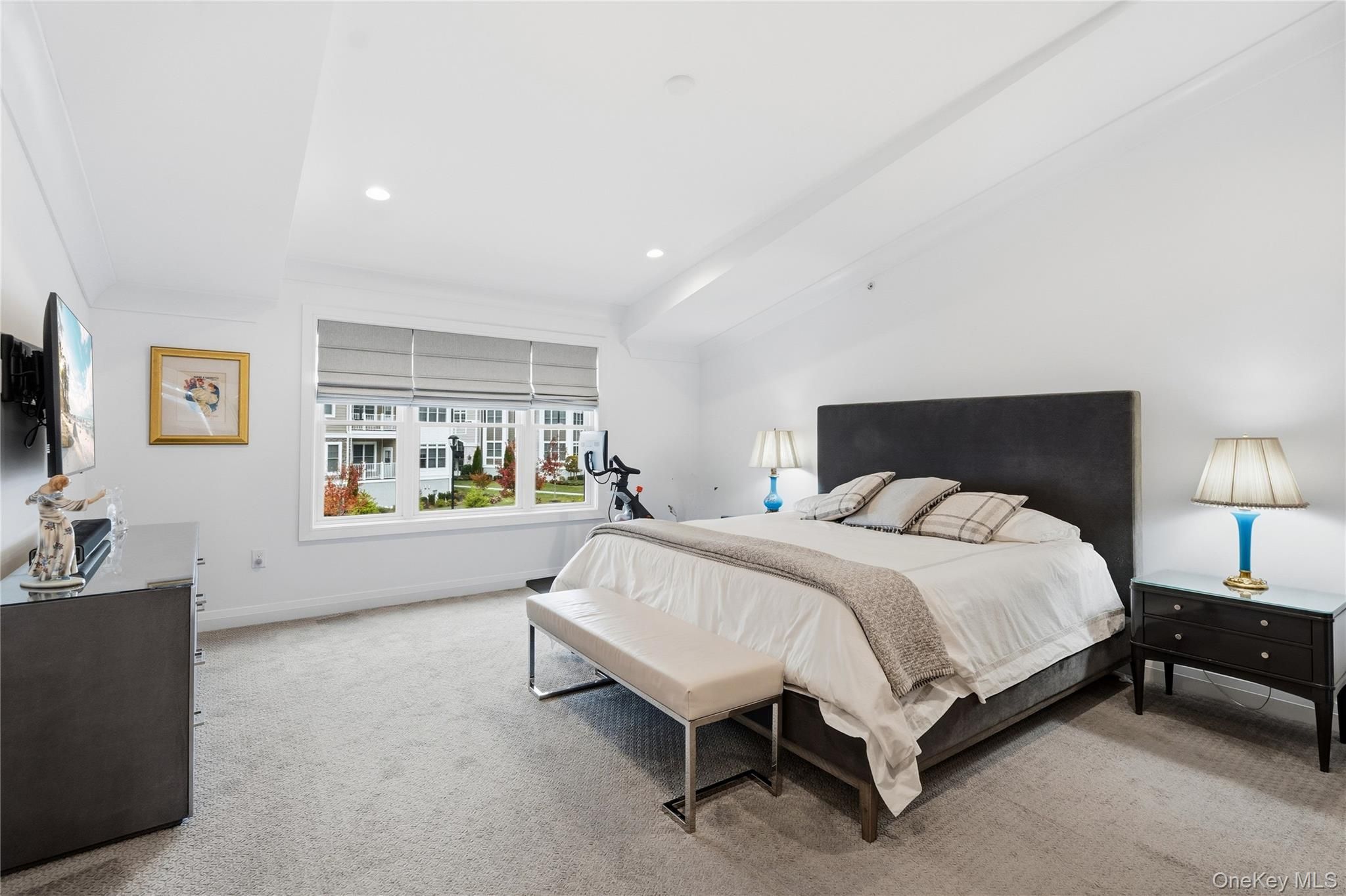 Prestigious Country Pointe Plainview Villa which is magazine worthy and customized throughout. A perfect location on the pond this desirable and sought after Georgetown model has main level living. situated in a premier gated community with an exclusive 29,000 square foot clubhouse. This model villa has a 1 car attached garage, a private elevator leading to 2 large bedrooms, bonus room (or third bedroom, office or den), custom floors, windows and moldings, a chef's kitchen with an oversized center island finished in quartz, state of the art stainless steel appliances, including microwave draw, outside exhaust, gas oven, custom cabinets to ceiling with crown molding and designer backsplash. The adjoining great room has an abundance of natural light with a gas fireplace with custom surround. and doors to oversized deck with expansive pond frontage. All of the principle rooms have double height ceilings plus architectural beams. The main level primary offers large outfitted, walk-in closets, dressing area, ensuite custom bathroom with frameless walk-in shower and double sink vanity. There is a second full bath conveniently located in the hallway. In addition, a full laundry room is on the main level with double cabinets. Highlights include: cathedral ceilings with beams, custom flooring, designer lighting fixtures, kitchen island with ample dining room side storage and window treatments, French doors, access to oversized maintenance free deck, Situated in one of Long Island's premier communities. Community features include: 24 gated manned security, clubhouse, heated pool, poolside bar, tennis, bocce and pickle ball, gym, world-class golf courses only minutes away, Country Pointe shops, EV charging station, concierge and Director of events. Perfect home with a perfect lifestyle.