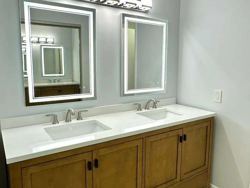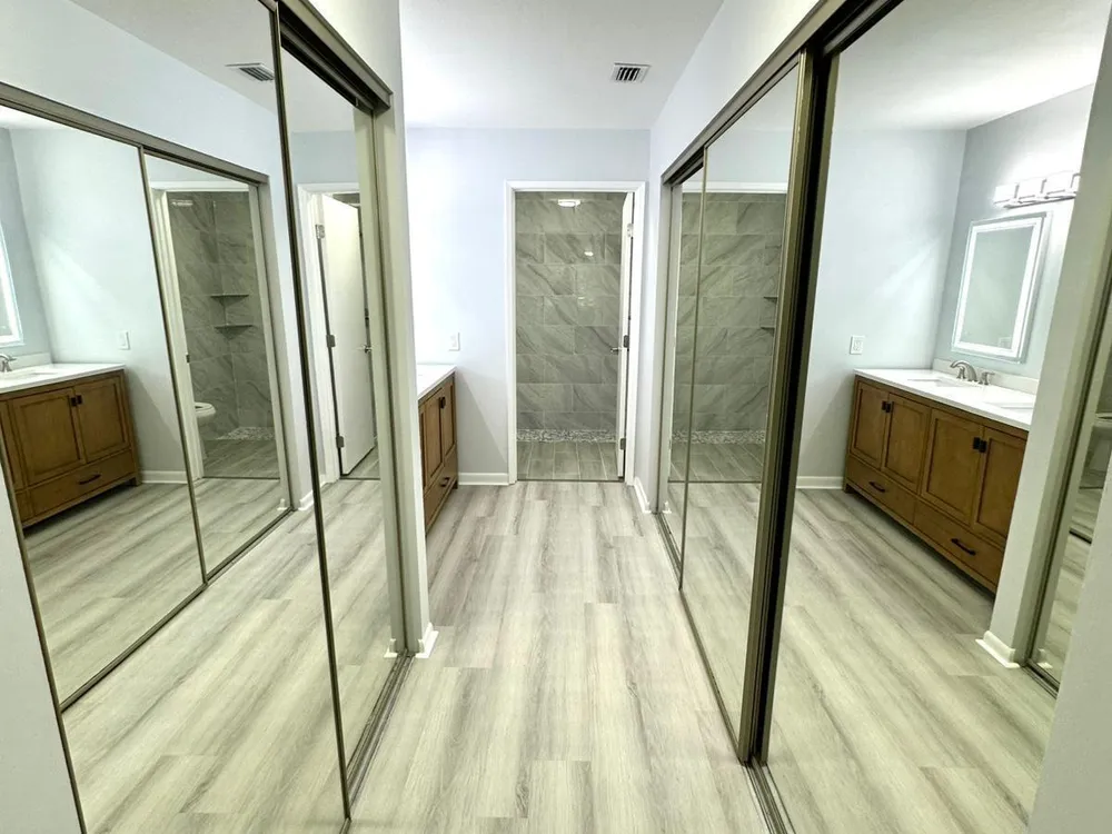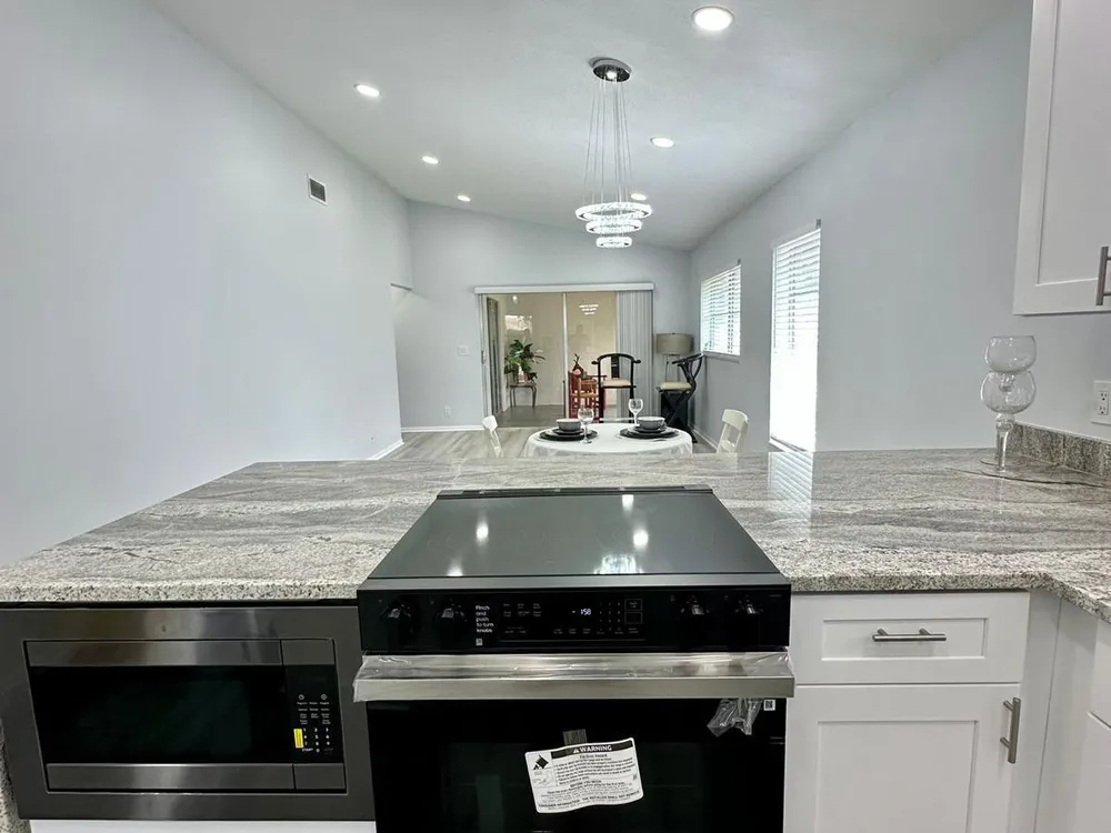 - Kitchen Island, High Ceilings, Walk-In Closet(s), Living/Dining Room, Blinds, Sliding Window(s), Dual Sinks, Primary Downstairs