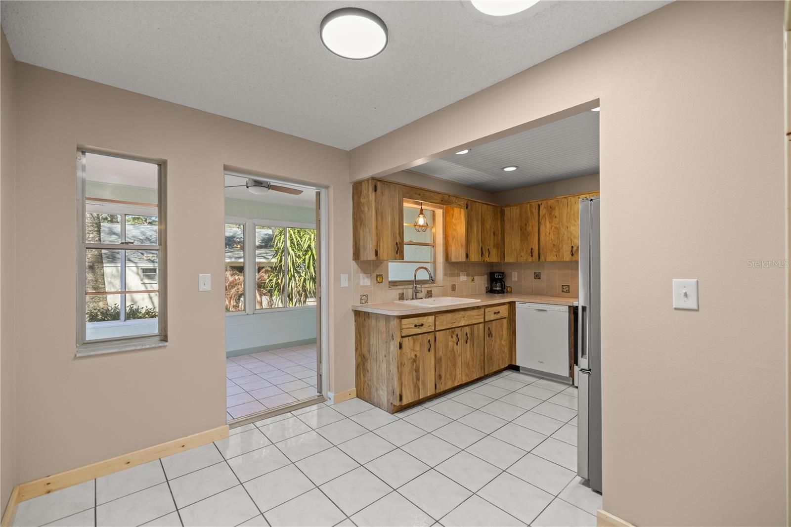 Welcome to one of the most desirable 55+ communities in Ocala, the highly sought after golf cart community of On Top of the World! Located in the Americana neighborhood, this beautifully updated end unit Philadelphian villa offers 2 bedrooms and 2 bathrooms with the perfect blend of comfort, style, and low maintenance living. The home features fresh interior paint, newly painted garage walls and floors, updated trim, real wood interior doors, modern light fixtures, and stunning Pergo TimberCraft laminate flooring throughout. The guest bathroom includes a new toilet, and the primary bedroom offers brand new closet cabinets for added storage and organization. Enjoy year round comfort in the Florida room under heat and air, along with a spacious and inviting front porch perfect for morning coffee or evening relaxation. Major updates include a 2022 HVAC system and a 2015 roof, plus a brand new washing machine and like new dryer. The monthly HOA fee includes basic Spectrum cable, irrigation water, roof maintenance and repair, exterior painting every seven years, exterior maintenance, landscaping, trash and recycling, and 24/7 guarded gates, providing true peace of mind. Residents enjoy access to top of the line amenities including multiple pools, two fitness centers, pickleball, tennis, shuffleboard, bocce ball, billiards, an archery range, over 175 clubs, a woodworking shop (additional fee), a library, and so much more. This is more than a home, it’s a lifestyle!