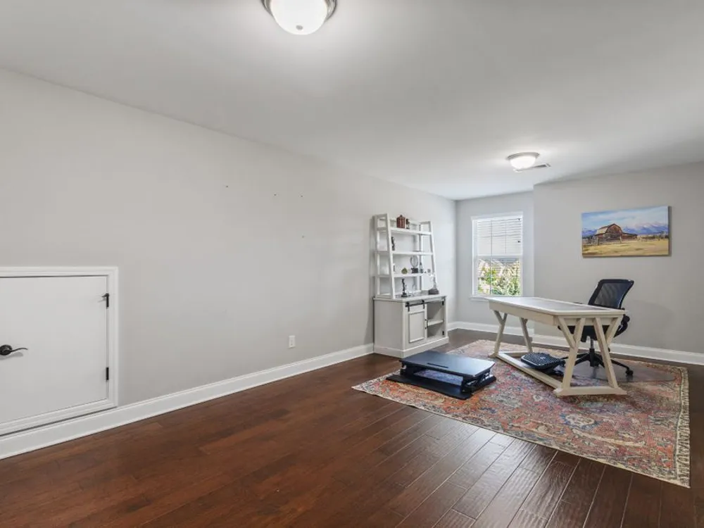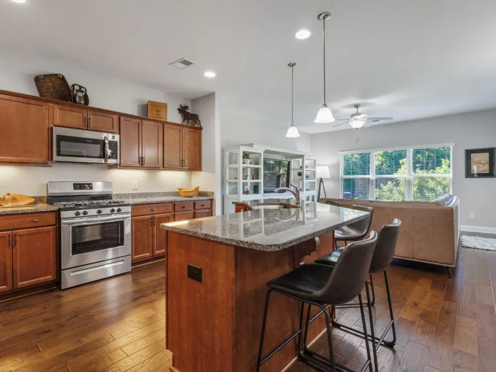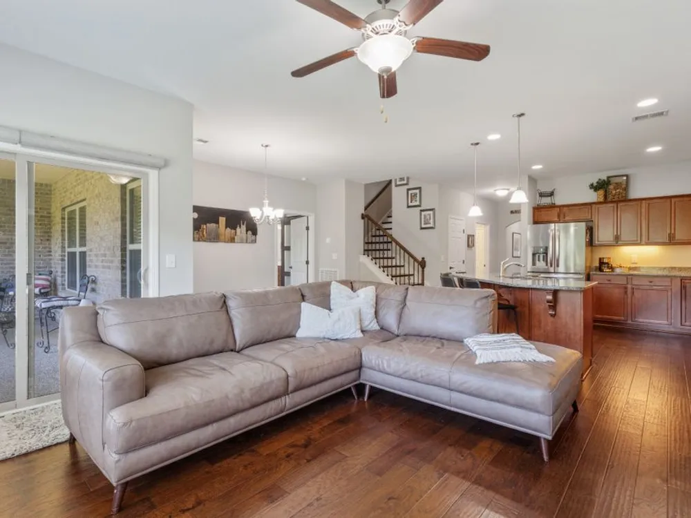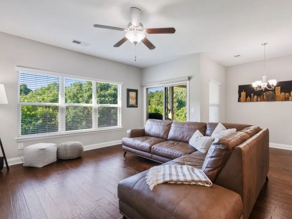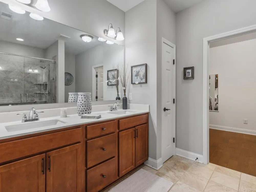 If you are looking for maintenance free living with a lot of space look no more. This lovely home boasts an open-concept layout and high-end finishes throughout, this home features rich hardwood flooring, upgraded cabinetry, and a thoughtfully designed custom pantry. The main-level primary suite is a true retreat, complete with a spa-like custom shower. A second bedroom on the main floor is perfect for guests or a home office. Upstairs, you'll find a spacious bonus room with a full bath that can serve as a third bedroom, media room plus an extra flex space for another bedroom. Two huge rooms. Lots of storage. Step outside to the covered patio, where you can unwind with peaceful wooded views and a serene pond. There's even a built-in gas line for the grill—grill stays! Enjoy the convenience of a great location paired with the upscale lifestyle this lovely neighborhood Stonebridge has to offer. This home is ready for immediate occupancy!