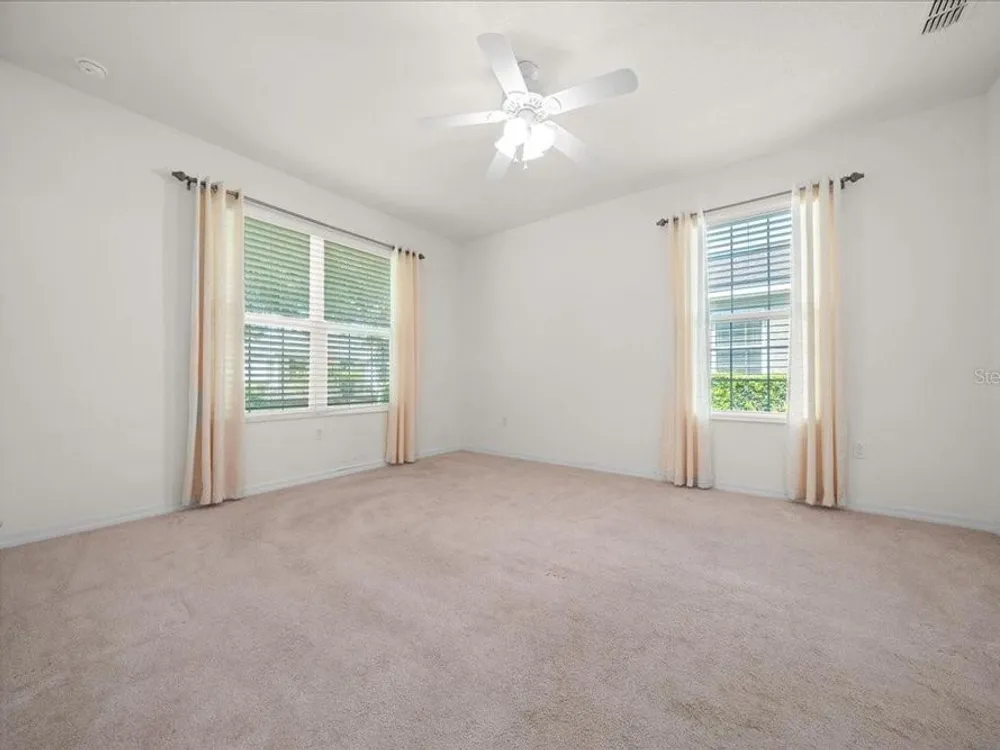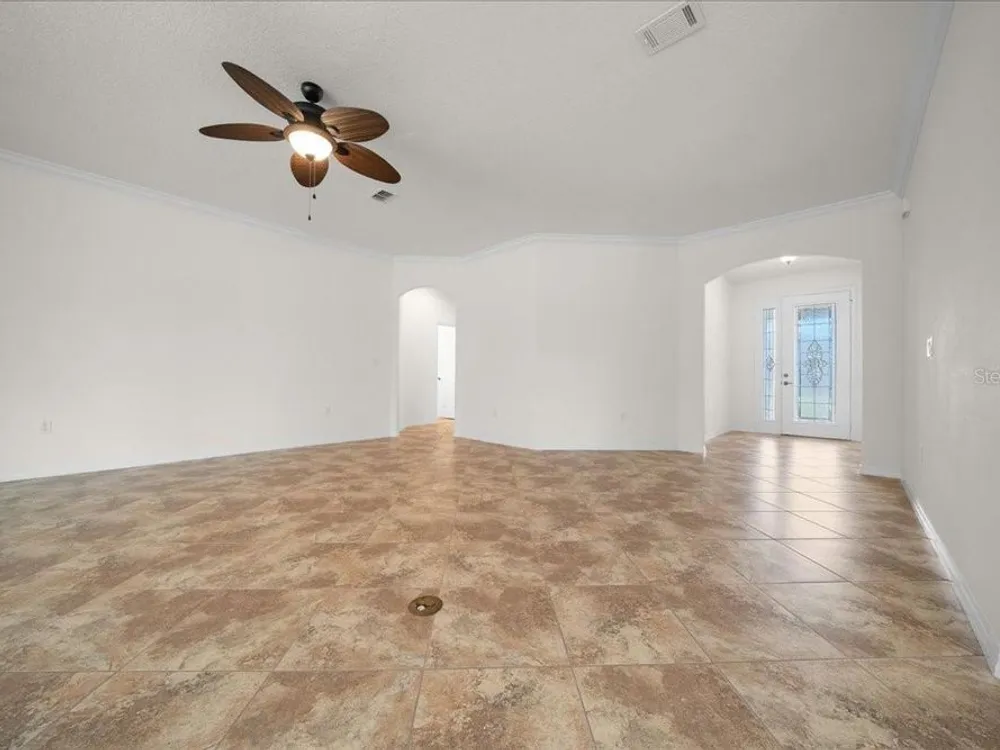 - Ceiling Fan(s), Crown Molding, High Ceilings, Living/Dining Room, Open Floorplan, Thermostat, Walk-In Closet(s), Window Treatments