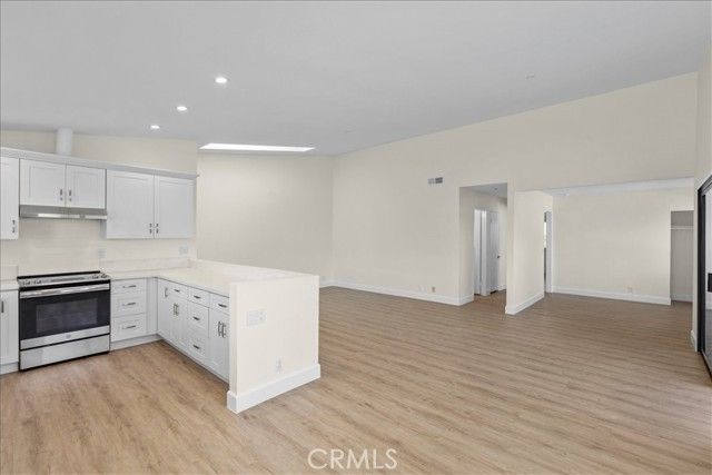Welcome to this single-level end-unit Laguna model in the vibrant 55+ community of Huntington Landmark. Recently refreshed, this home features a bright great room with vaulted ceilings, a skylight, luxury vinyl plank flooring, custom baseboards, and fresh paint. The original third bedroom has been opened to create a spacious, open-concept layout that seamlessly connects the living room, breakfast nook, built-in buffet/bar, and formal dining area. The kitchen stands out with Quartz countertops, white shaker soft-close cabinetry, stainless steel appliances, a deep stainless sink, and recessed LED lighting—all open to the living room for ease of entertaining and everyday living. Both bedrooms offer plantation shutters and ceiling fans. The primary suite includes a spacious walk-in closet and a bathroom with a skylight, dual Quartz vanities, a sit-down makeup area, and a tub/shower combo. Laundry is conveniently located in a patio closet with space for full-size appliances. A nearby single-car garage and convenient guest parking add to the home’s functionality. Huntington Landmark residents enjoy 24-hour guard-gated security, a resort-style clubhouse, pools, spa, tennis, pickleball, shuffleboard, fitness center, billiards, library, craft and game rooms, woodshop, putting green, and a wide variety of social and recreational opportunities. Ideally situated near the beach, shopping, dining, and the post office, this home offers a blend of comfort, convenience, and coastal living.