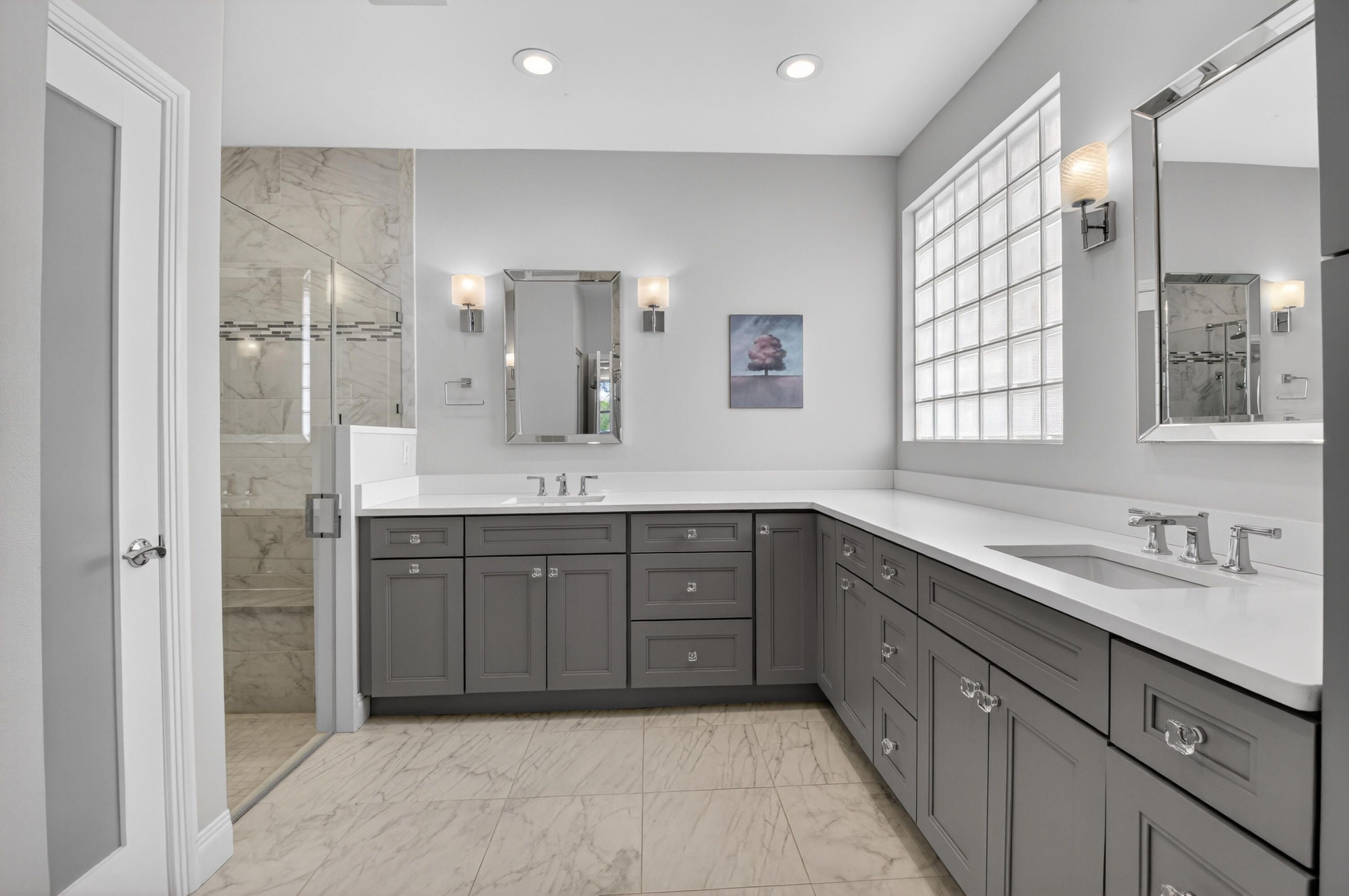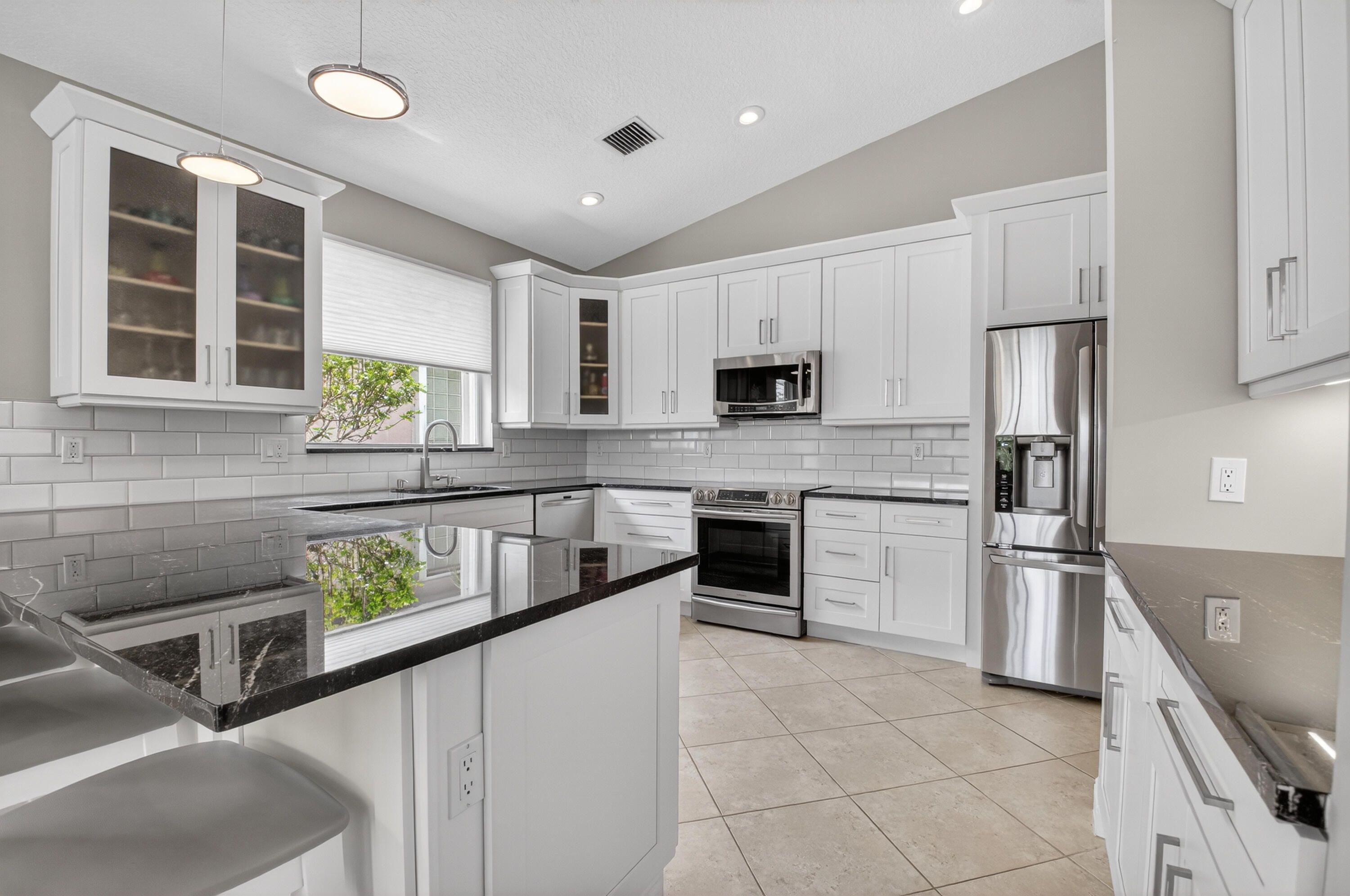 THIS HOUSE HAS IT ALL: CURB APPEAL, LOCATION & BEAUTY! ABSOLUTELY GORGEOUS PORTOFINO MODEL (GREAT ROOM CONCEPT) ON WATER THAT BACKS SHERBROOK ESTATES (A MILLION $ COMMUNITY). THIS HOUSE IS A MUST SEE! COMPLETELY UPGRADED AND READY FOR YOU TO MOVE IN! SHAKER WOOD CABINETS WITH CROWN ON TOP IN KITCHEN, UNDERMOUNT FARMER'S SINK, SUBWAY TILES, INDUCTION STOVE, LIKE NEW APPLIANCES, UNDER CABINET LIGHTING, PULL-OUT SHELVES, REMOTE LUMINETS, PLANTATION SHUTTERS, CUSTOM CLOSETS & BEAUTIFUL PORCELAIN TILE WITH MARBLE INSERTS, VINYL FLOORING IN BEDROOMS (NO CARPETING). EXTENSIVE USE OF DECORATIVE MOLDING. TILE TO CEILING IN SHOWERS & NO BATHTUB IN MASTER SUITE, WOOD CABINETS, UPGRADED LIGHTING & PLUMBING FIXTURES ALL DECORATOR QUALITY. EXTENDED COVERED/SCREENED PATIO & ADDITIONAL OUTSIDE PATIO. SCREENED ENTRY. OUTSIDE JUST PAINTED, PROFESSIONALLY LANDSCAPED. EPOXY FLOOR IN GARAGE. ACCORDION HURRICANE SHUTTERS, & GUTTERS/LEADERS. COME JOIN THE VERY ACTIVE VILLAGGIO LIFESTYLE: 2 CLUBHOUSES (SOCIAL/ATHLETIC), 2 POOLS (INDOOR/OUTDOOR), CAFE, FULL-SERVICE SALON, PICKLEBALL, TENNIS, BOCCE, PING PONG, RACQUETBALL, SHOW SERIES, CARDS & EXERCISE CLASSES 6 DAYS A WEEK AT NO ADDITIONAL CHARGE. A VERY WARM & WELCOMING COMMUNITY.