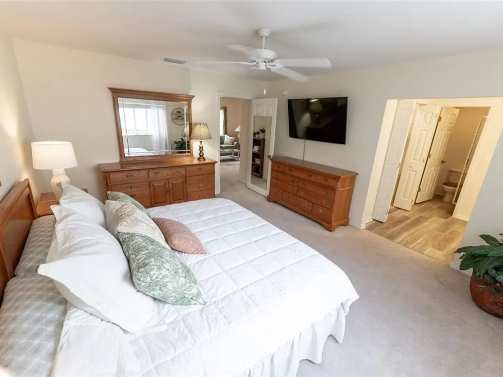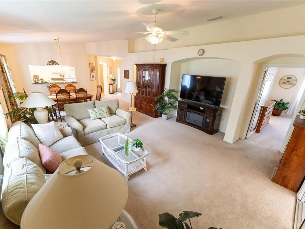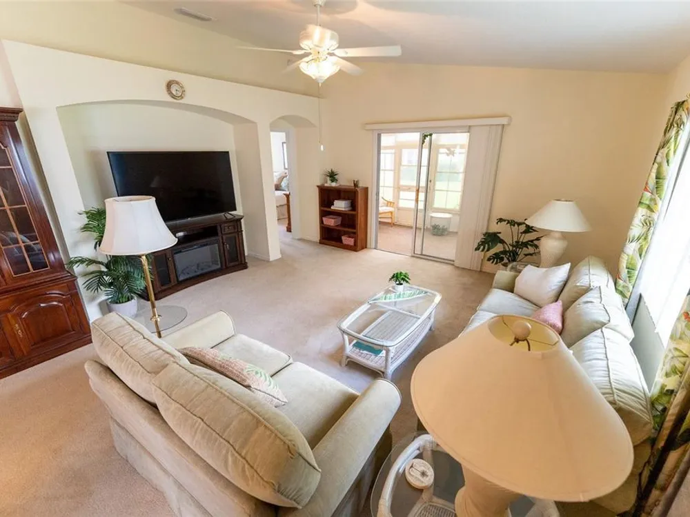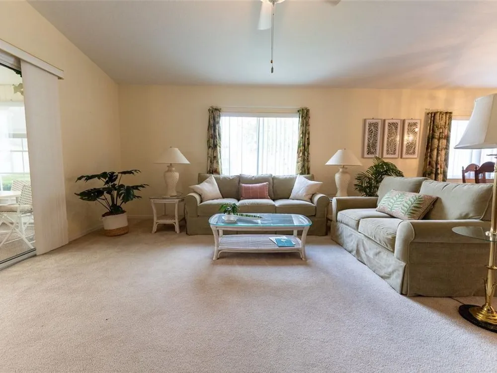 This Cypress II Villa offers 2 bedrooms, 2 bathrooms, 1,356 sq ft of living space, and a two-car garage on a desirable lot within Del Webb’s Spruce Creek Golf & Country Club. Features include, tile backsplash in the kitchen, large walk-in closet, an enclosed lanai, and a laundry area in garage. The HOA fee covers lawn care, weeding, trimming, and irrigation. Enjoy access to over 70 clubs, three pools and spas (including indoor and outdoor options), fitness center, tennis, pickleball, golf, dining at Liberty Grille, and more. Located near The Villages with convenient shopping, restaurants, and medical facilities. Move-in ready and perfect as a primary residence, seasonal home, or investment opportunity—schedule your showing today!