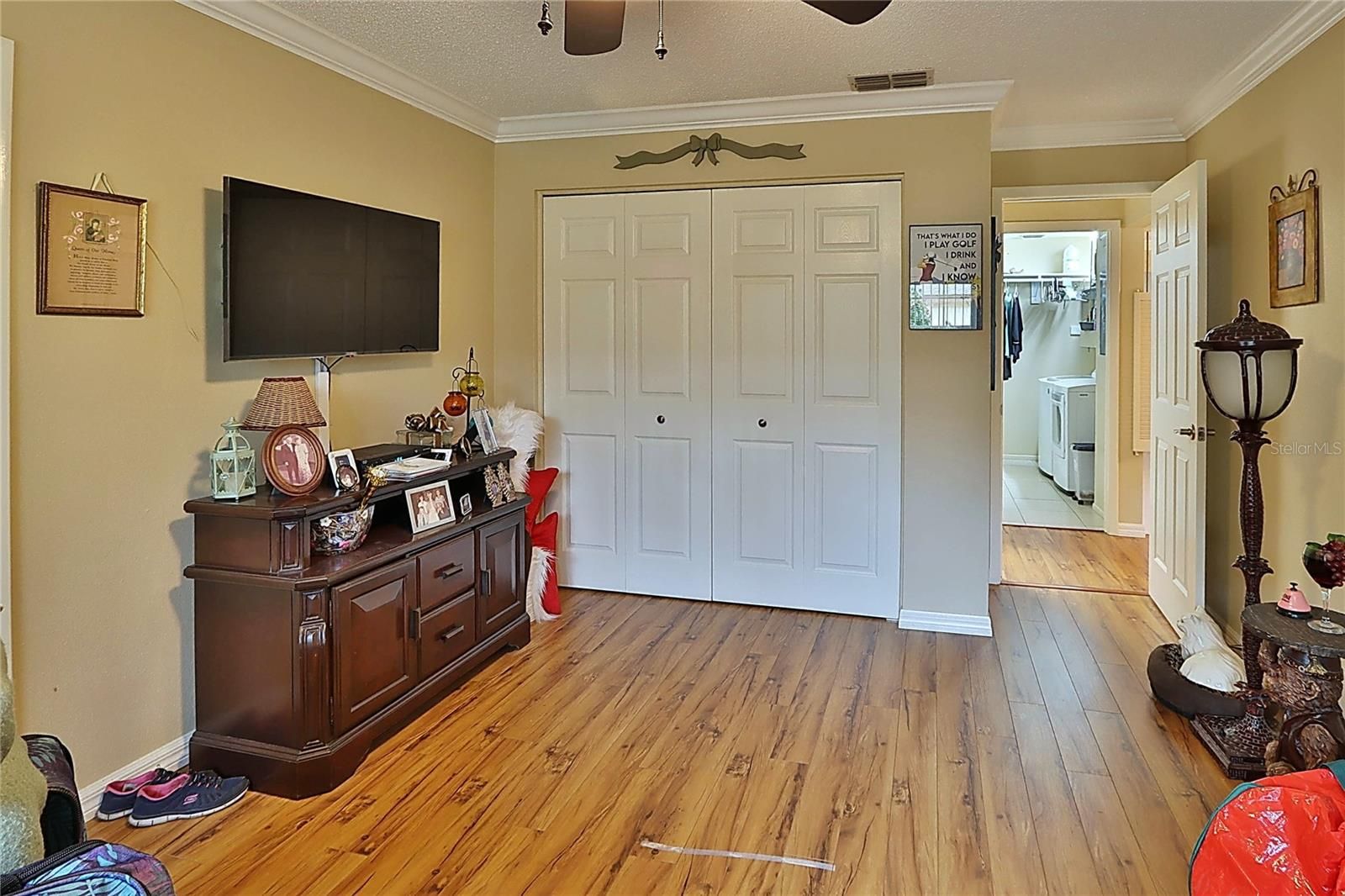 - Ceiling Fan(s), Crown Molding, High Ceilings, Living/Dining Room, Open Floorplan, Main Level Primary, Solid Surface Counters, Split Bedrooms, Thermostat, Vaulted Ceiling(s), Walk-In Closet(s), Window Treatments