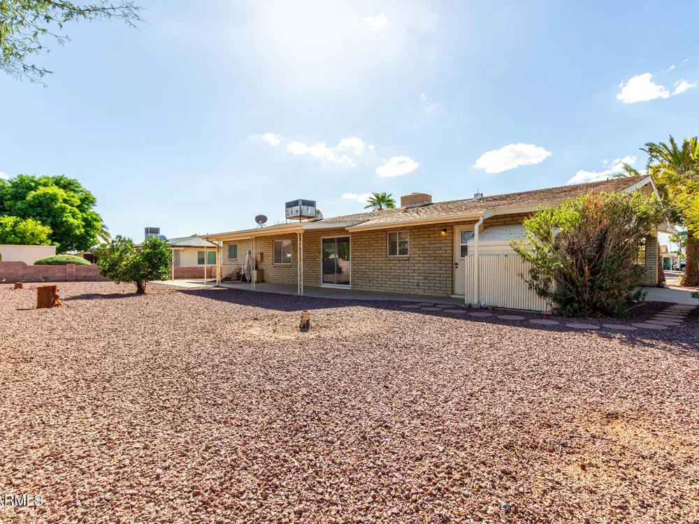 Welcome to your new home in Dreamland Villa 55+! Your charming 2-bed, 2-bath retreat sits on a desirable corner lot & offers a perfect blend of space & opportunity. Step inside to an open & spacious living room w/feature fireplace open design w/possibility to move in and design as you go. The bright kitchen features recessed lighting, generous cabinetry, & includes appliances for effortless living. Large private ensuite bedroom, convenient laundry with storage, and covered patio make daily life easy. With solid bones, great flow, and a low-maintenance yard, this is your chance to add your personal touch. No HOA and you can join Dreamland Villa for pools, pickleball, fitness, and ENDLESS activities when you choose! Known for its friendly, connected lifestyle. an active 55+ community with an optional membership giving access to multiple pools, spas, fitness center, pickleball, woodworking, ceramics, and more at Read and Farnsworth Halls. Enjoy the best of both worlds: a quiet, established neighborhood with no monthly HOA, yet all the recreation you could want nearby. This home offers solid structure and easy living with a functional layout, comfortable living spaces, generous bedrooms, and a covered patio ideal for relaxing or entertaining. The corner lot provides added privacy, space for gardening or hobbies, and a bright, open feel. Located minutes from shopping, dining, golf, and the 202 and US-60, this home offers unbeatable value and potential. Whether you're seeking a winter getaway or a full-time residence to make your own, this one checks all the boxespriced right, easy to personalize, and ready to welcome you home. Property being sold AS IS