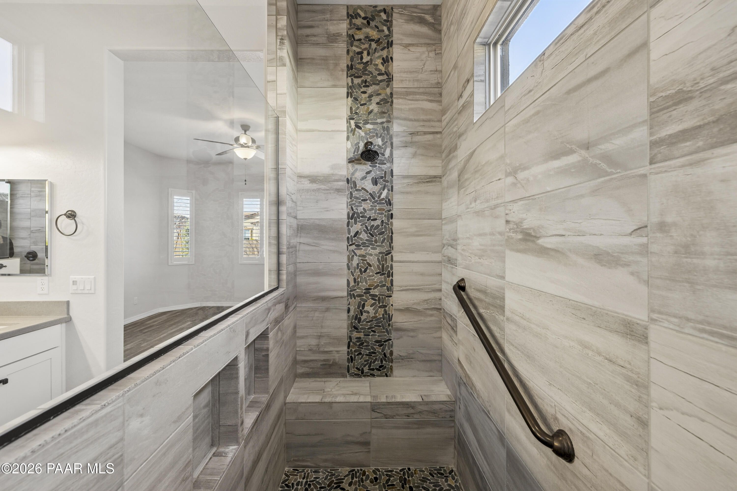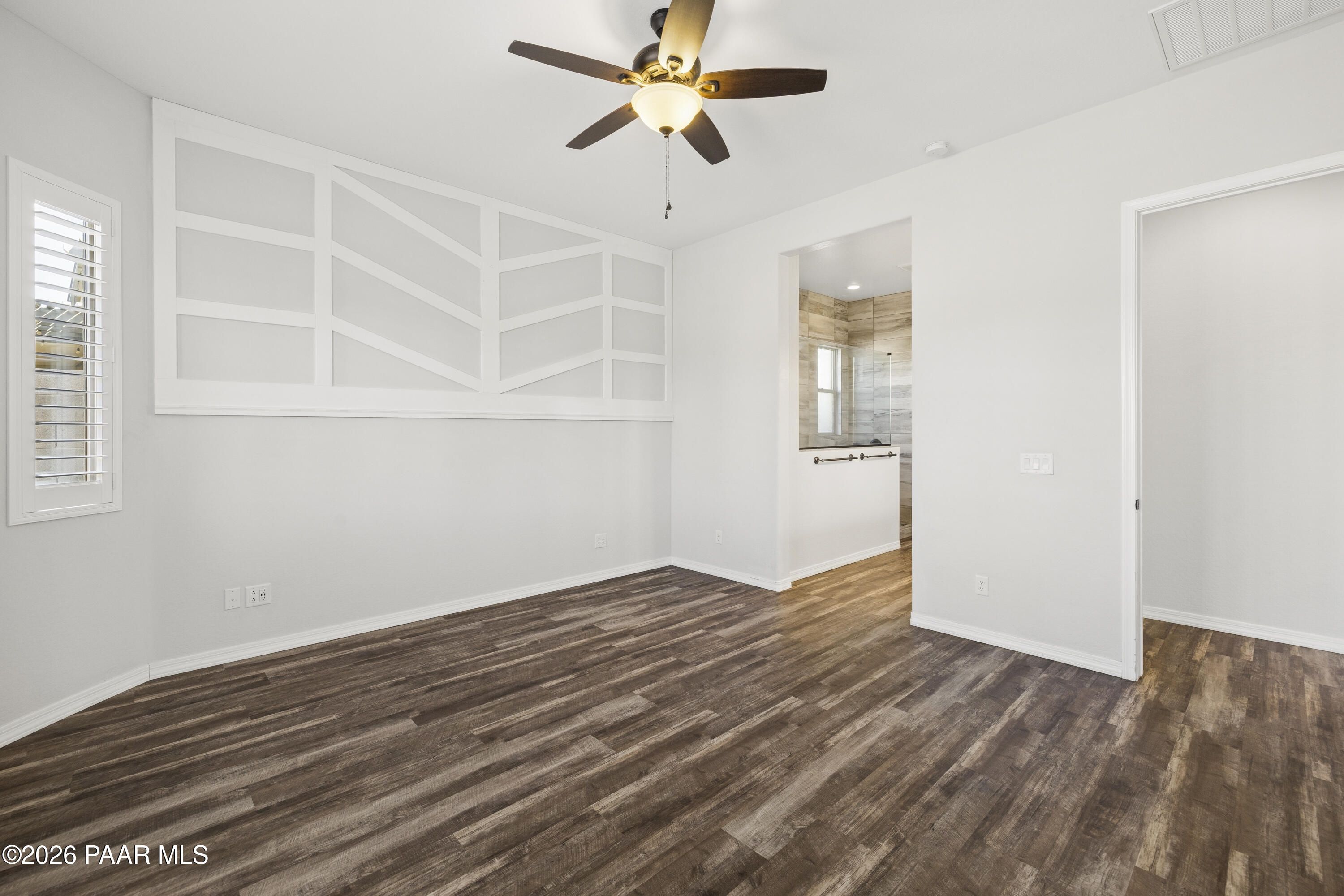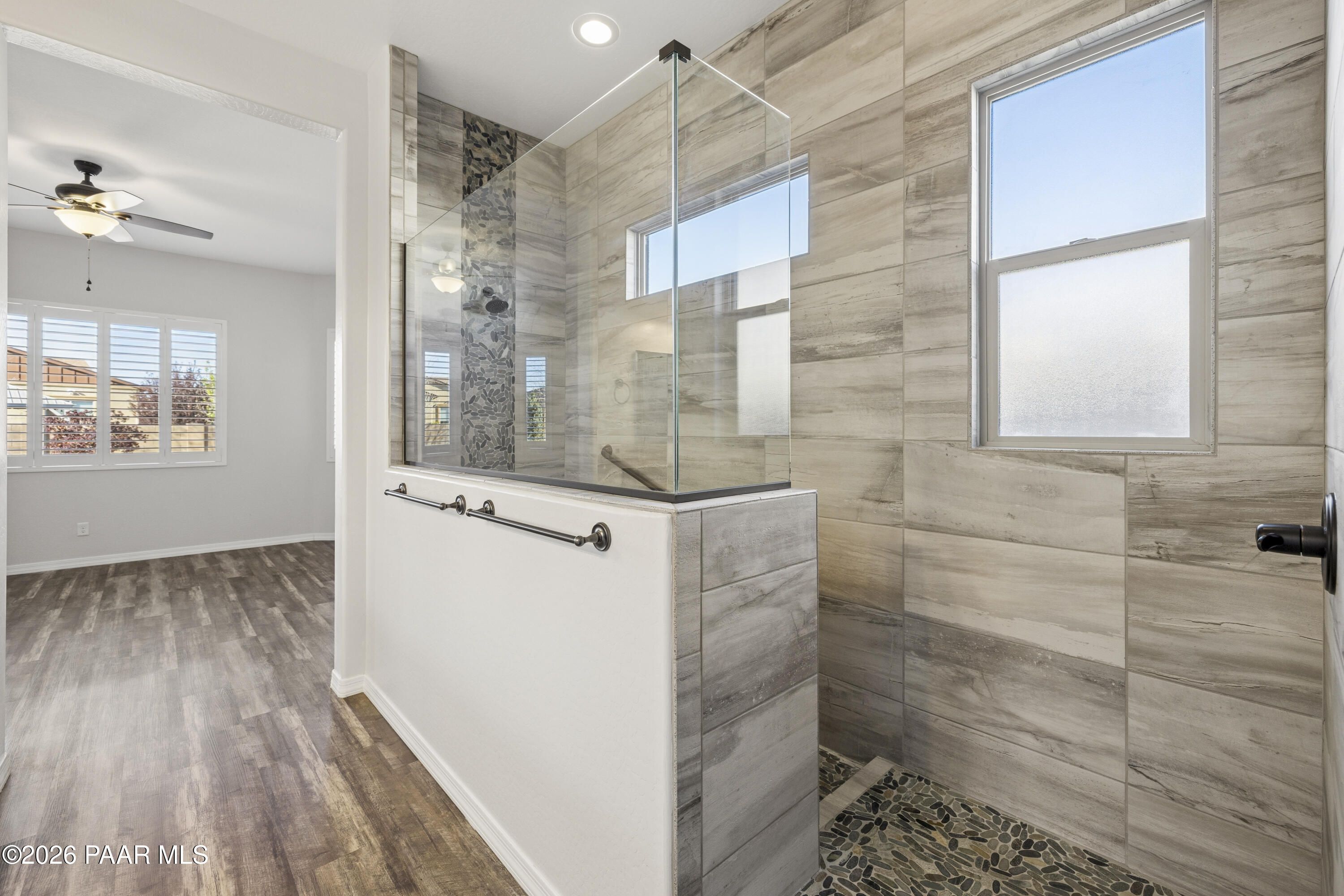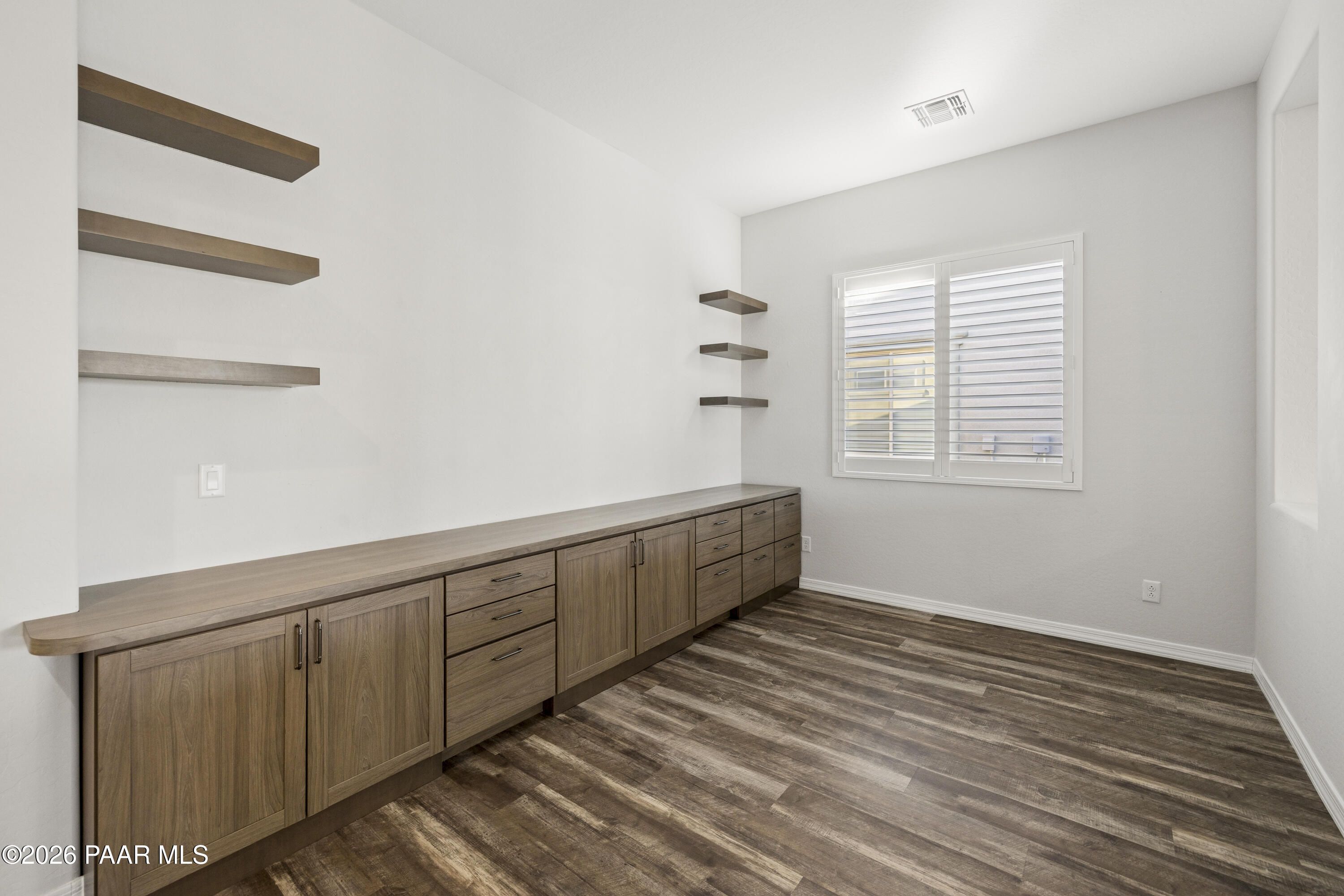 Tucked within the sought-after Pronghorn Ranch community, this 2019-built residence offers a refined blend of comfort, efficiency, and low-maintenance living.Thoughtfully designed for ease and everyday enjoyment, this 2-bedroom, 2-bath home features 1,943 square feet of well-appointed space with luxury vinyl tile flooring throughout and an open, inviting layout. The kitchen is both functional and polished, showcasing quartz countertops, a spacious island, tile backsplash across two walls, built-in desk, and under-cabinet lighting.The primary suite is a quiet retreat with a beautifully tiled walk-in shower featuring a pebbled floor and an expansive walk-in closet. A dedicated den/office with custom built-in cabinetry and shelving offers flexibility for work or hobbies.Step outside to a covered patio with an outdoor fireplace--perfect for entertaining and enjoying Prescott Valley's crisp evenings--while the fully landscaped and fenced backyard provides privacy and ease. Additional highlights include an epoxy-coated garage floor, laundry room with utility sink, gas fireplace in the living room, and solar panels ensuring a tiny electric bill and monthly credits at times.Residents of Pronghorn Ranch enjoy access to a clubhouse, fitness center, pool and spa, tennis courts, and more--creating a lifestyle that's both active and relaxed.A quietly exceptional home designed for those who appreciate quality, comfort, and simplicity.
