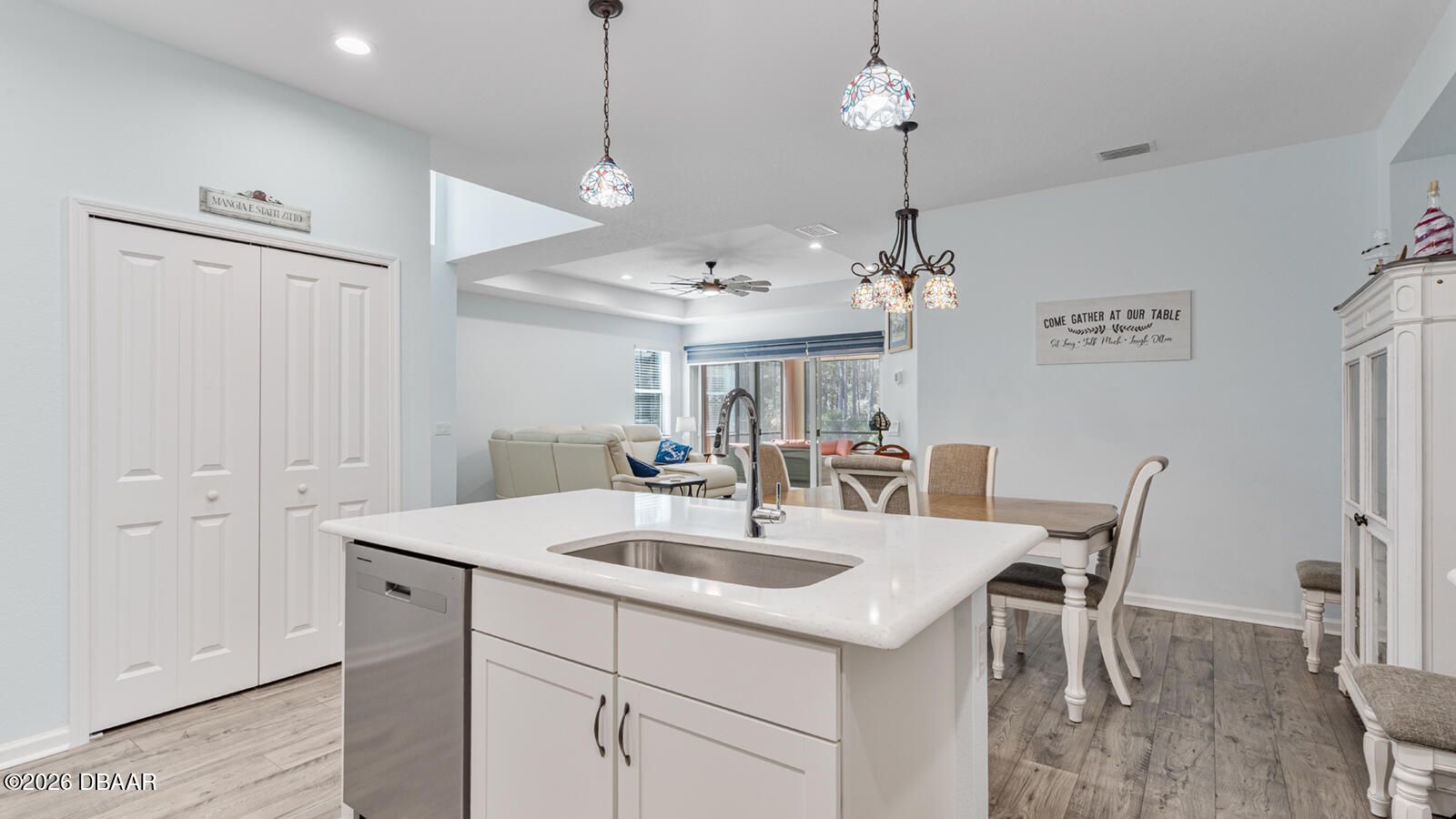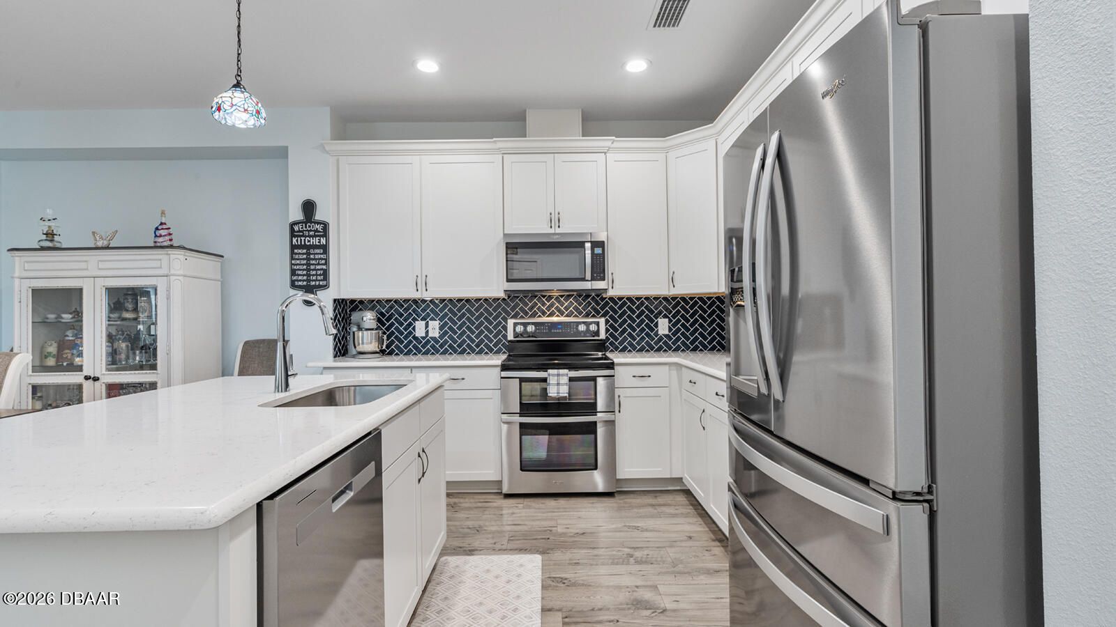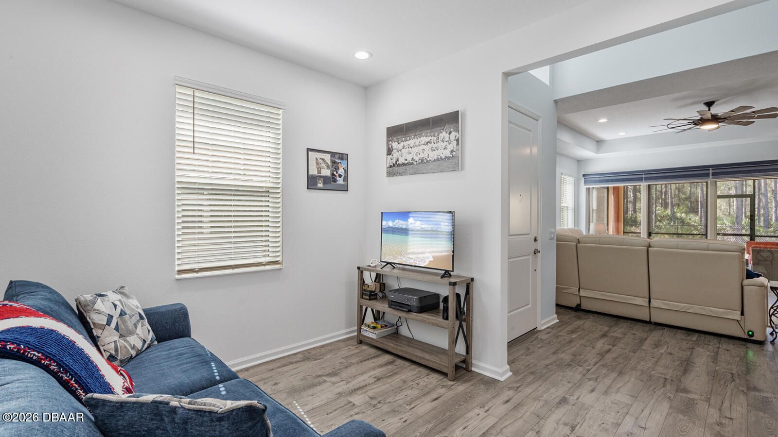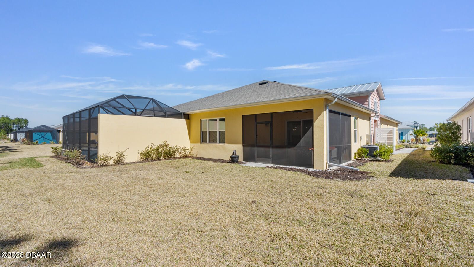 Gorgeous 2 Bedroom 2 Bath + Office/Dev Villa with upgrades Galore already done for you. Amenity Side of the Neighborhood. No Rear Neighbor's. Screened and Covered Lanai with Beautiful Views. Quartz Counters Throughout, Decorator Interior Paint, Easy to Maintain Laminate and Tile Throughout, Custom Closet in Primary. Kitchen Features: Stainless Appliances, Double Oven and lots of Cabinet Storage Space + Pantry. Come live your Best Life at Latitudes 55+ Daytona Beach. Includes: Live Music, Health Club, Pickleball, Tennis, Boccee, Restaurant, Bar, Towncenter, Resort Pool, Mango Theater,...and an amazing Private Beach Club! Jump in your Golf Cart to Grocery Shop, go to Restaurants and any/all Community Amenities or just to see Friends.