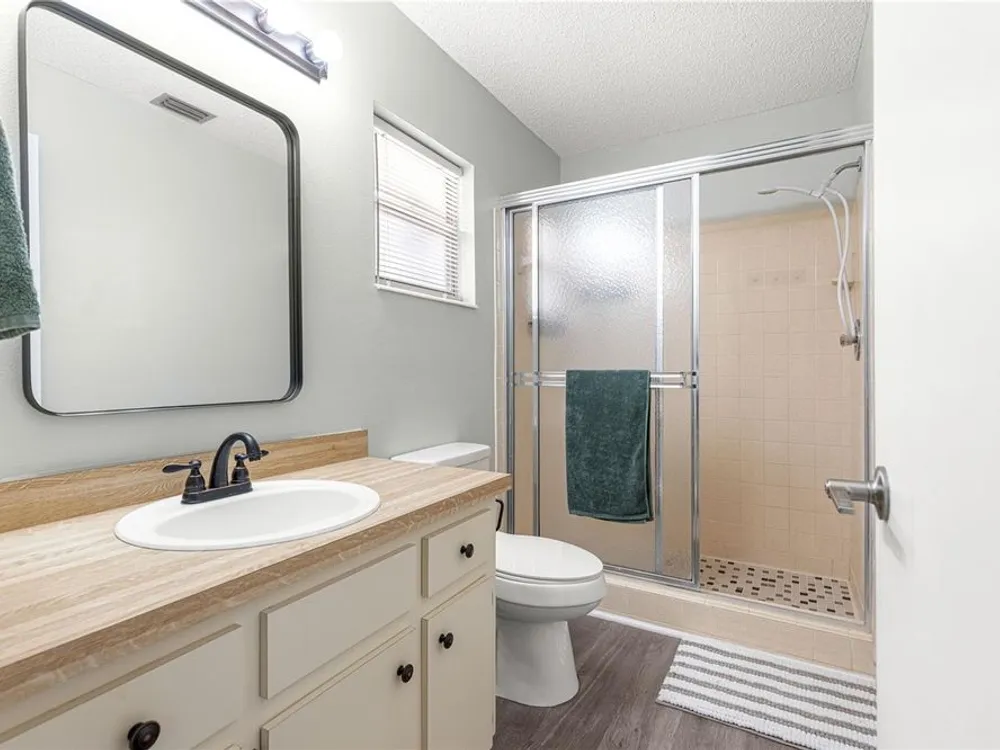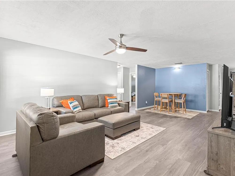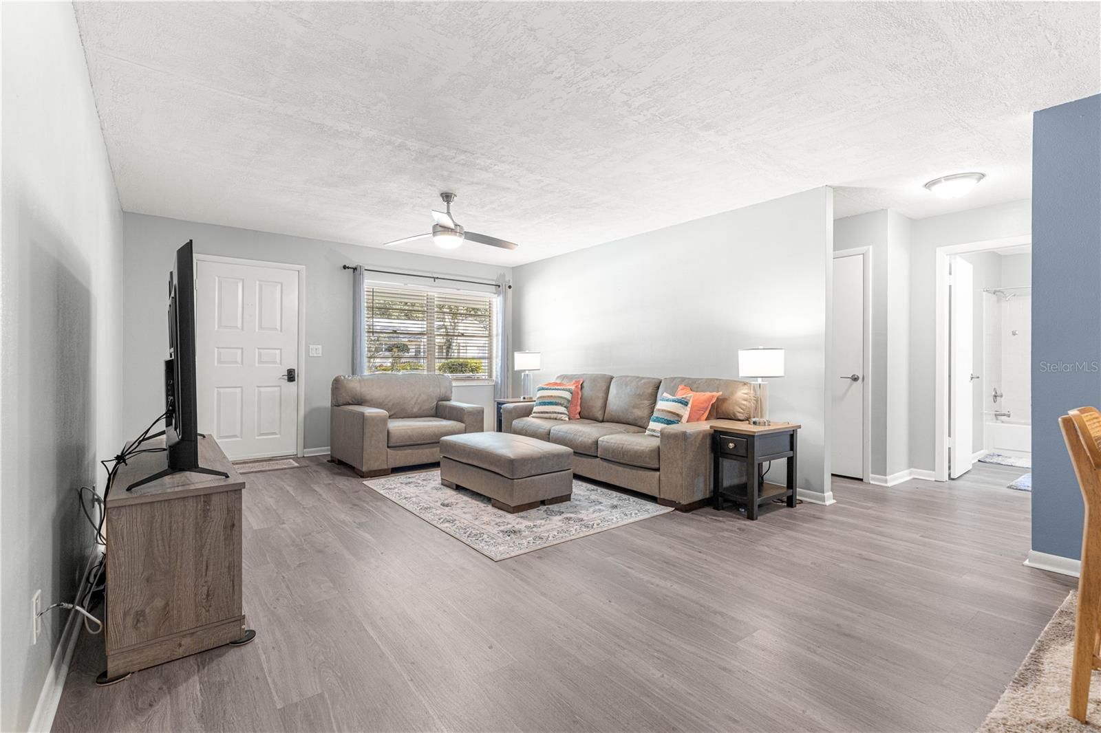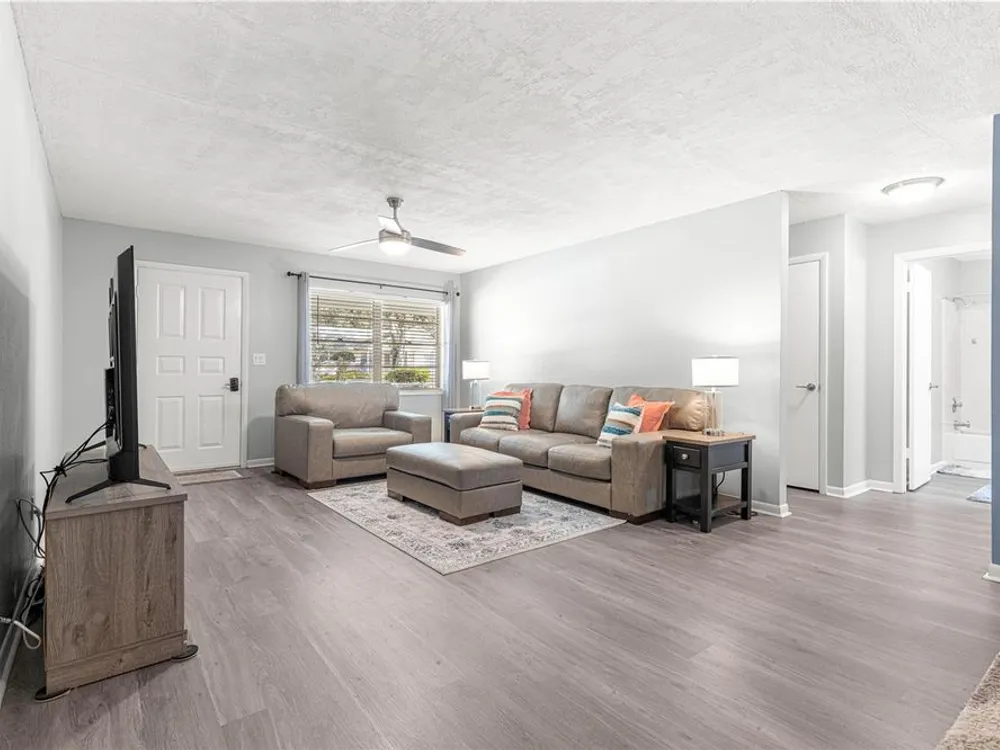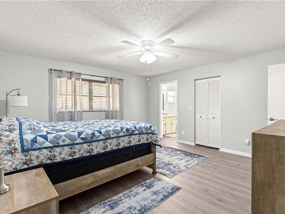 - Ceiling Fan(s), Living/Dining Room, Main Level Primary, Stone Counters, Walk-In Closet(s), Window Treatments